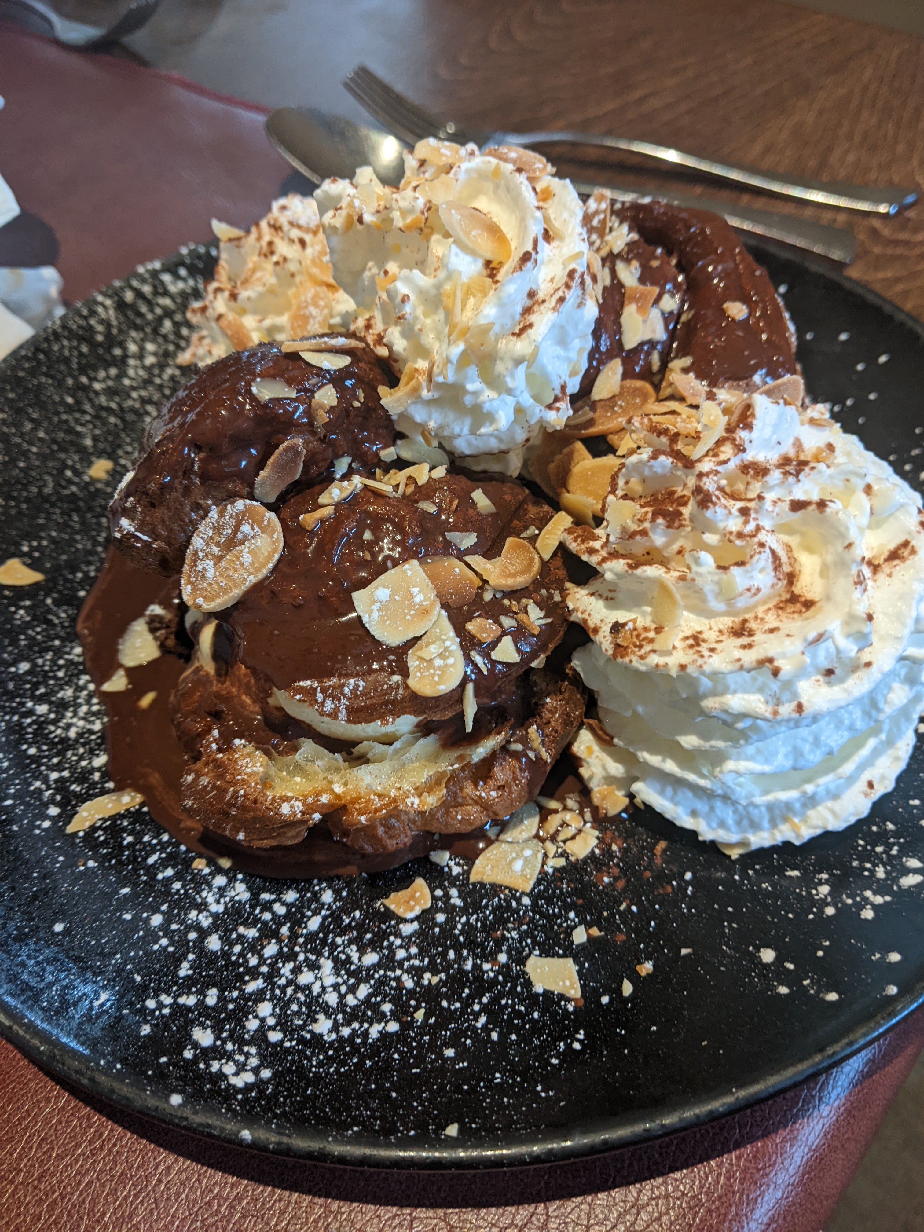 Une tuerie je vous conseille chaudement ce restaurant. Les pâtes au saumon étaient excellentes et la portion était vraiment grande. Les profiteroles étaient enorme et délicieuse on en a pour notre argent. J'ai une amie qui a pris une gaufre et je confirme elles sont délicieuses. Le personnel est très sympa et nous ont proposé un petit digestif gratuit à la fin du service.