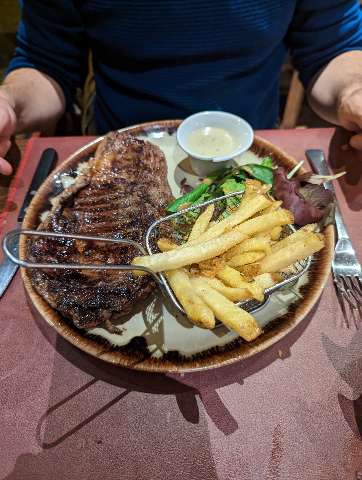 Restaurant très sympa, bon service,la qualité de la viande est au top, belle présentation et assiettes généreuse. Si je doit être tatillon je dirais la sauce au poivre un peu trop liquide pour moi j'aime quand la sauce à un peu de tenu.tarif correct et toilettes propres ( c'est important 😜).