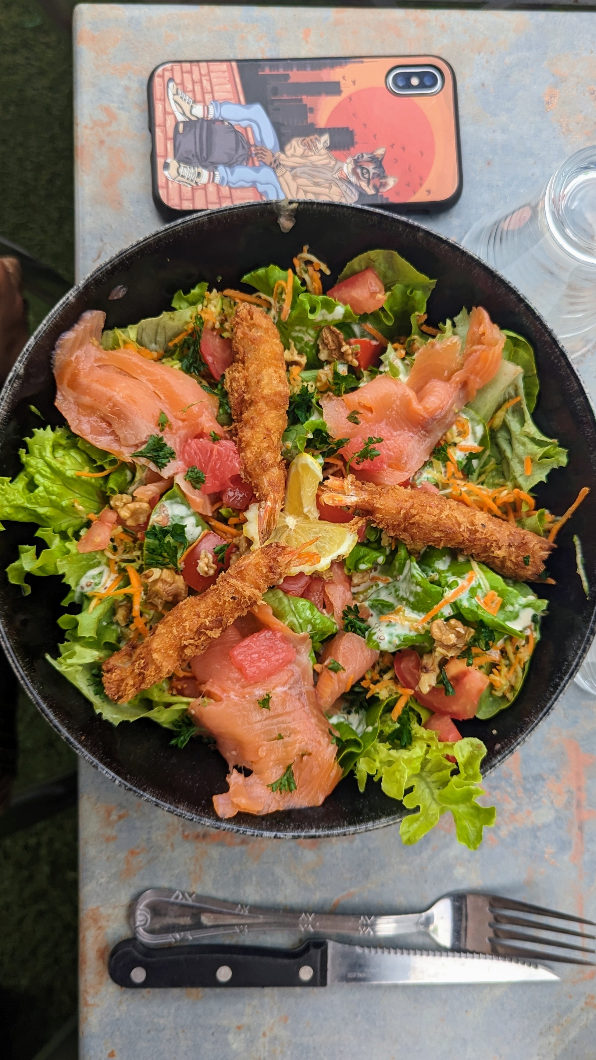 Nous sommes arrivés à 14h30,nous avons été très bien accueilli, nous avons pu déjeuner sans problème malgré l heure tardive. Les salades sont très bonnes et copieuses,le rapport qualité prix très bien.les serveurs très aimable. Nous recommandons sans problème ce lieu pour sa qualite et son équipe sympathique