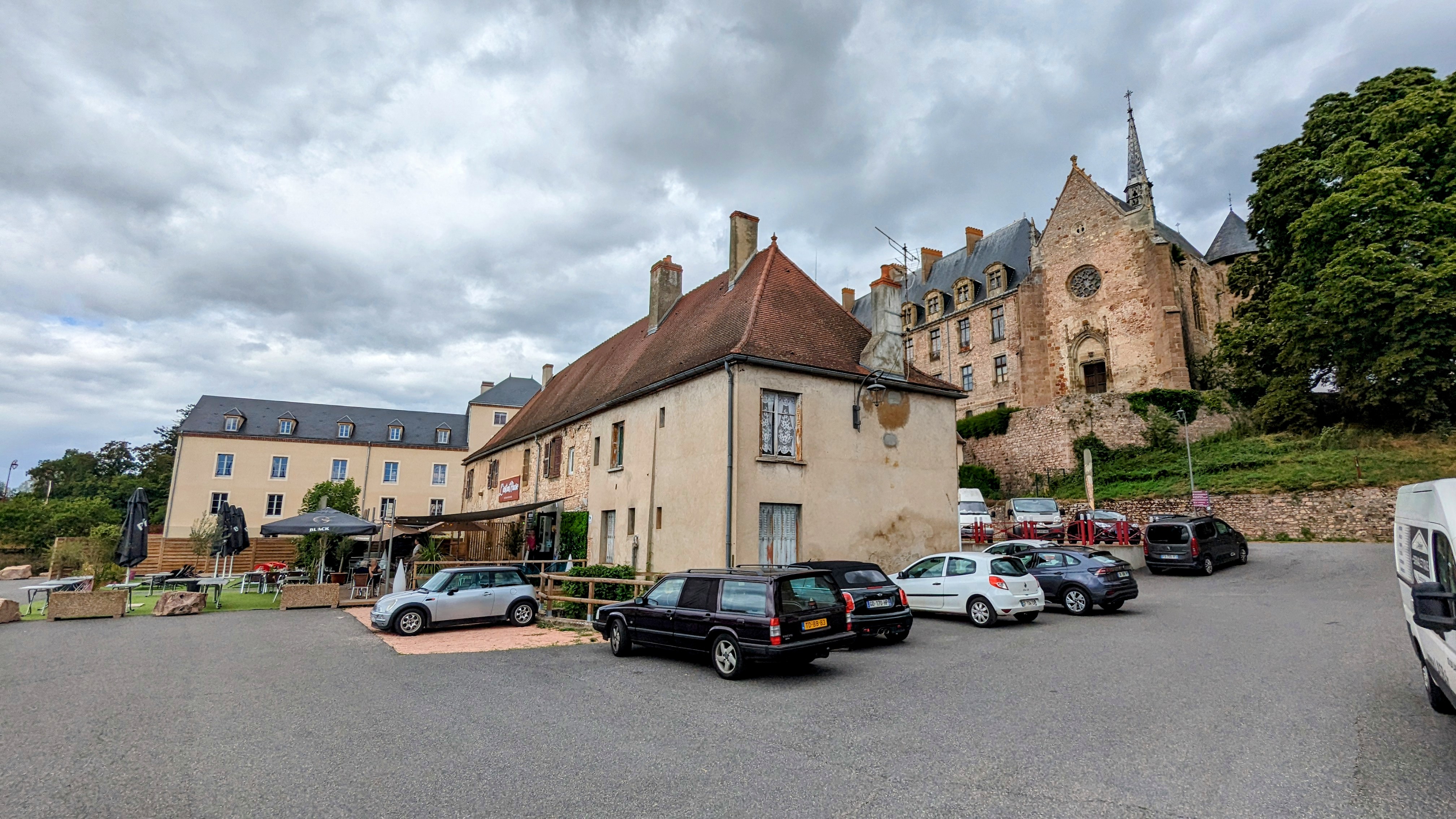 Garée 200 places derrière.. Vue sur la Besbre au pieds du château Lapalisse. Très gentil chez Frédéric.... Terrasse sur bois. Géniale