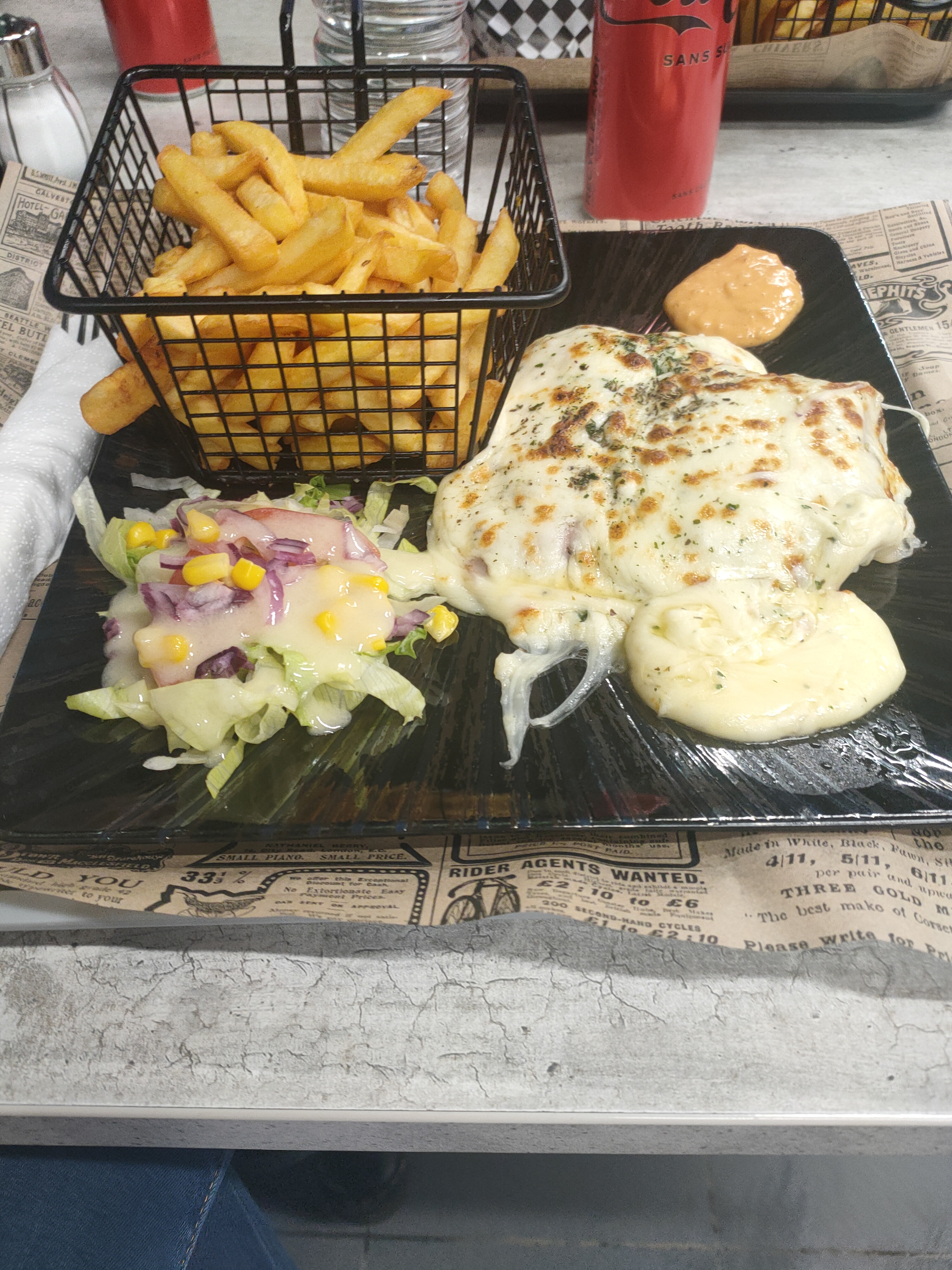 Évitez les burgers. Chers pour rien. Les frites ne sont pas maison et les steaks sont surgelés. Le menu burger à 12€, vraiment désolée, mais pas bon. Les tenders ne sont pas faits maison non plus (trop piquants pour les enfants, déjà acheté chez grossistes). Le tacos a satisfait notre ado. L'escalope fade. 3 étoiles car accueil sympathique même si goût pas au rdv. Dommage 🤷🏻♀️