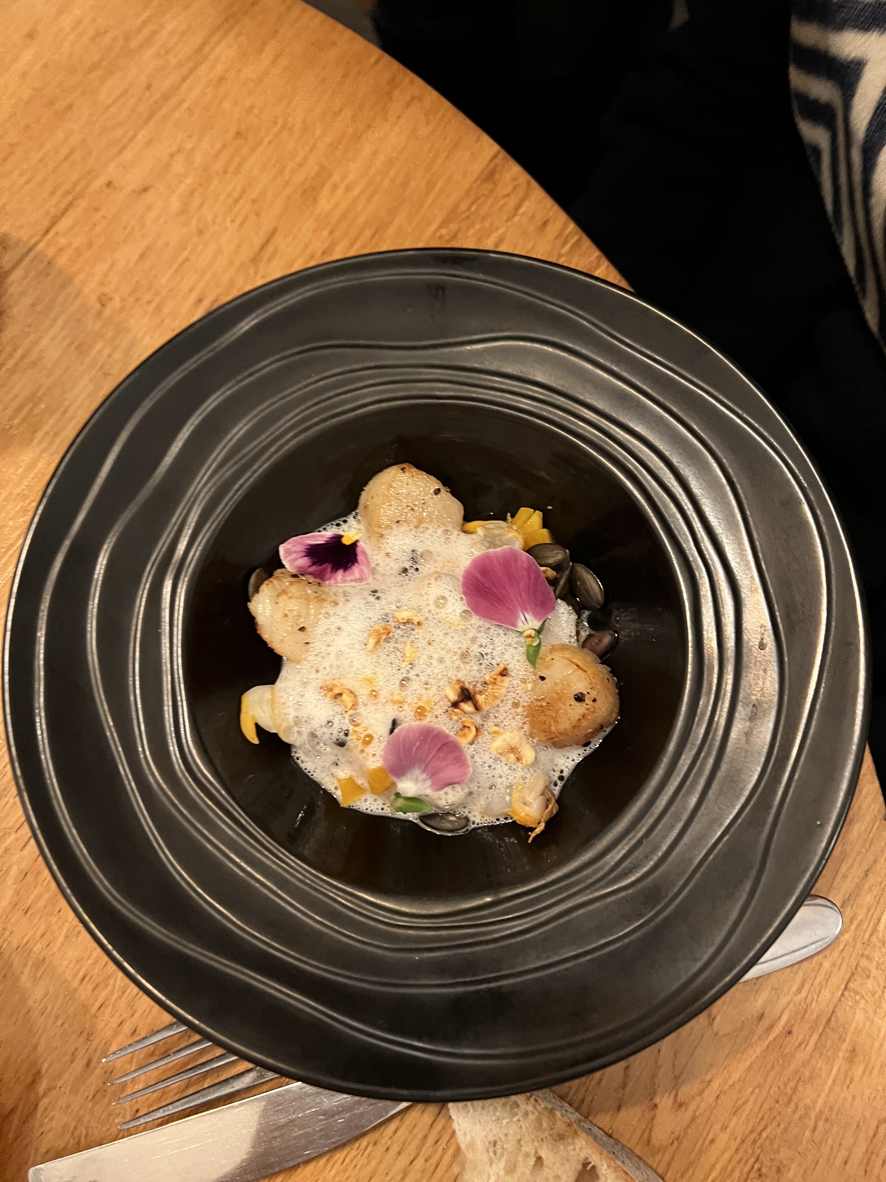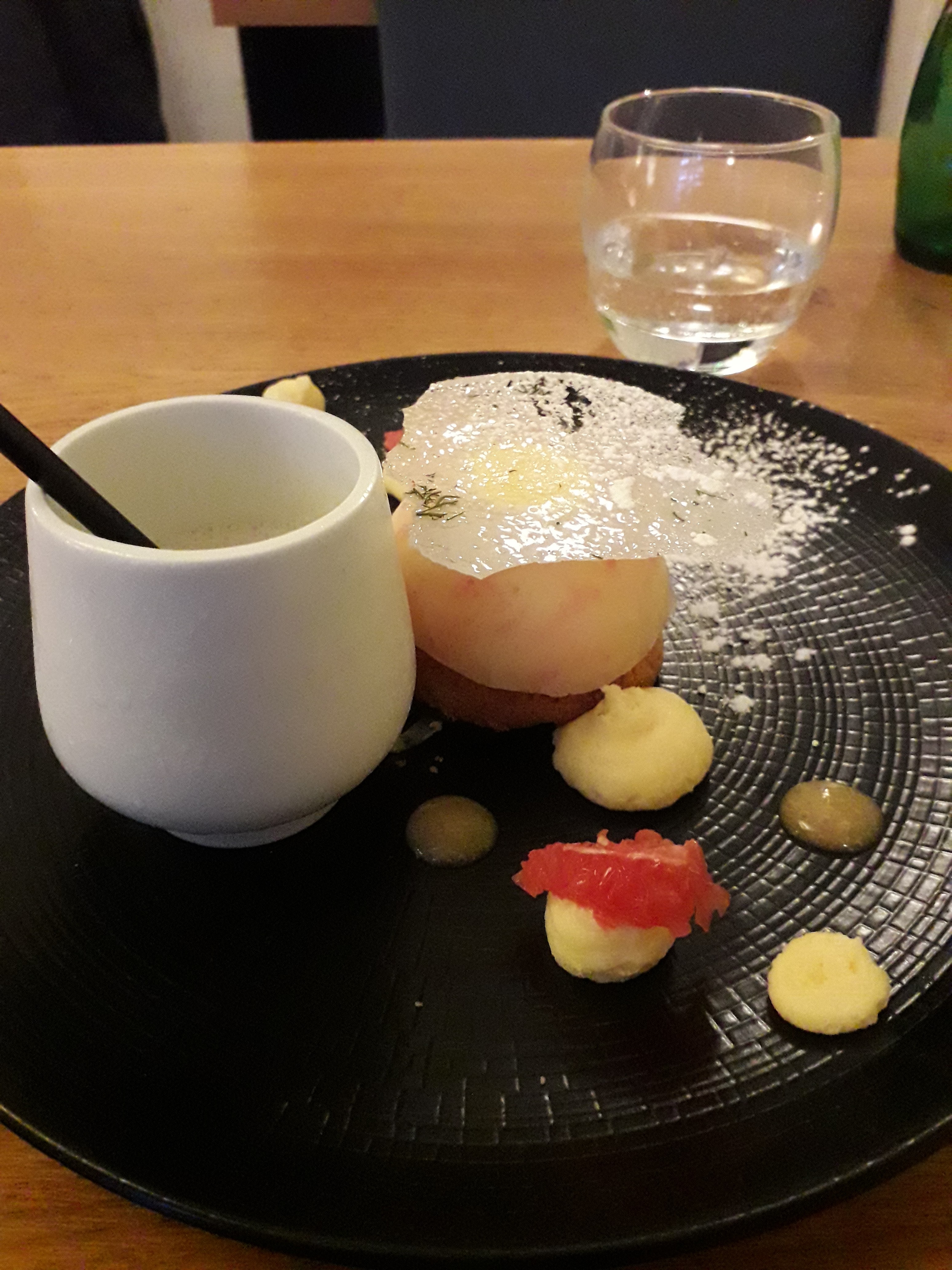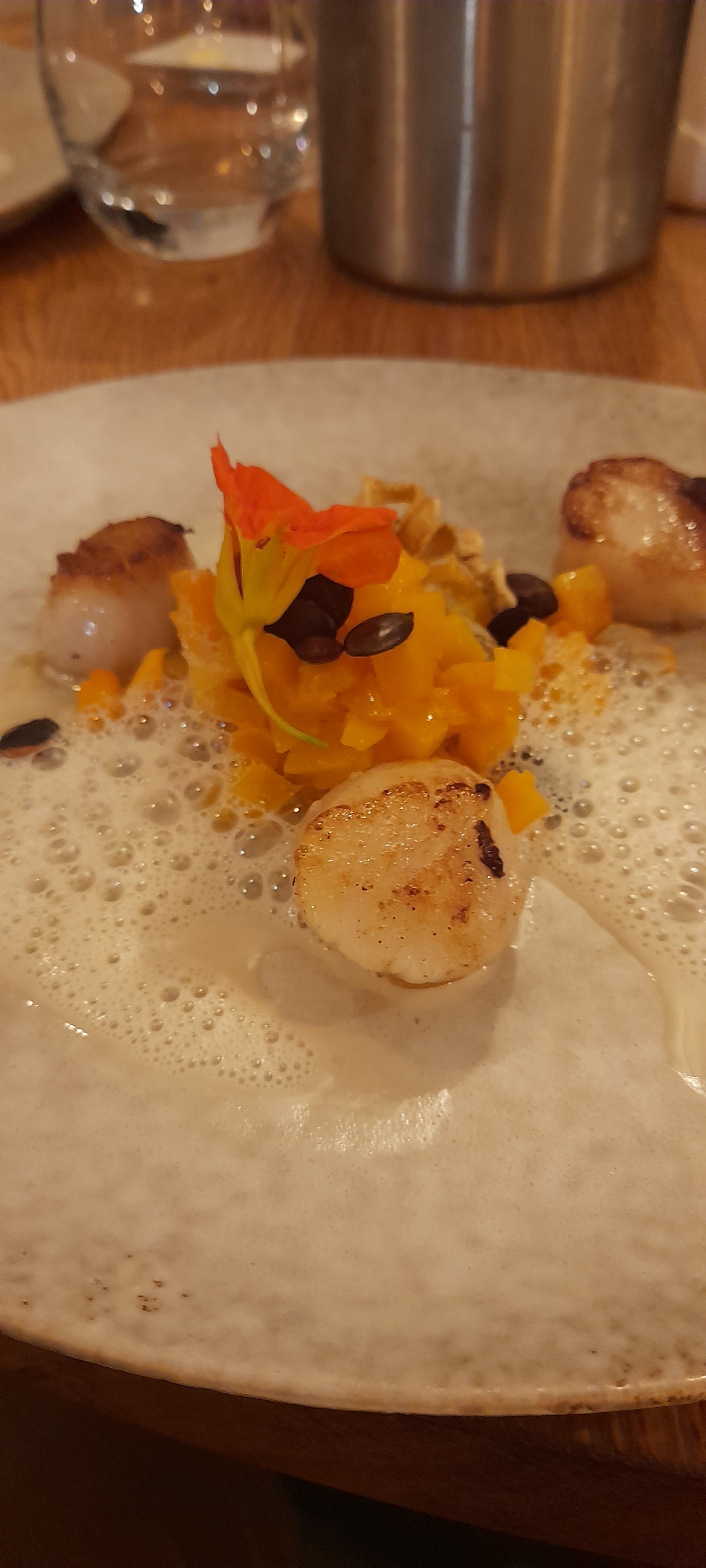 Excellente nourriture, le chef comprend vraiment les saveurs et les combinaisons sont parfaites. Nous avons eu 3 plats mais ils donnent aussi des amuse-bouche et des prédesserts. Ce n'est pas cher par rapport à la qualité du restaurant. La servante était très chaleureuse et sympathique