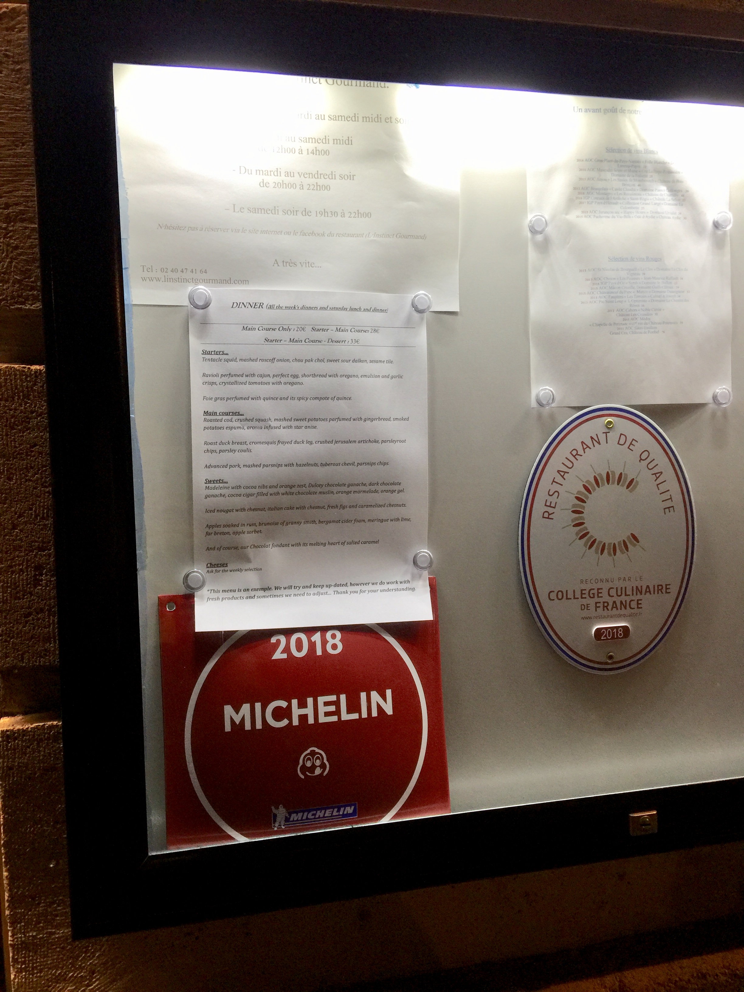 L instinct gourmand. Restaurant qui a obtenu un bib Michelin. Il propose une carte courte avec des produits frais de saison. La cuisine est faite également maison. La carte change régulièrement. EPD pour 34 euros pour le menu du soir. Foie gras parfumé au pineau des Charentes, comportée de rhubarbe au basilic Thai. Filet de bœuf rôti, colis de poivrons jaune au yuzu,... Pêche pochée au vin blanc,... En conclusion, une cuisine raffiné, fraîche, bien équilibrée au niveau des saveurs. Une vrai découverte. Je recommande.