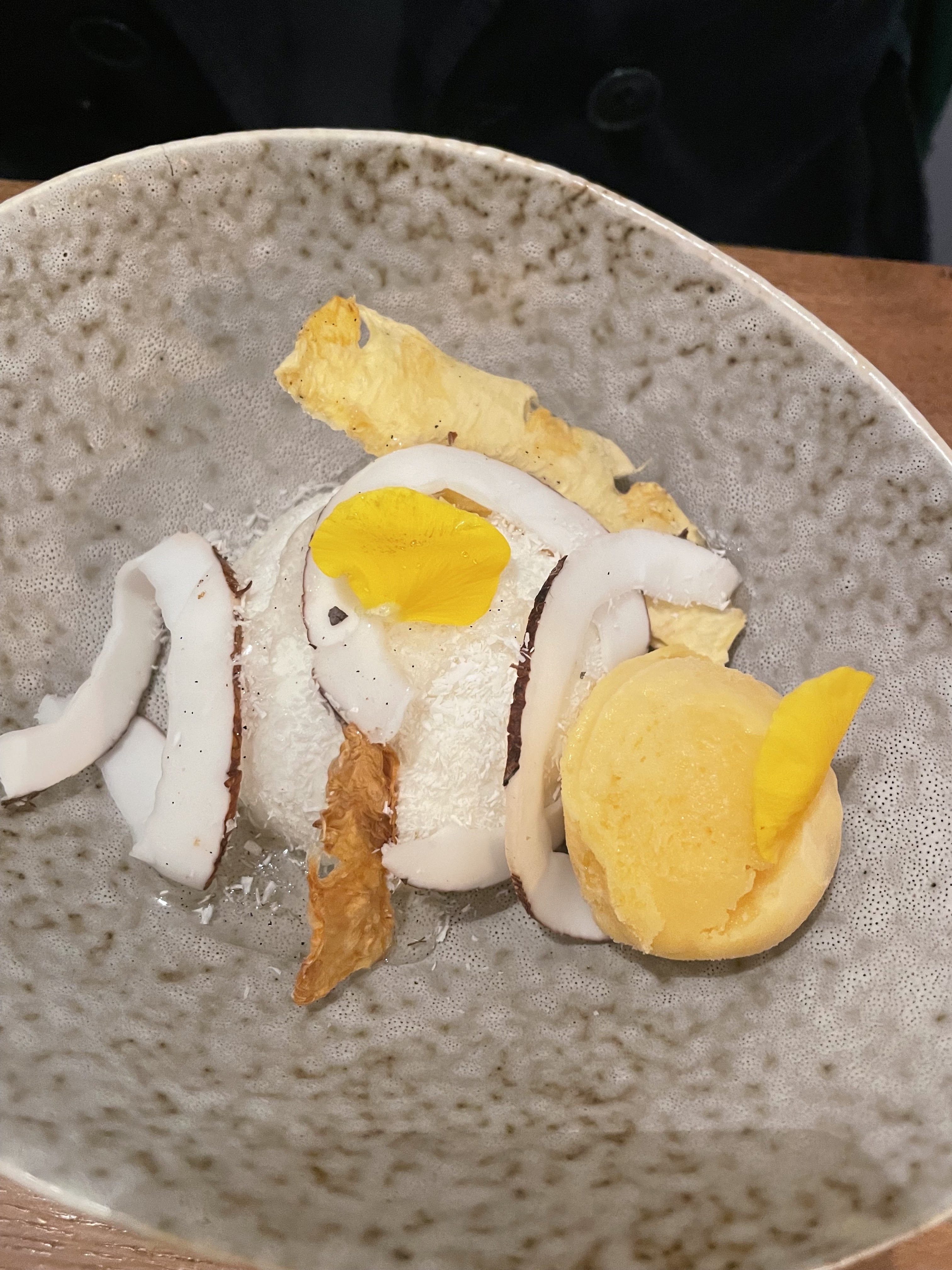 Excellente cuisine, service impeccable, bon conseil sur les vins (il y a du beaujolais blanc par exemple). Brouillade aux oursins, filet de canette et dessert avec mangue / cardamome et citron vert. C'était très bon, très joli et suffisamment copieux. Nous reviendrons très certainement et avec grand plaisir !