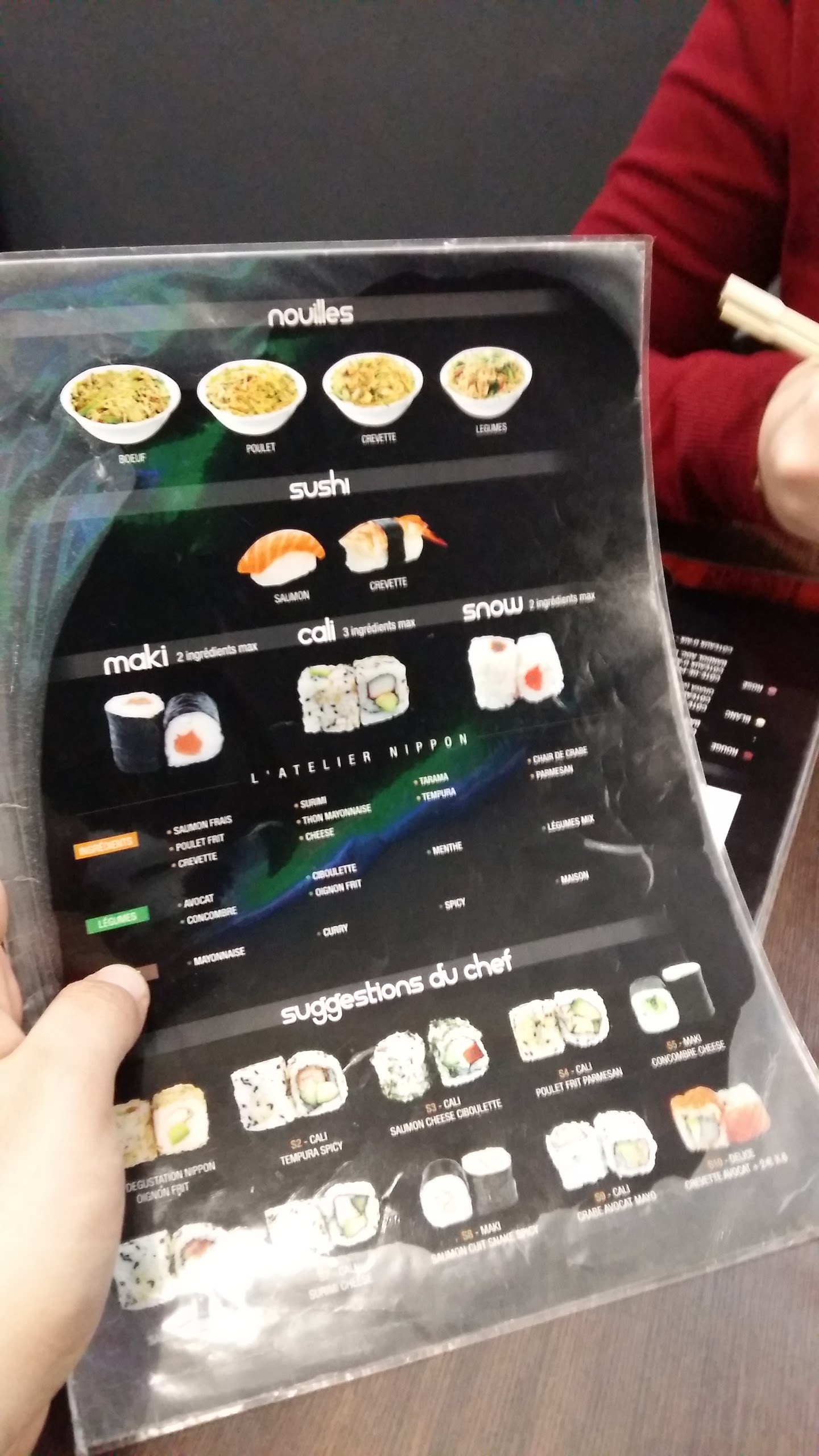 Points positifs : service plutôt rapide et personnel agréable. Plats chauds (brochettes, et wok) correctes. Le concept du à volonté à la carte est sympathique (on choisit le format maki/california avec les ingrédients à l’intérieur). Points négatifs : il y a assez peu de choix, en dehors des makis et california. Pour les sushis/maki/california ça n’allait pas du tout, la cuisson (ou variété) du riz est à revoir, ils étaient compact/pâteux, c’est vraiment dommage quand c’est à volonté... La salade de choux manquait de goût : le choux trop sec et la vinaigrette pas adaptée. En somme, si vous êtes de vrais amateurs de sushis, ce n’est pas le meilleur endroit où aller. Si vous cherchez à repartir l’estomac plein, pas de soucis.