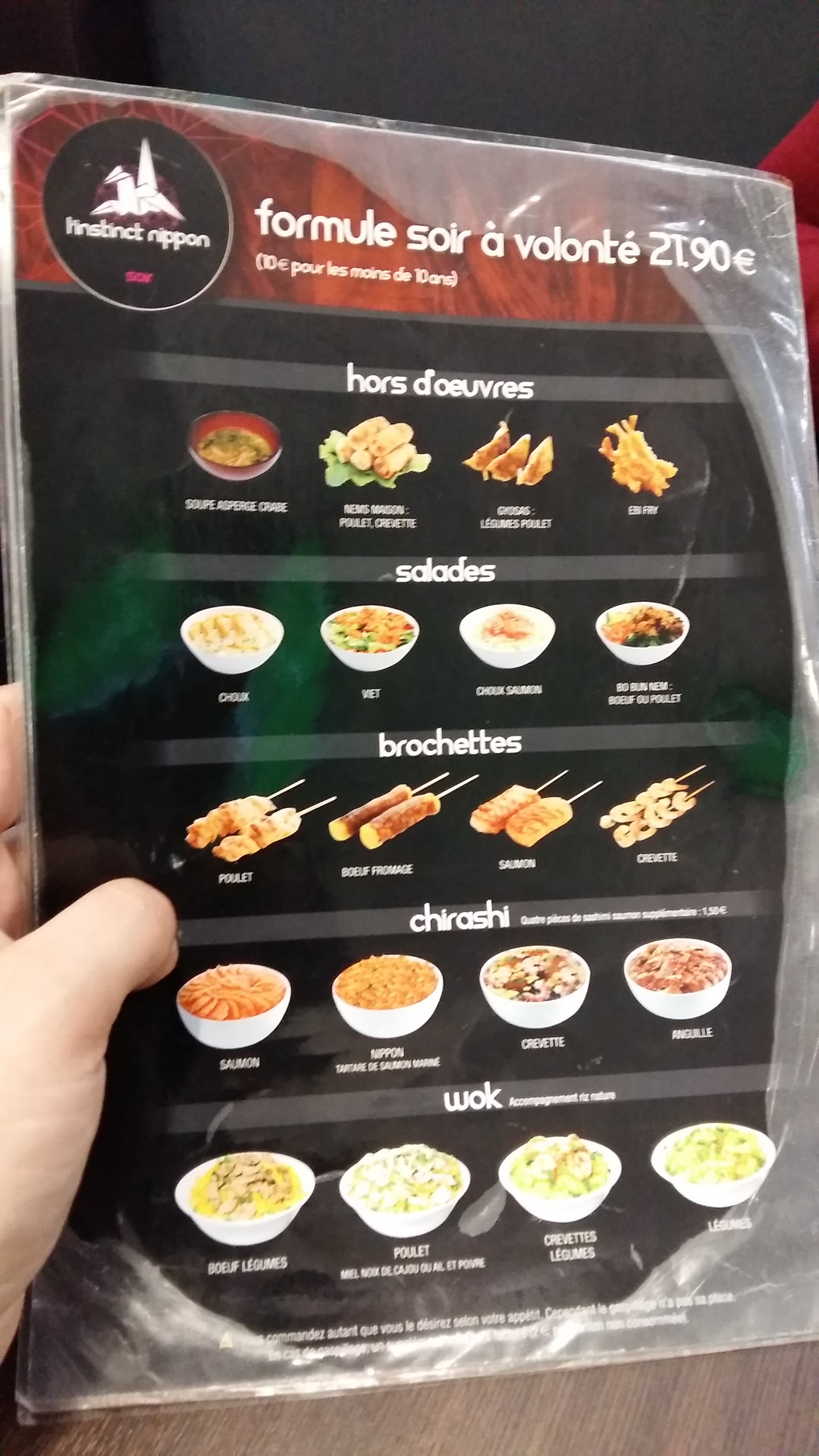 Conquise par l’instinct nippon petit restaurant à volonté ou l’on mange à sa faim. J’ai adoré les brochettes et la sauce sucrée . Qualité des sushi est top! J’ai été accueillis hier soir (Samedi) parfaitement, servie par une charmante serveuse, une petite brune aux yeux tiré très à l’écoute et super souriante . Elle nous a mise très à l’aise pour une première expérience nous a bien expliqué le concept et nous a bien conseillée ! J’ai adoré, on reviendra c’est sur! Je recommande