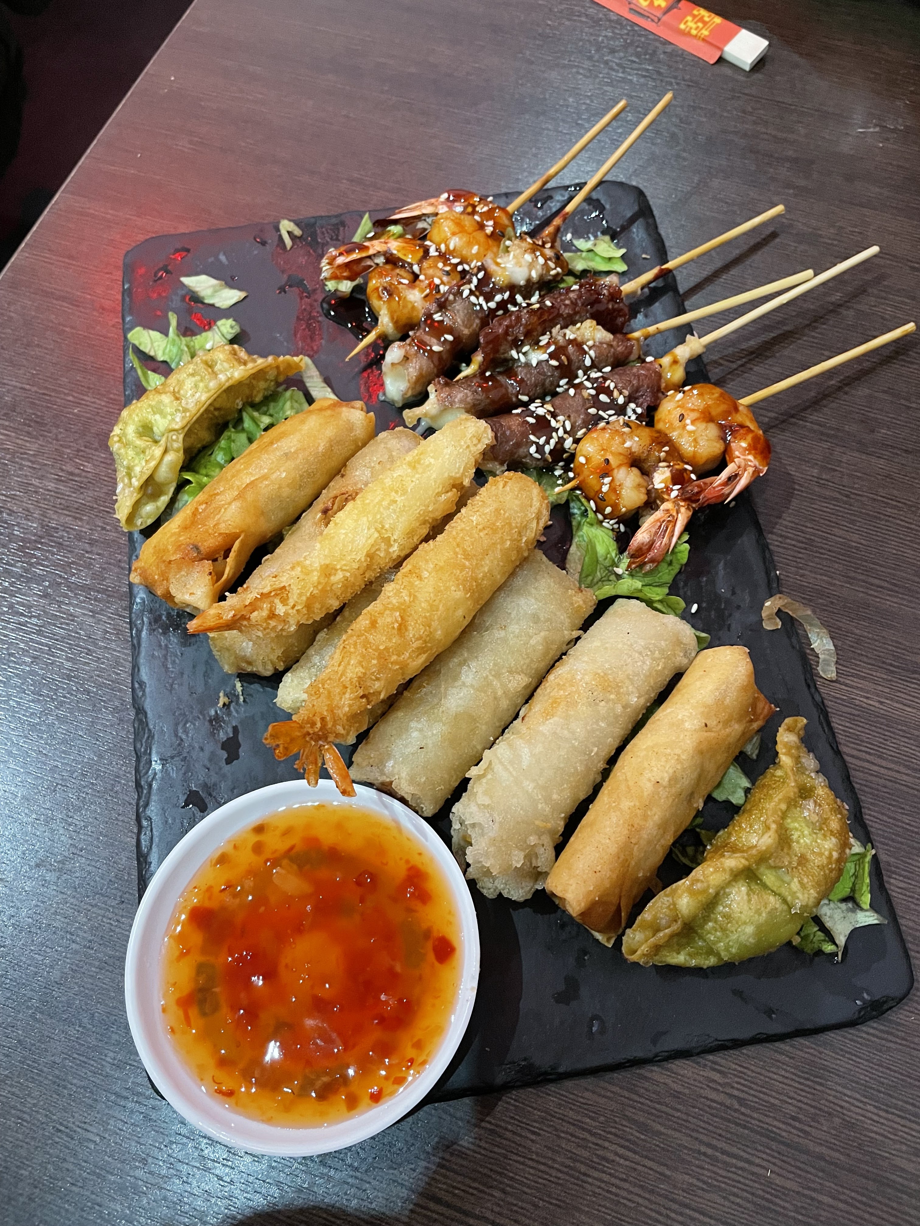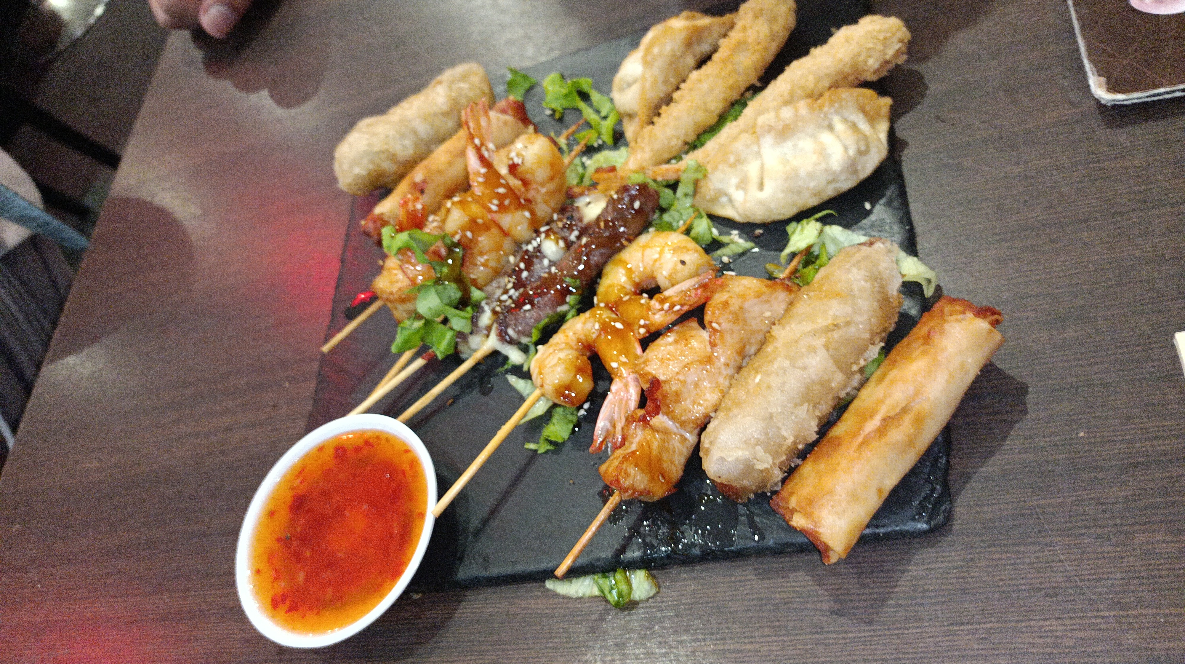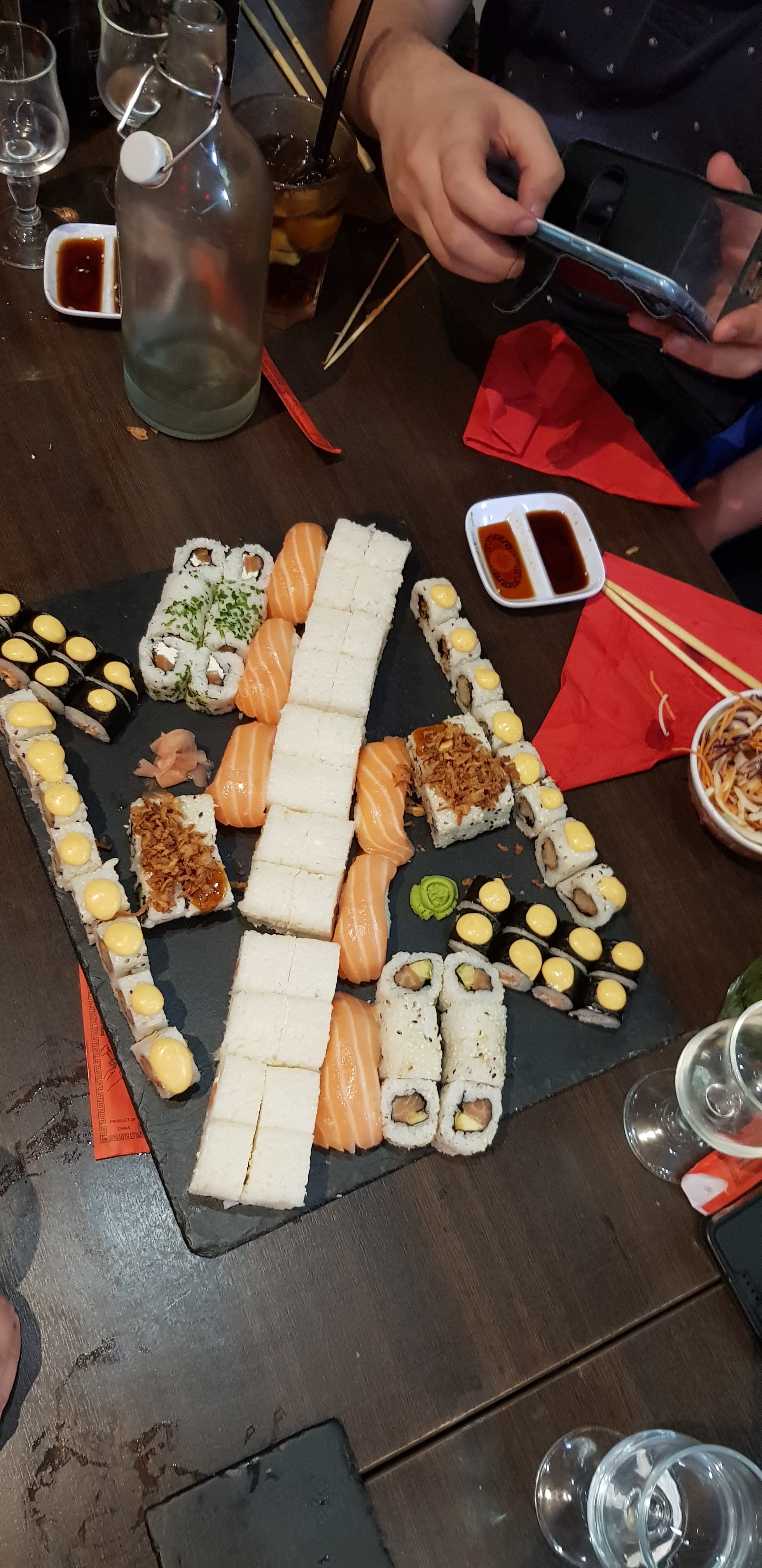 Hier soir j’ai mangé dans ce restaurant pour la première fois avec mon chéri, et j’ai passé un super moment !! J’ai vraiment hâte de revenir ! Nous avons eue droit à un accueil chaleureux, des plats savoureux , les sushis et les brochettes de crevettes sont incroyablement bon ! (Le reste aussi biensure) J’adore le concept de la carte à volonté, en venant je pensais que cela s’appliquait que au sushis ! Honnêtement c’est pas du tout chère pour ce que s’est ! Sur tout les plats qu’on nous a servi j’en ai seulement pris un photo malheureusement… mais c’était super bien présenté surtout les sushis !!