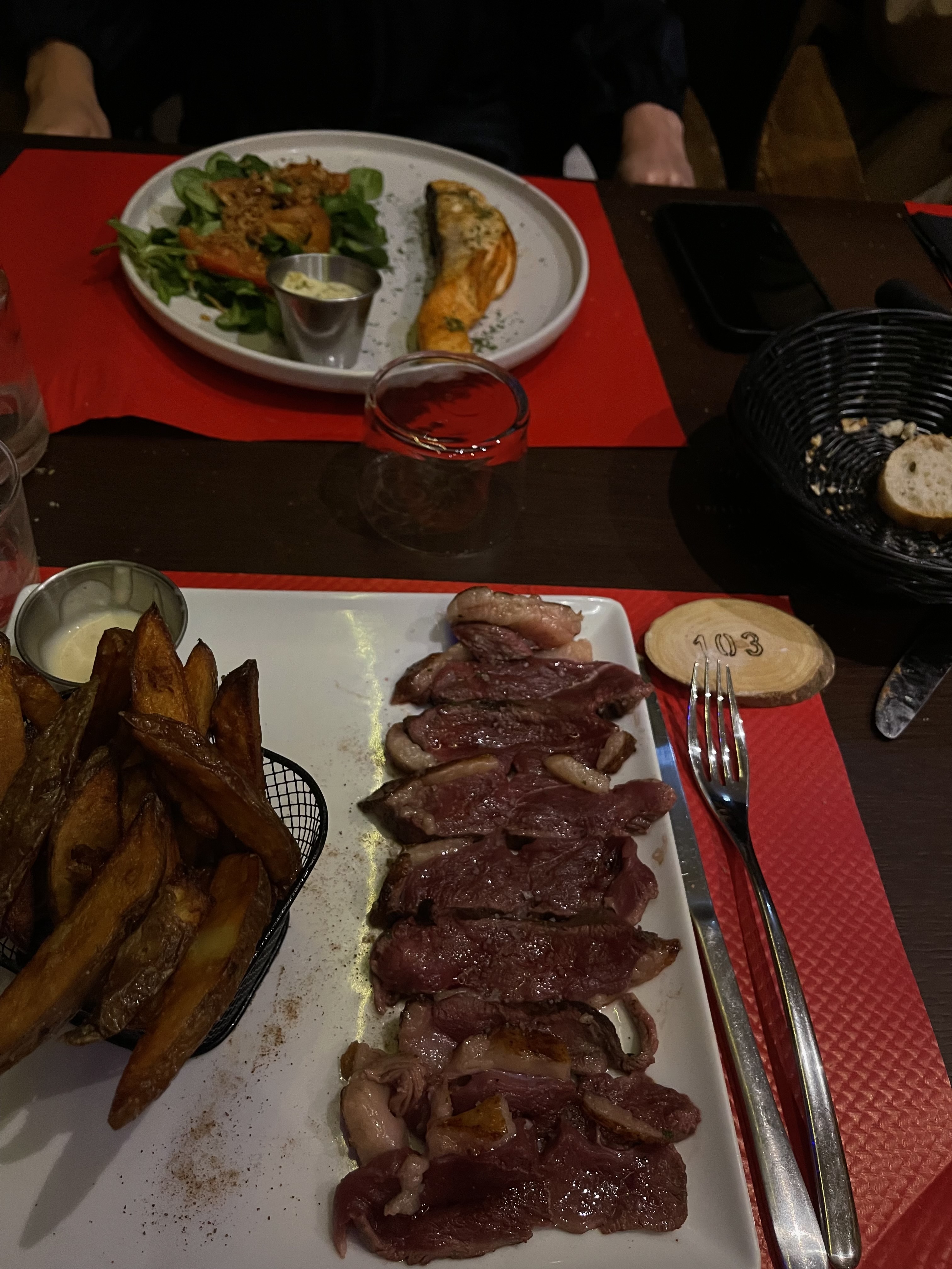 Réservation avec TheFork, dès l’ouverture pas de filet de bœuf pas de poêlée de légumes pas de… (et puis on voit que c’est servi à d’autres gens) Sur le menu magret de canard 250g, on nous a servi même pas 100g. Autant ne pas faire la promotion si vous n’êtes pas capables de la respecter (et nous respecter). Nous sommes sortis ayant tous toujours faim. Malhonnête. Je ne recommande absolument pas.