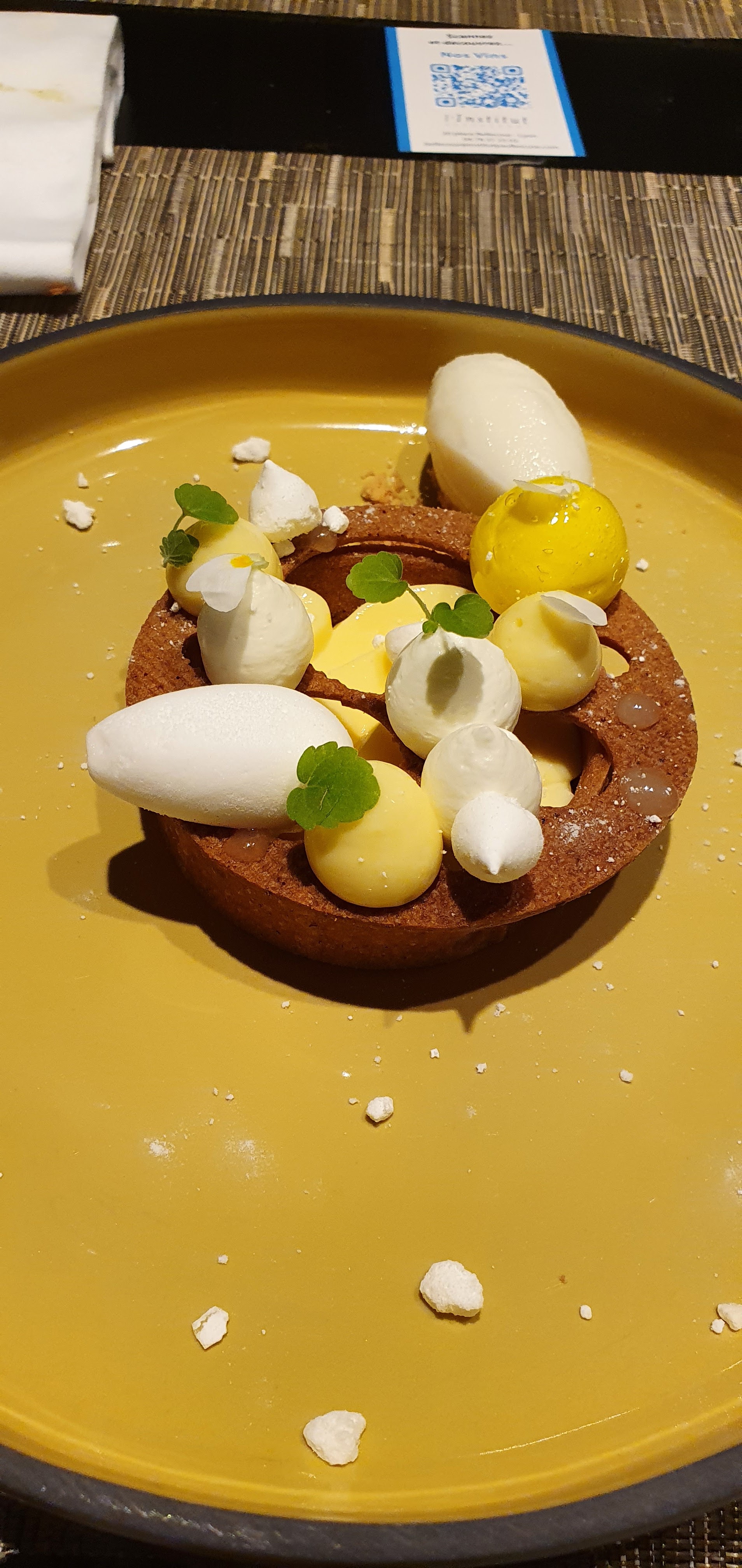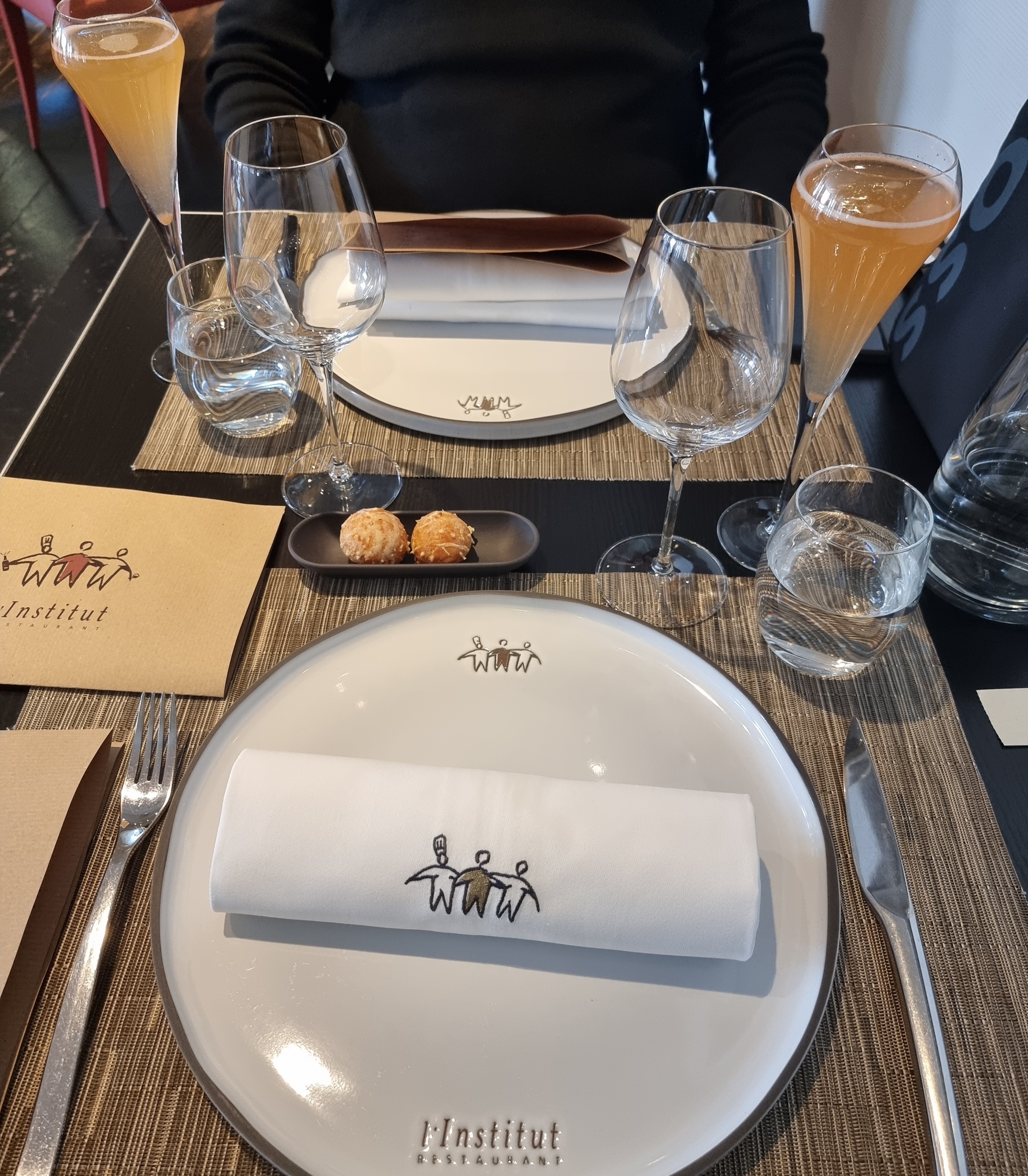 Nous avons eu une très agréable surprise en faisant le choix d'aller déjeuner à L'Institut pour l'anniversaire de ma conjointe. - Une prise de rendez-vous et échanges de courriels que j'ai vraiment aimé, tout est clair, simple mais très efficaces. - Un accueil chaleureux et un accompagnement immédiat. - Le menu de l’entrée aux dessert, restera inoubliable, nous avons voyagé à chaque plat, nous avons retrouvé les saveurs des produits cuisinés, le paleron de veau et son ris, asperges blanches rôties, mijoté de morilles et vin jaune, parmesan, jus de viande, pommes purée, c'est juste une tuerie. - un personnel présent mais absolument pas envahissant et toujours de bon conseil quand nous le sollicitions. Un plus également pour nous, a été de voir les chefs en plein travail aux travers des baies vitrées pendant notre déjeuner. Merci à tout le personnel pour ce magnifique voyage culinaire qu'il nous a été offert pour ce déjeuné à l'occasion d'un anniversaire.