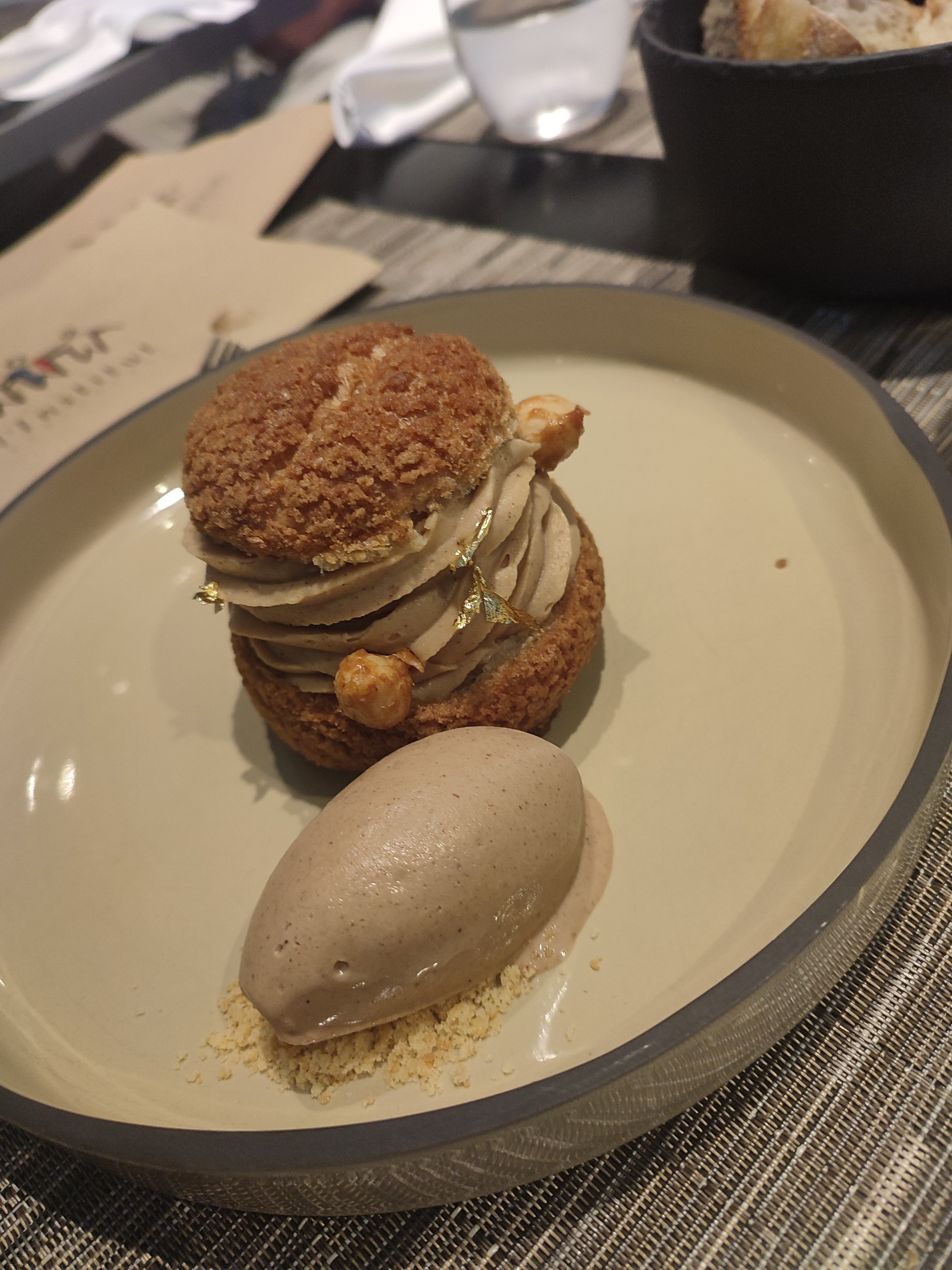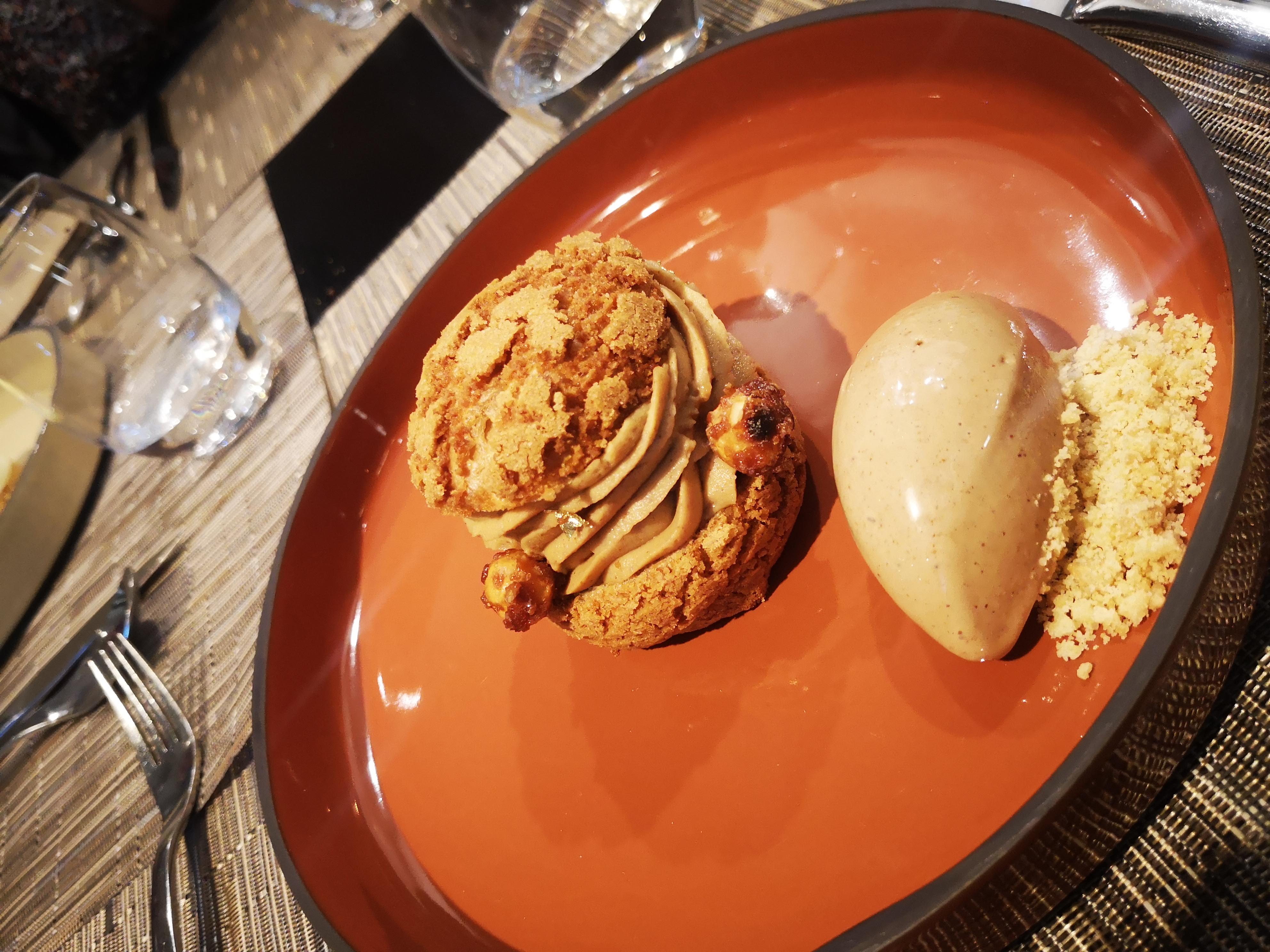 J'ai eu du pâté en croûte en entrée, c'était bien exécuté, la pâtisserie était bonne, le pâté est bien assaisonné et la texture parfaite. Tout dans l'assiette est bien assorti et se complète. Le plat principal était du poisson lotte, j'ai regardé par la fenêtre de la cuisine et j'ai découvert que le personnel de cuisine était étudiant mais qu'ils livraient quand même un plat d'une telle qualité. Enfin le plat de dessert, j'ai commandé le praliné en choux, le temps qu'il arrive je suis presque rassasié. Cependant, j'ai réussi à le terminer. Toute la saveur est juste sur place. J'étais un très bon déjeuner.