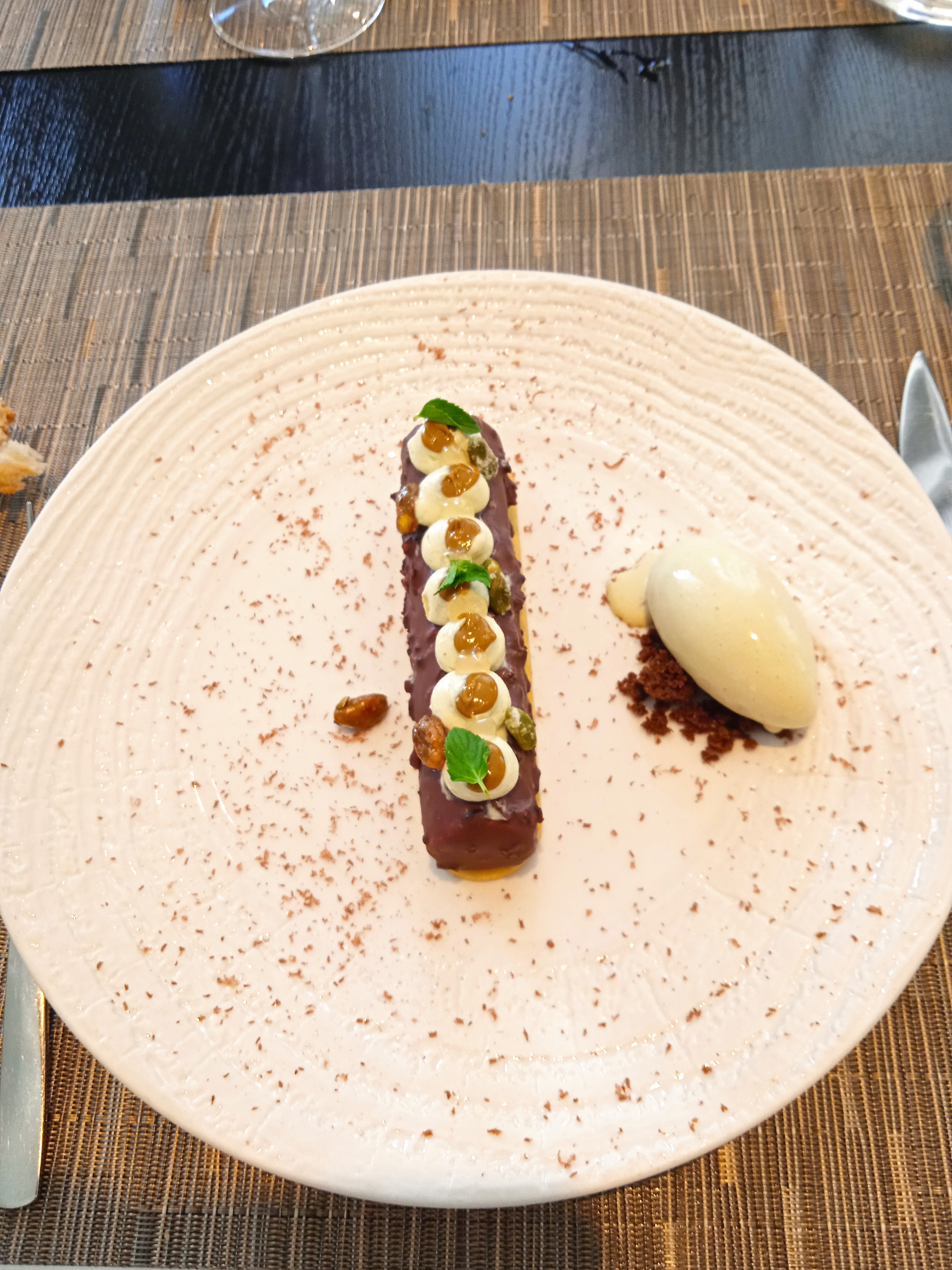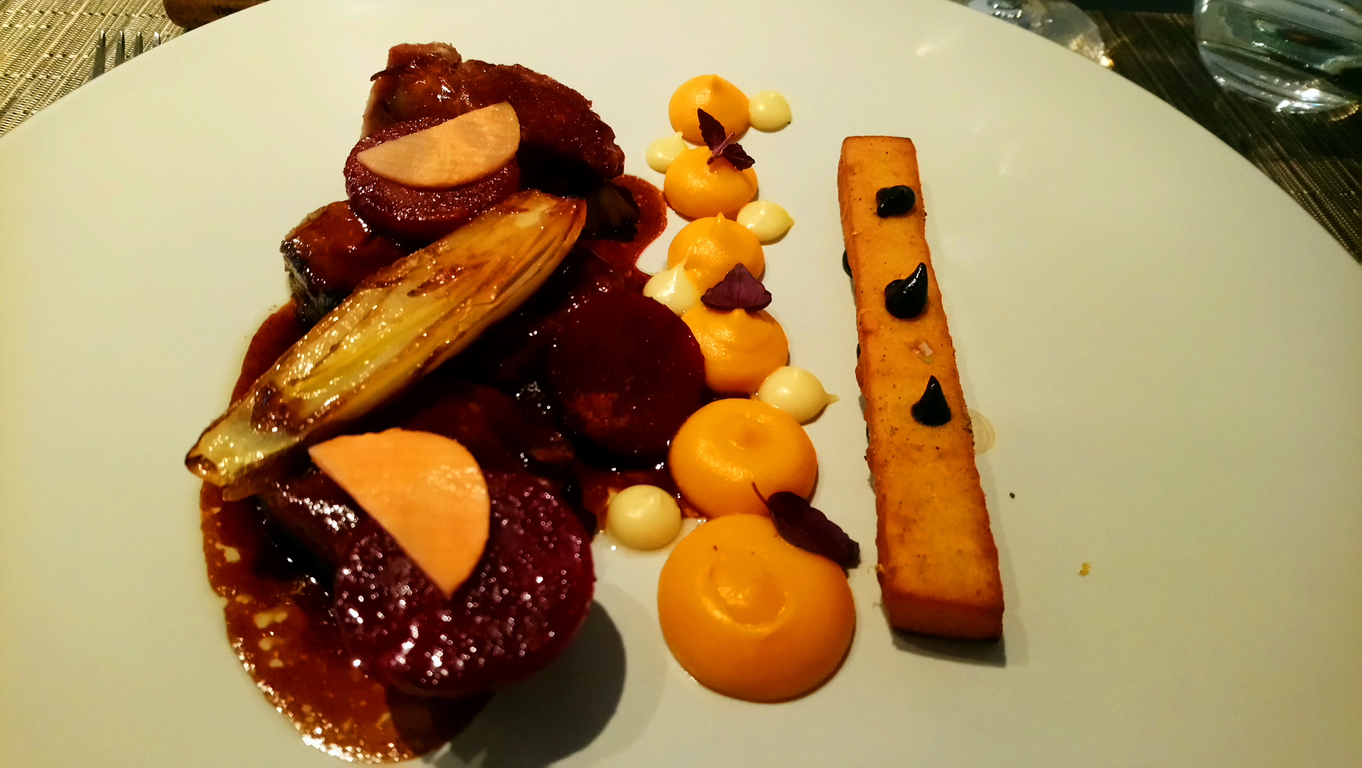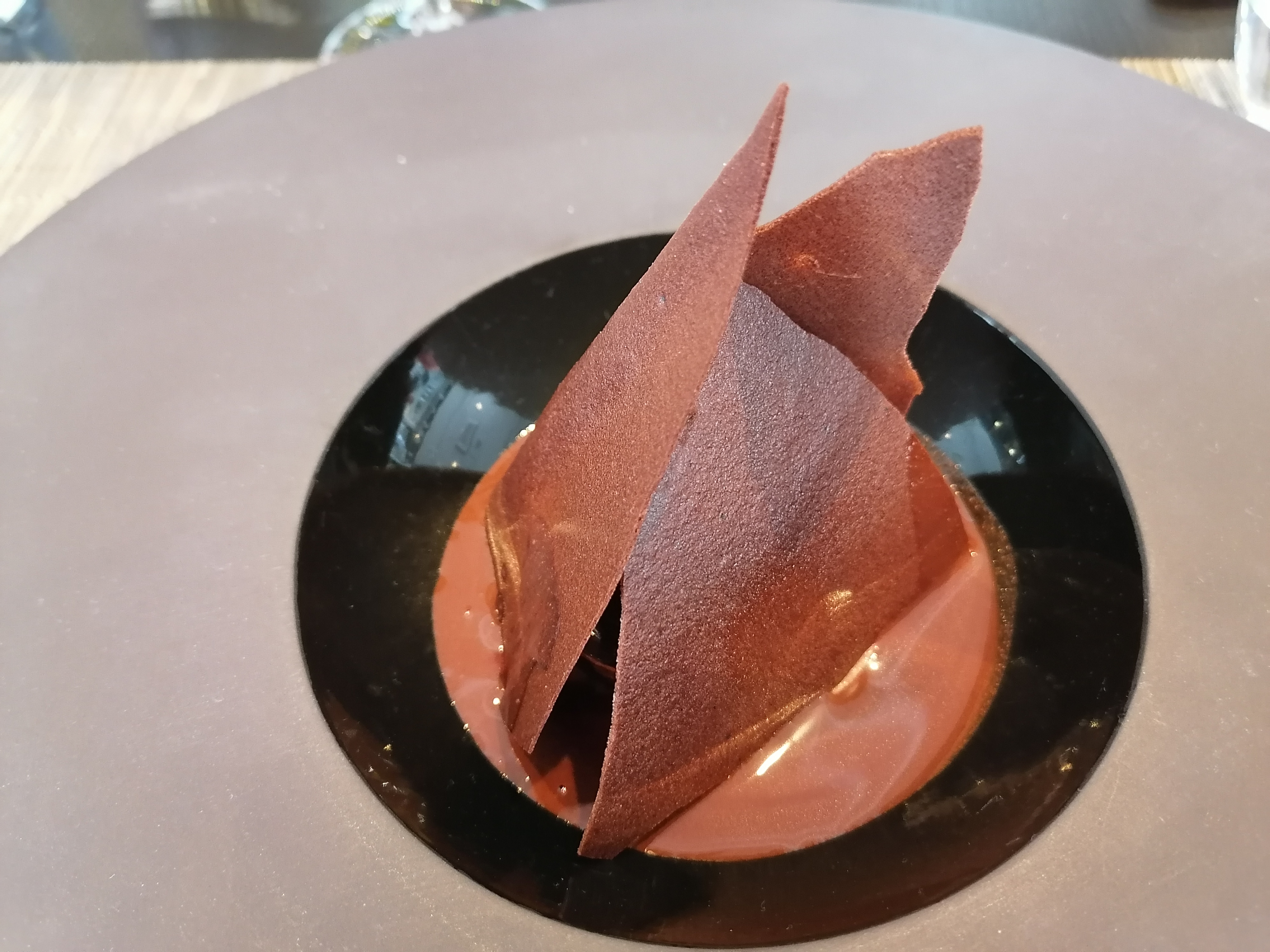 Cuisine élaborée et inventive. Service très attentionné. Le plat, très joli et inventif était un peu gras à mon goût. Le foie gras au dessus était peu goûteux. Le dessert sur le thème du chocolat était parfait et léger.