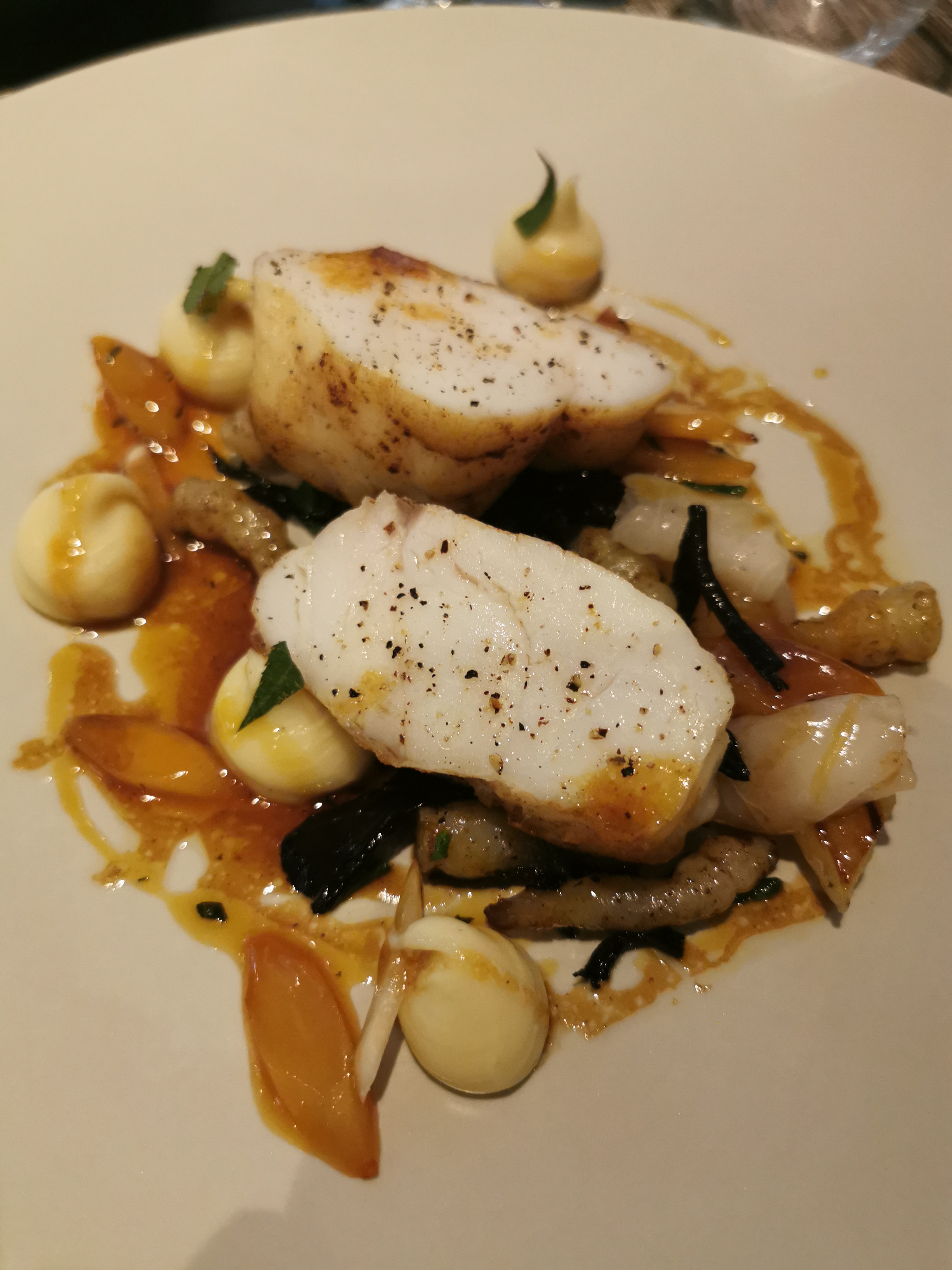 Petit dîner très sympa. La lotte était excellente comme tout le reste, accueilli et servi par des jeunes très agréables encadrés par beaucoup de bienveillance. Merci