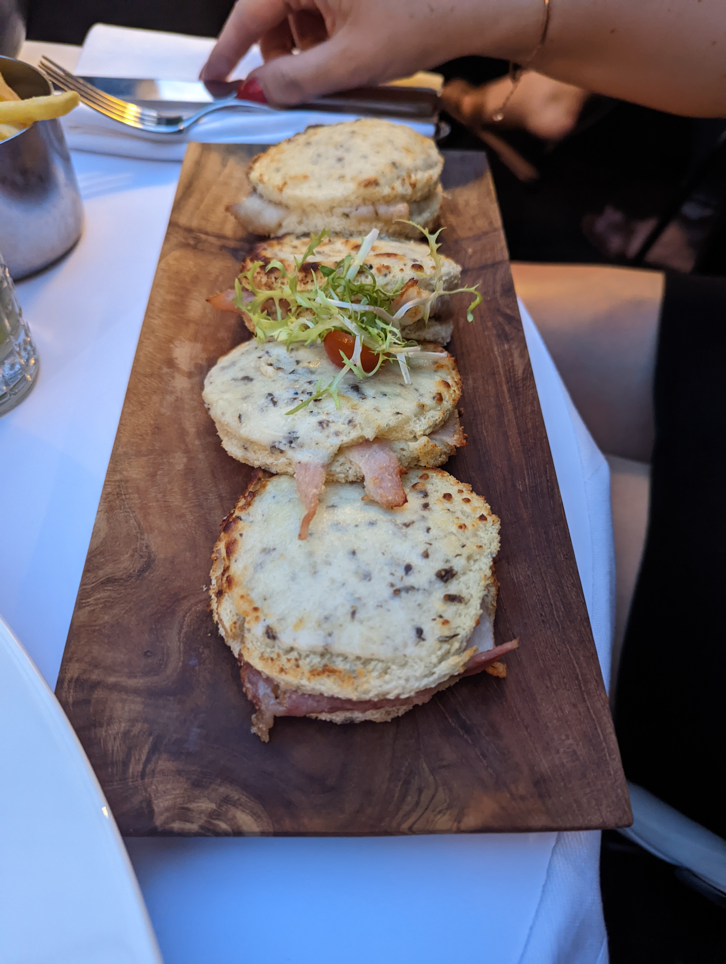 Nous y sommes allés le 13 février 2022. Nous avons passé un agréable moment. Le service est simple et efficace. Mais j'avais un courant air qui passé sur moi, légèrement désagréable. Nous avons pris l asian style. C'était bon mais froid. Dommage... Puis j'ai pris les gnocchis à la truffe: bonne mais sans surprise ni whouuu.. et mon mari a pris le filet de st pierre qui avait plus de goût et la sauce était plus recherchée. Nous avons pris une coupe de glace et la baba aux rhum. Mon mari fut surpris qu'il soit aux pamplemousse ou lieu de l'orange. C'était bon mais rien de surprenant d'un point de rapport qualité /prix le prix est un peu acide.