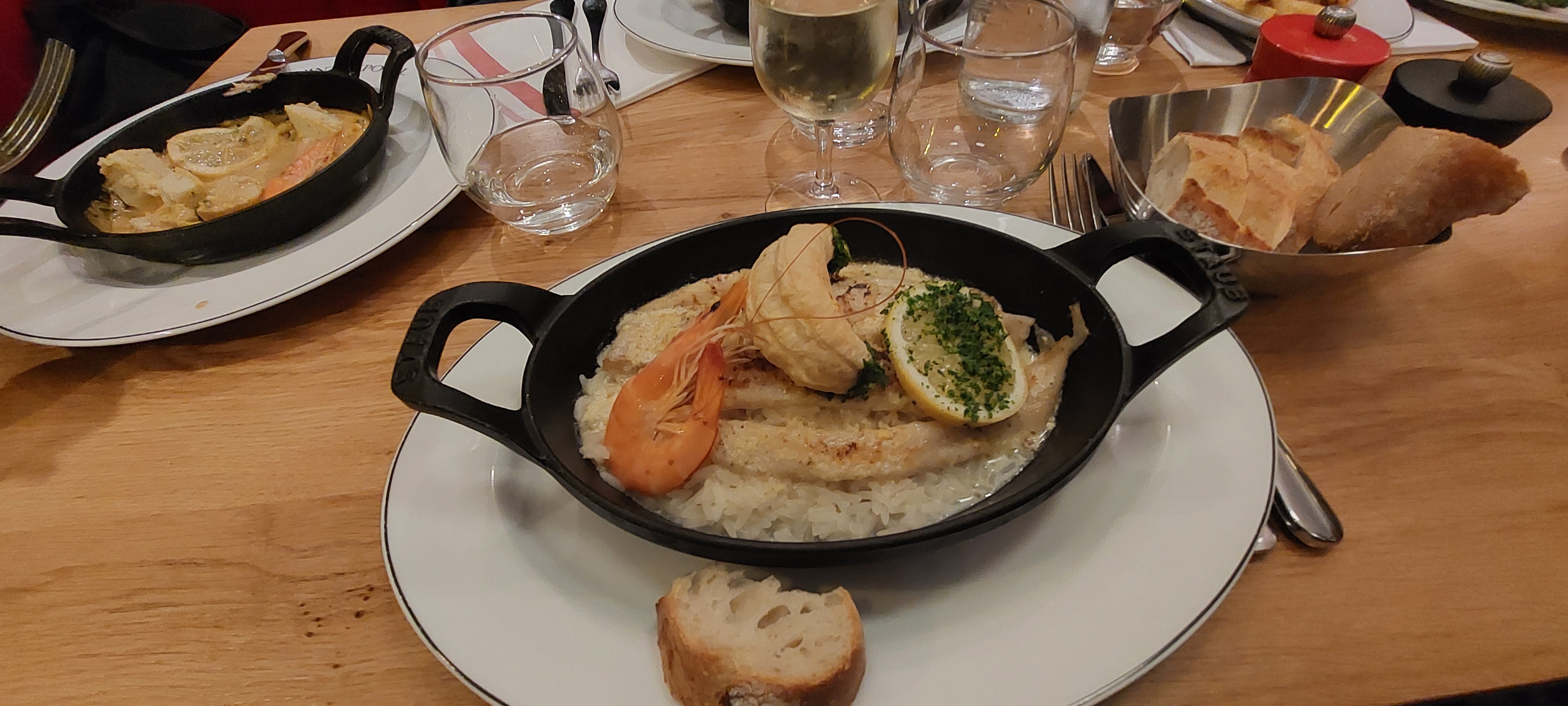 Niveau restaurant, menu apéro entrée plat dessert café et vin pour 35 euros. Les + : Pot de hareng à l huile à volonté. Millefeuille fait maison, baba au rhum et sa bouteille et mini madeleine maison avec le café.