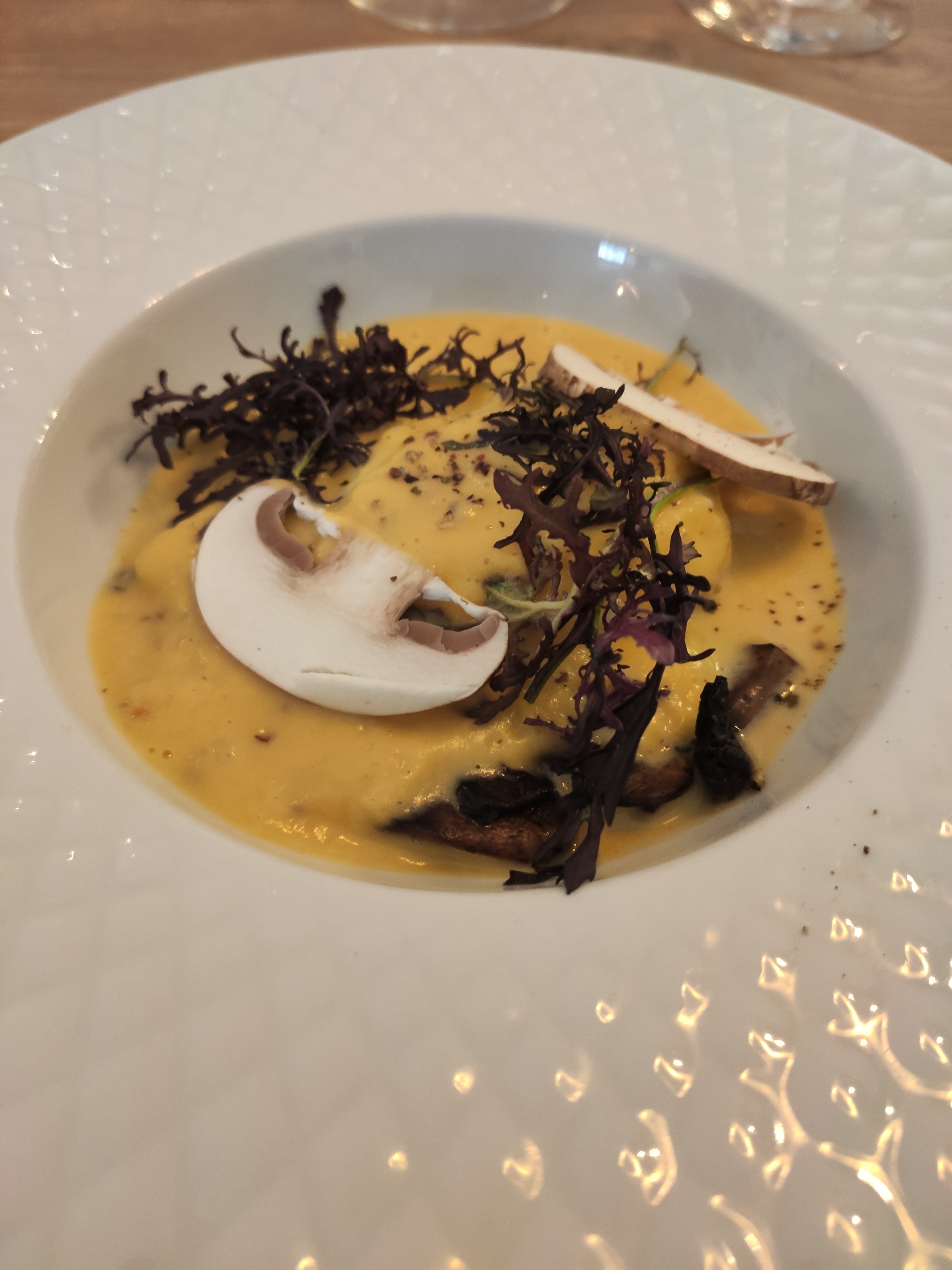 Nous avons très bien mangé. Les plats sont fins et recherchés. Pas une cuisine nouvelle où on sort avec la fin. nous sommes partis repus avec un sentiment de bonheur d'avoir mangé autant de bonnes choses. les rognons sont délicieux le cappuccino de châtaigne est à tomber allez-y n'hésitez pas