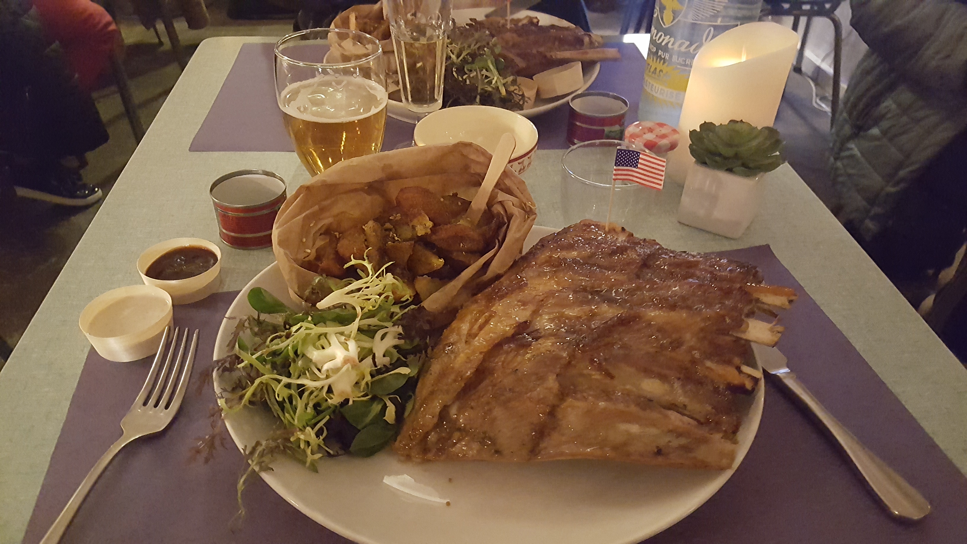 Déco de dingue, bonne ambiance. On s'est régalé avec des Ribbs excellentes. Patron tres sympa, super service, je recommande !!