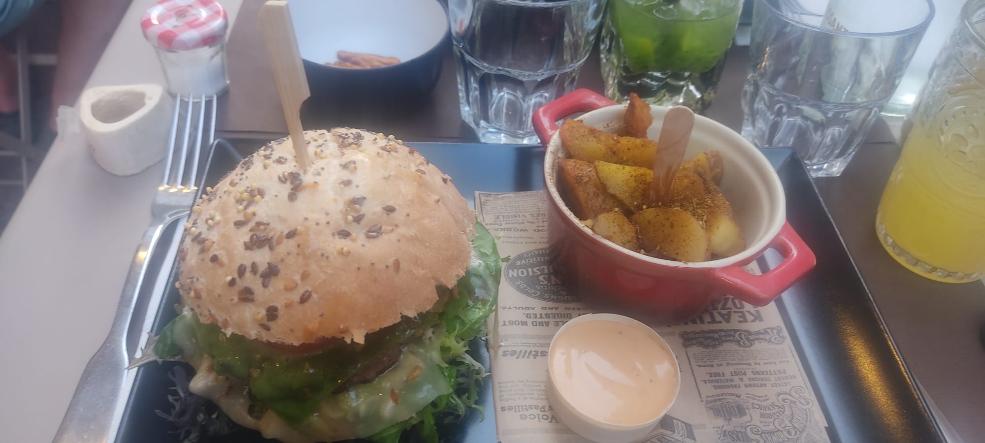 Je recommande fortement ce restaurant, la décoration est originale et surprenante ! Nous avons beaucoup aimé nos cocktails et une mention spéciale pour le burger du moment qui était excellent !! Très belle expérience :)