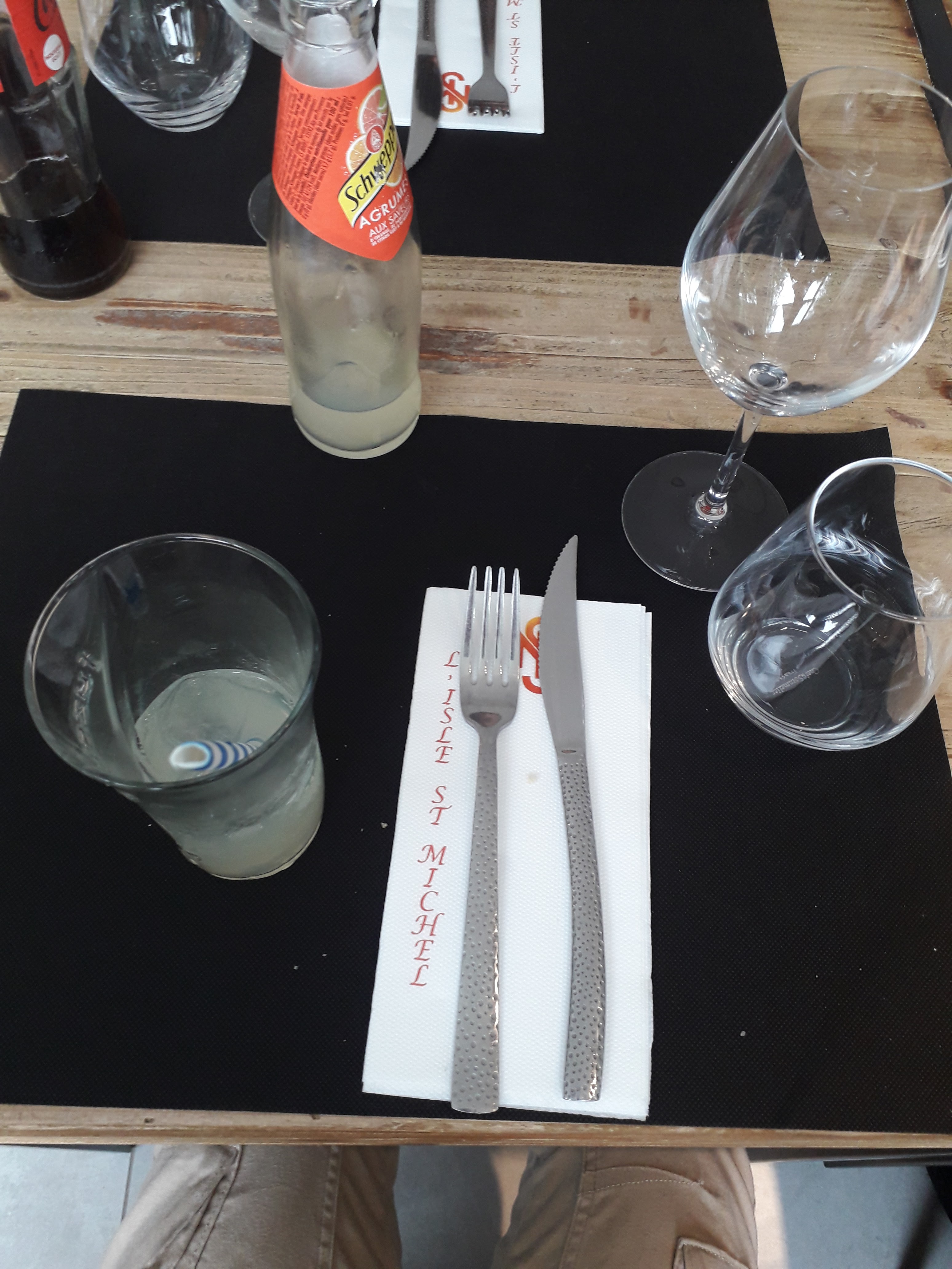 Cadre extraordinaire, personnel pas désagréable mais un peu expéditif car complètement débordé, produits de qualité mais qui mériteraient, pour le prix, d'être d avantage préparés et cuisinés. Temps d attente assez long. Nous avons finalement décidé de ne pas prendre de dessert car nous les avions commandé mais au bout de 40 mn toujours rien. Nous aurions apprécié que l on nous donne les glaces des enfants à emporter car comprises dans le menu et sous forme de bâton à pousser donc déjà prêt.