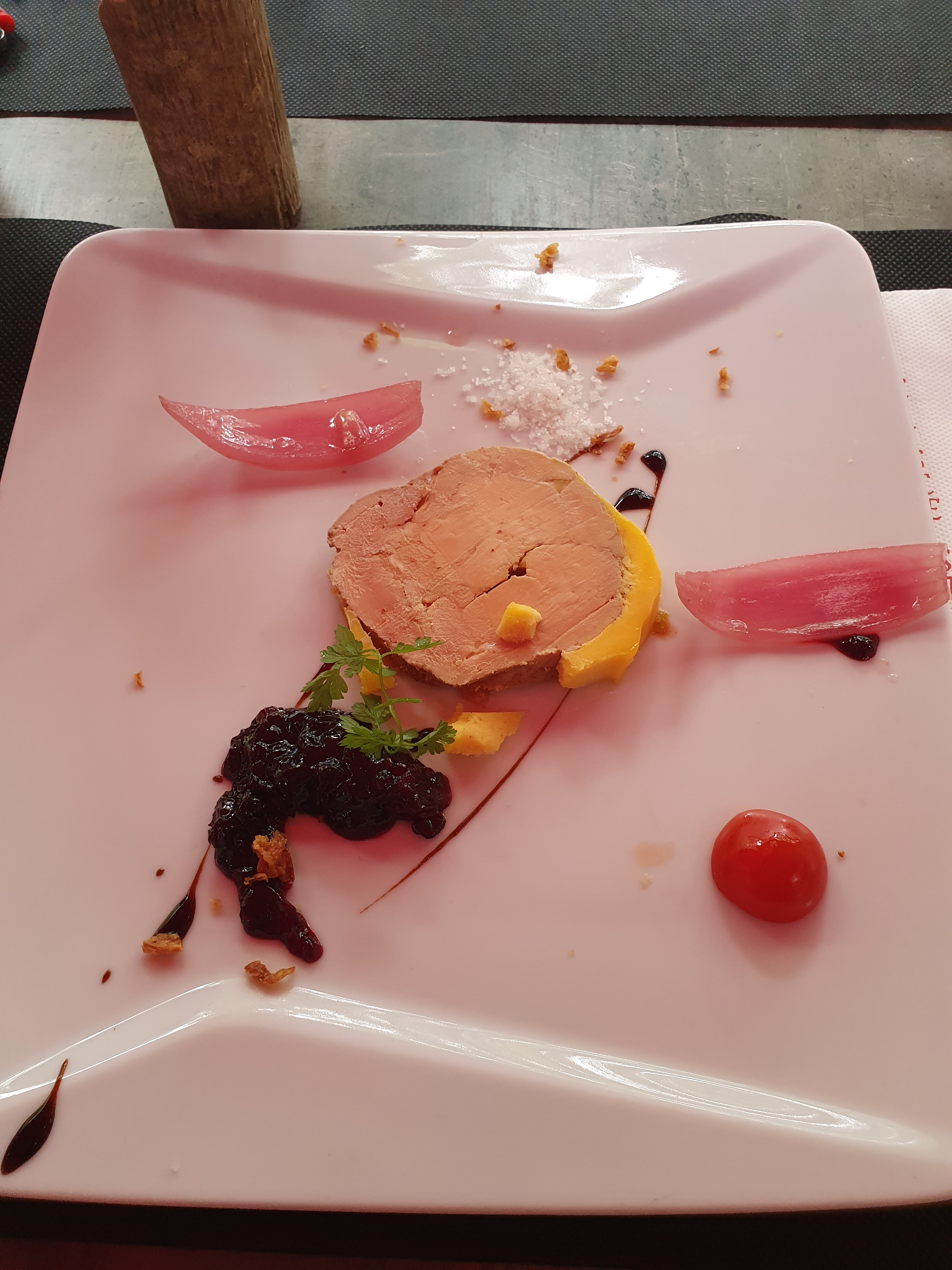 repas appréciable pour la st valentin malgré quelques oublis. dommage ne pas avoir eu droit à la rose le repas était bon et mention spéciale pour l’écrasé de pomme de terre qui était à tombé ! j’ai été moins fan de la mignardise sucrée à la rose.