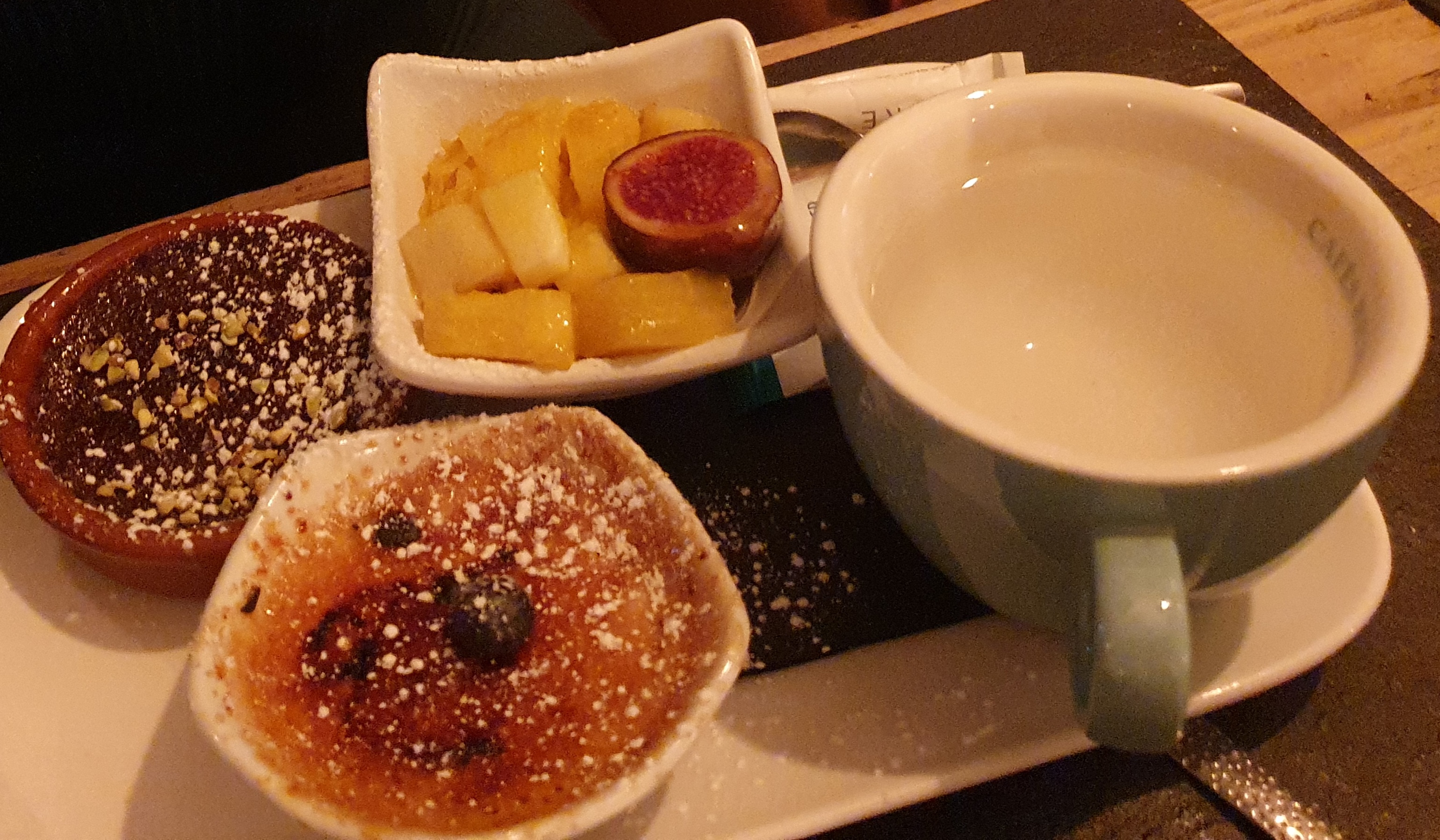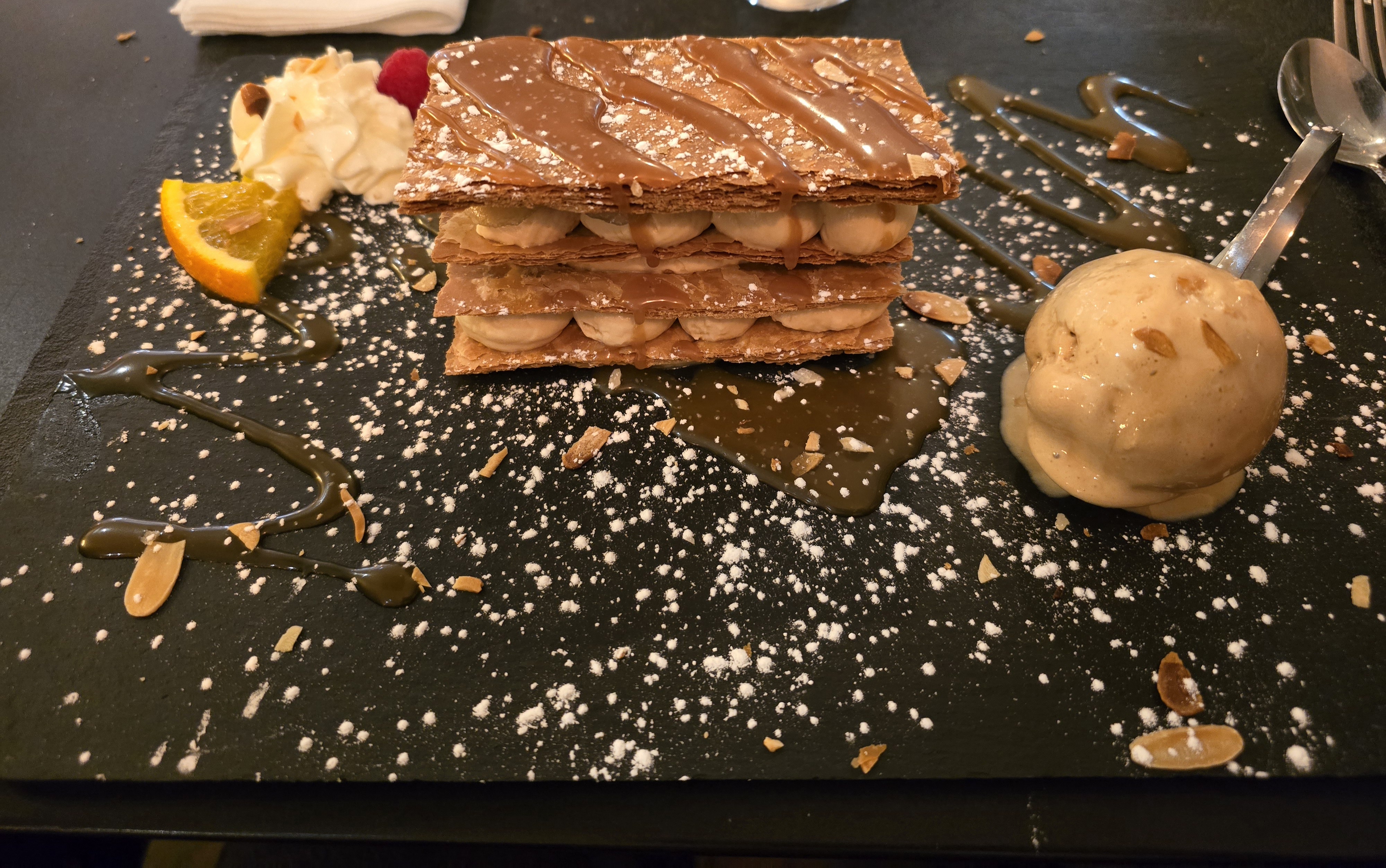 Le cadre est sympa mais juste le cadre ! Arrivée à 20h15 , plat servi à plus de 22h malgré un serveur en terrasse qui courait partout ! On a pas eu la chance d’avoir la carte des desserts dommage ! Soit faut embaucher soit il faut réduire le nombre de table pour un service de qualité .