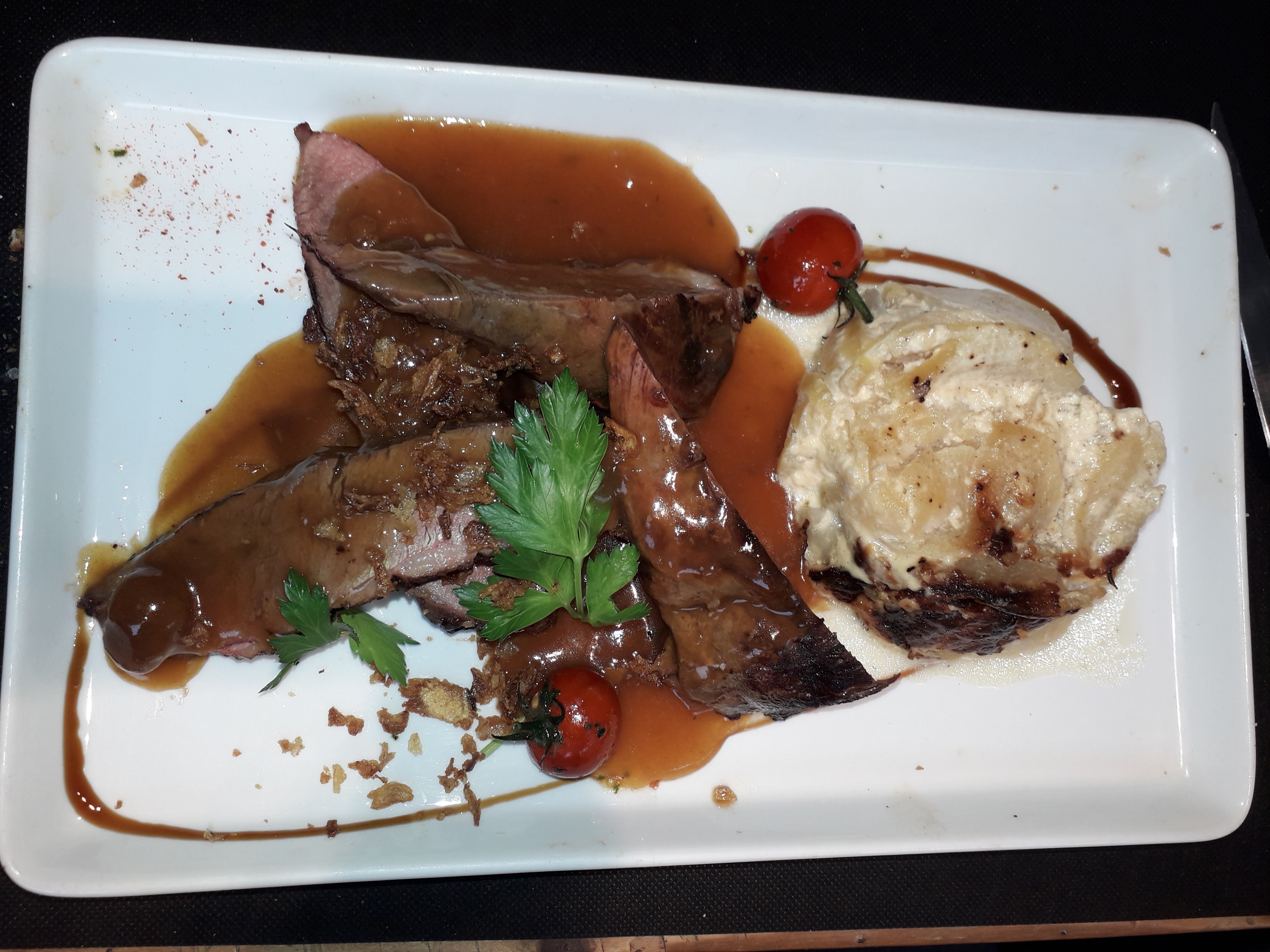 Le cadre est très agréable, le service au top, pour la cuisine, j'ai pris une souris d'agneau avec des pommes grenaille la souris d'agneau,très bonne mais les pommes grenaille elles étaient cuites recuite et réchauffer plusieurs fois c'est dommage de penser que ça allait passer.
