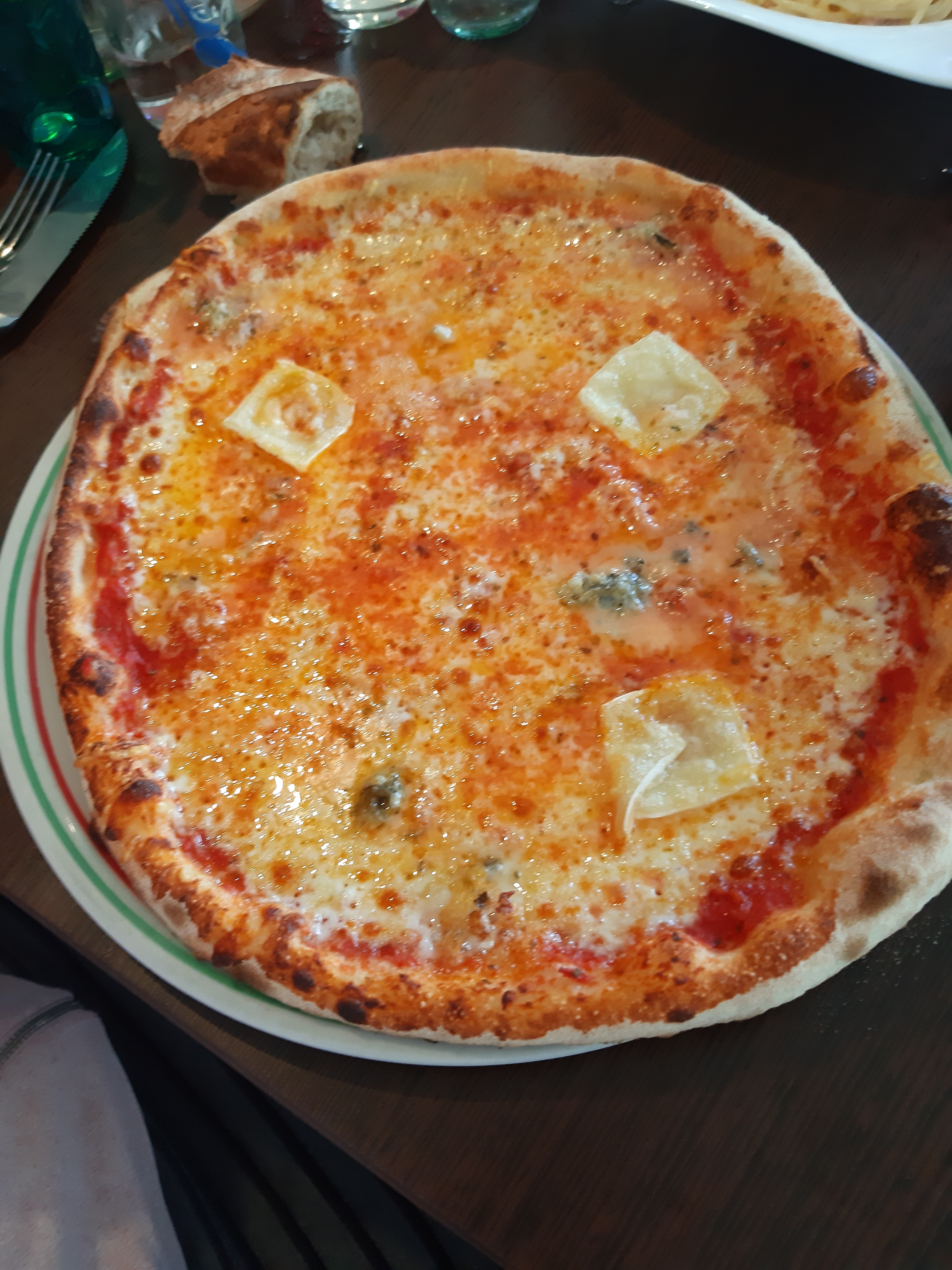 Pizza 4 fromages qui a goût au gruyère... manque le gorgonzola . Dommage ça avait l'air bon.