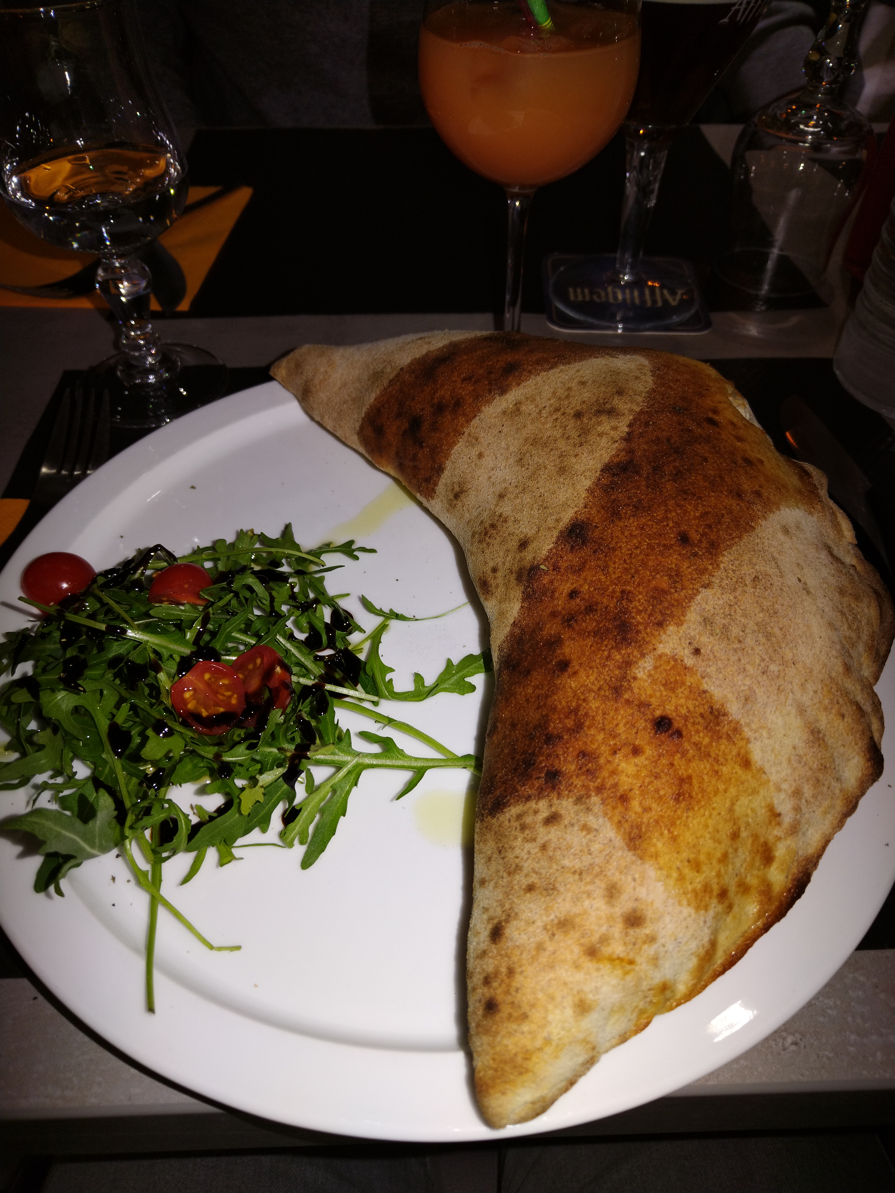 Couteau pour couper la pizza avec des dents, un peu compliqué. Et un cocktail avec du prosecco sans bulles, pas terrible... la pizza était bonne cependant et l'accueil tout à fait convenable. PS : je n'ai jamais dit que votre pizza était congelée 😆