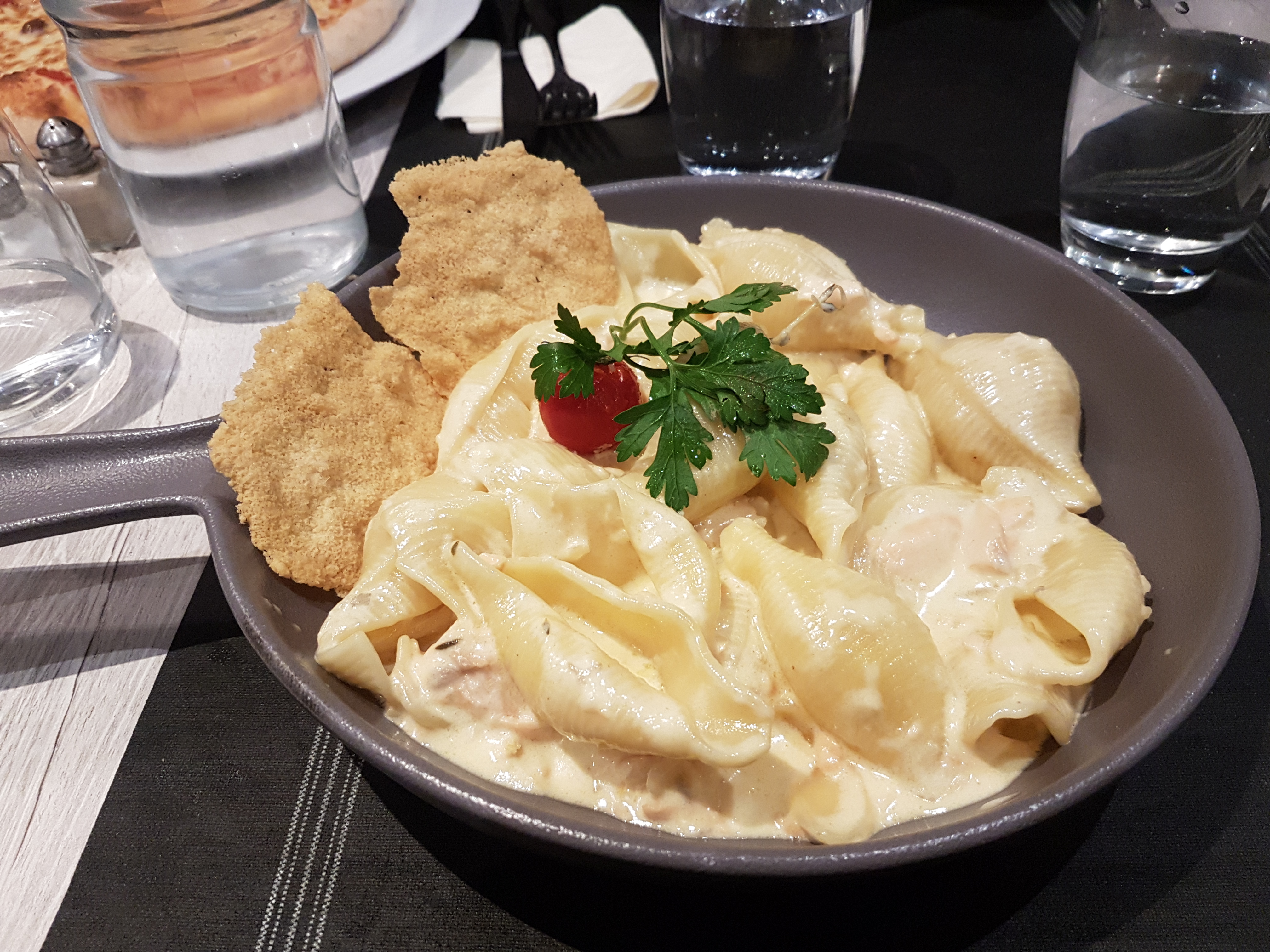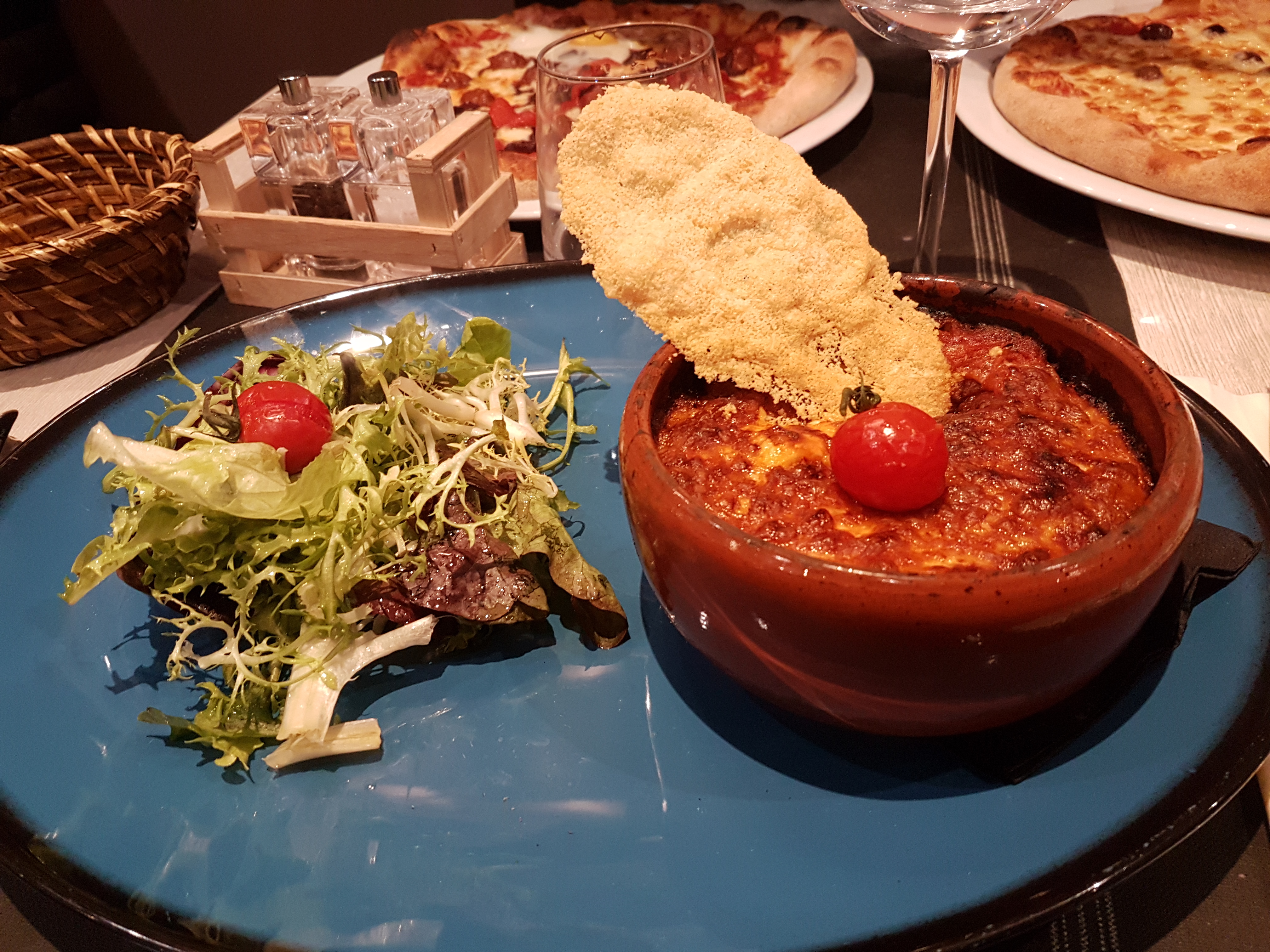 Il y avait trop d’huile et de crème fraîche dans les pattes au saumon j’en ai eu mal au ventre. Le plat escalope milanaise : la viande était pas bien cuite. Sinon la pizza était bonne.