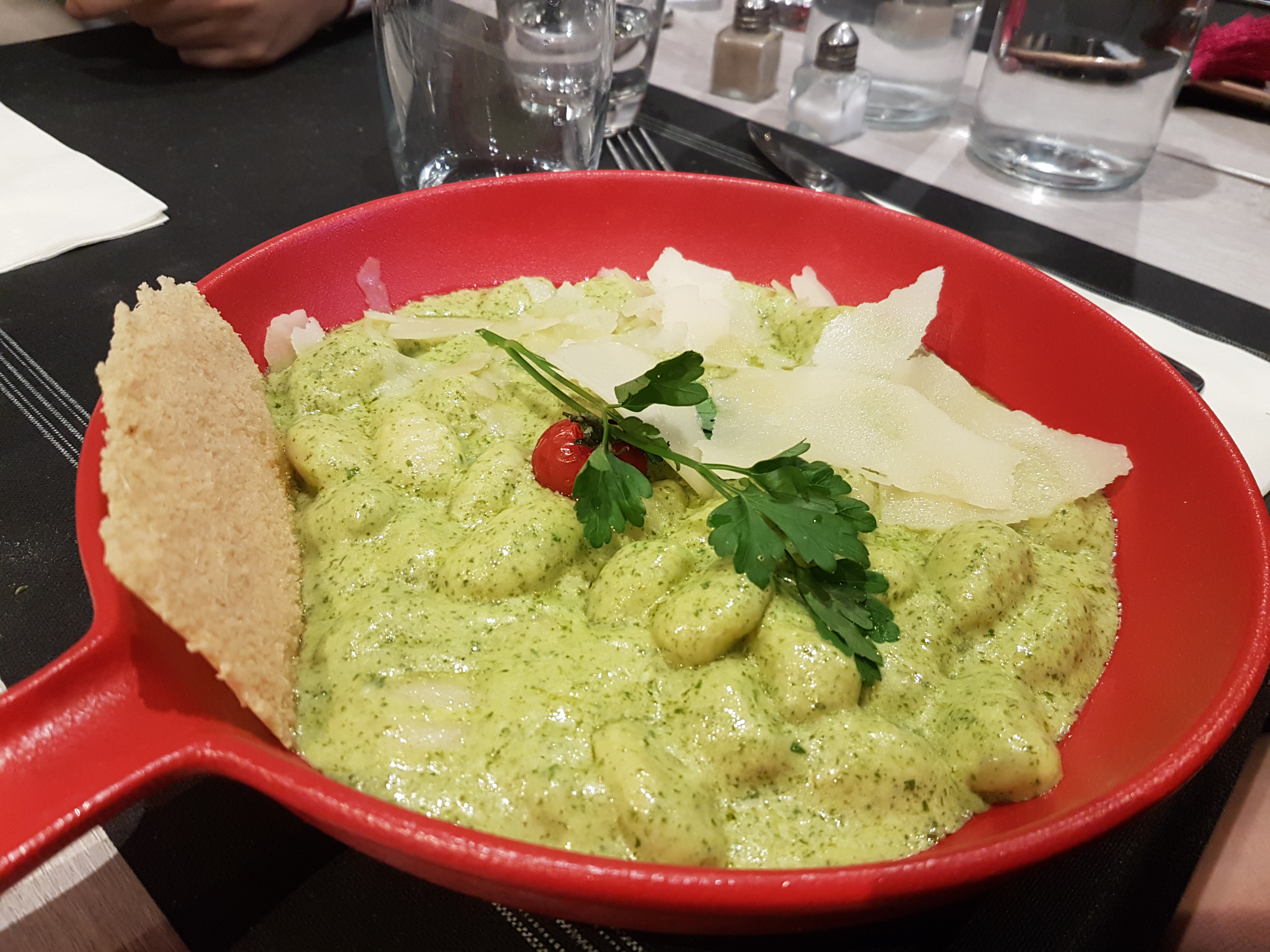 Accueil très sympathique et service aux petits soins. Les gnocchis à la crème de pesto et copeaux de parmesan sont un délice. Plat copieux et savoureux, préparez-vous à déboutonner votre pantalon 😉 Très bon rapport qualité/prix pour une adresse à proximité des champs élysées.