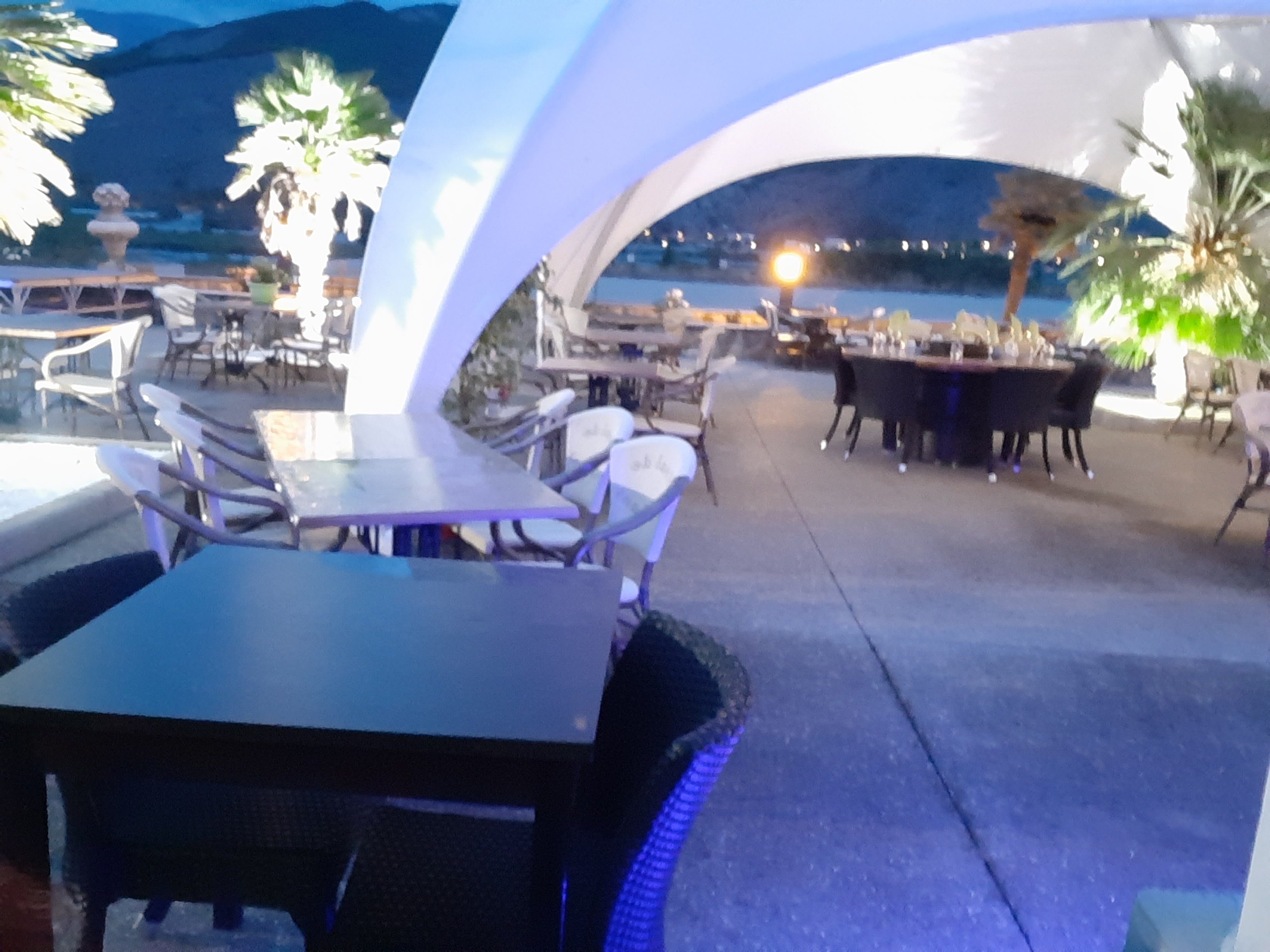 Superbe restaurant ,cuisine au top... accueillants, serviables ,site somptueux. nous sommes tombés sur la soirée gambas à volonté ...(très très beaux calibre de gambas)+ groupe de musique . entrée : tomates mozzarella et dessert = 56 € pour 2...en plus toutes les tables avec des petites lumières led de couleurs .. A bientôt