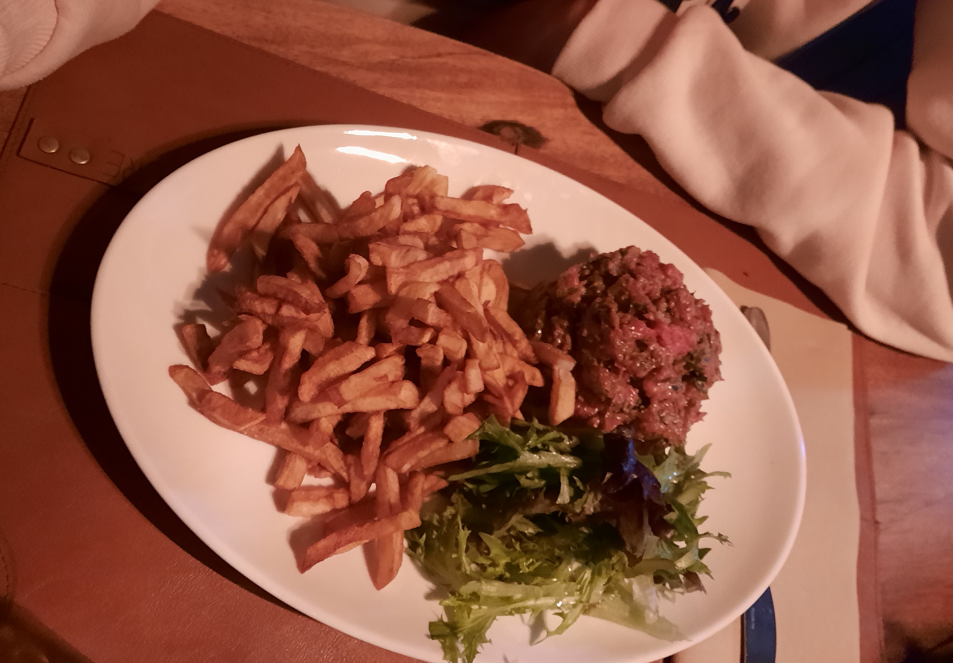 Un lieu vraiment sympa, familial, sans être trop guindé . J’adore les toilettes Trône ! 😂 . Carte simple juste ce qu’il faut . Le tartare est délicieux bien assaisonné et aromatisé.. les frites très bonnes . Une bonne quantité et qualité pour un soir . La pizza de madame , j’ai adoré : pâte fine , bien cuite et de bons produits la garnissant ( le fond en duo de fromages ) hmmmm . Pour finir j’ai craqué sur les profiteroles ! Les choux , chantilly maison Génial ! Servi avec ce bon chocolat chaud dans un petit ramequin . Perso la glace vanille manquait de goût! . Bref un restaurant où vous pouvez y aller les yeux fermés ! Quoique pas de trop il faut pouvoir manger 😂 ah j’oubliais le personnel tonique rapide à vos petits soins et pleins d’humour surtout la blonde 😂😂👍 à bientôt