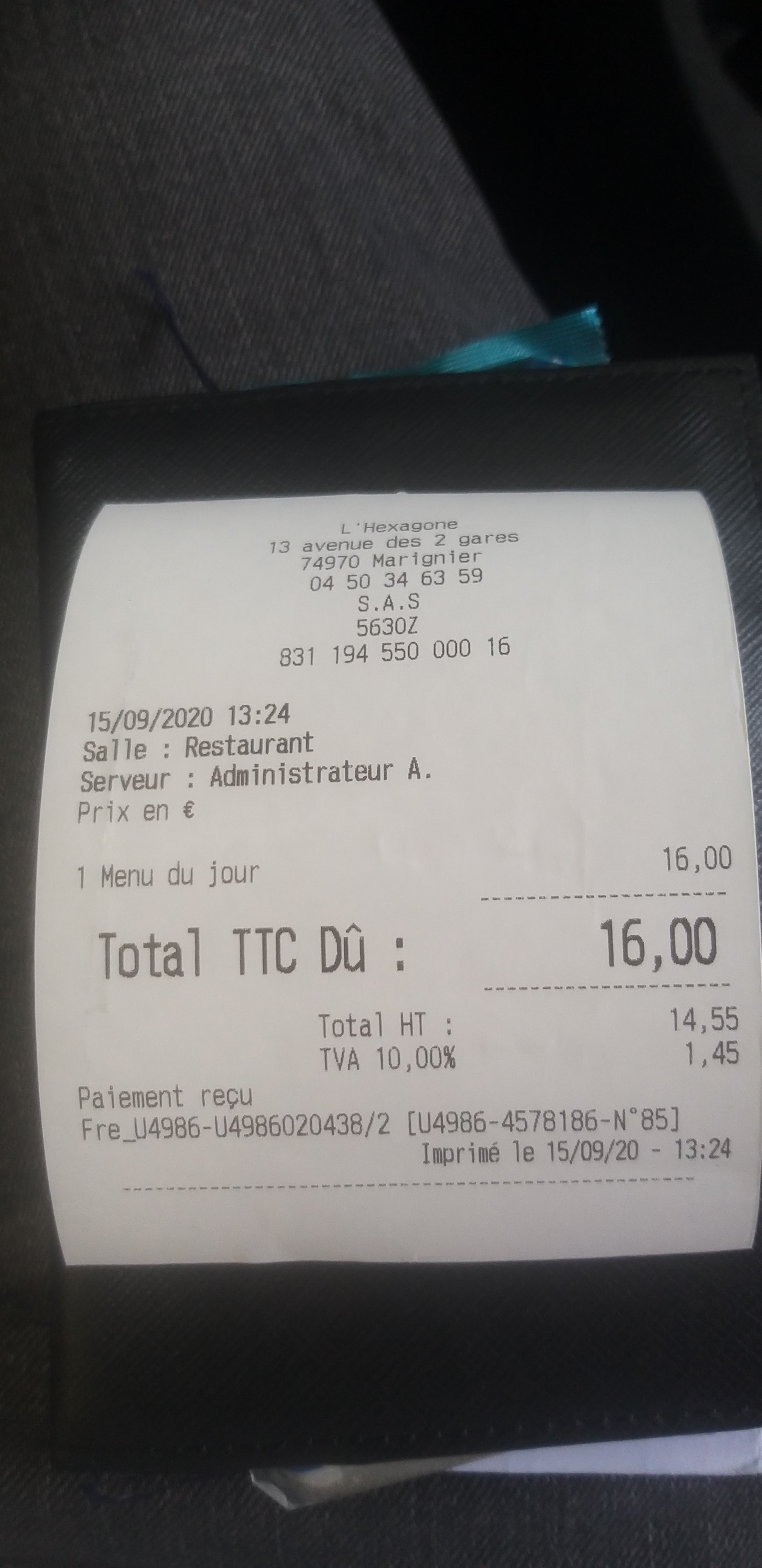 Je venais de temps en temps et j'ai toujours été satisfaite jusqu'à aujourd'hui! J'y suis allée j'ai pris un plat du jour et verre de vin 16€ ma collègue prend une formule du plat et dessert du jour un verre de vin et un café 17,40€!!!! Je demande à la serveuse s'il y a un souci ma collègue qui me dit non!! Bref impossible d'avoir une explication... très déçue!