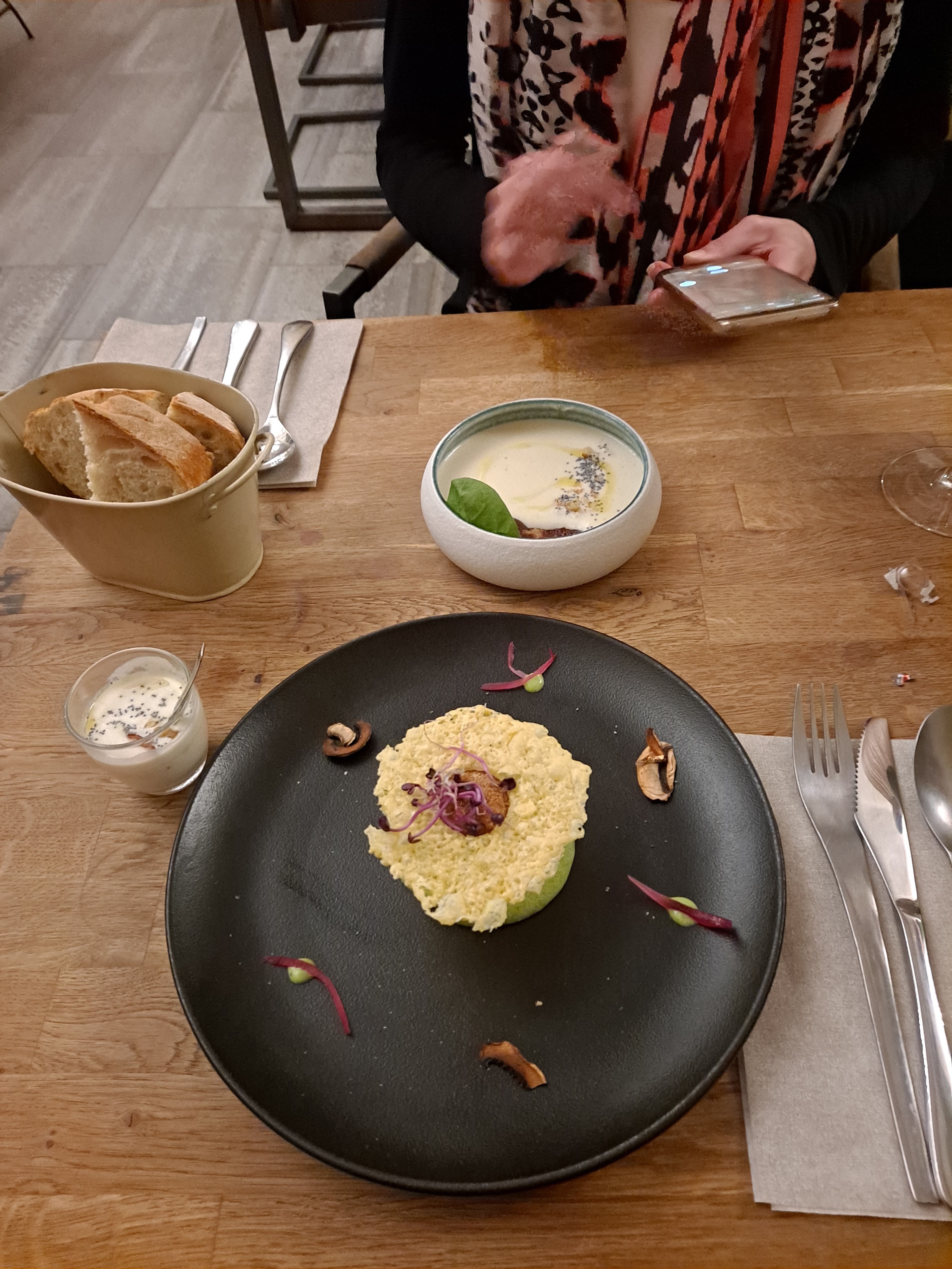 Très bon repas à un prix plus que correct Présentation digne d'un restaurant étoilée Goûts fins et bonnes combinaisons Seul le cheesecake vegan ne m'a pas convaincu
