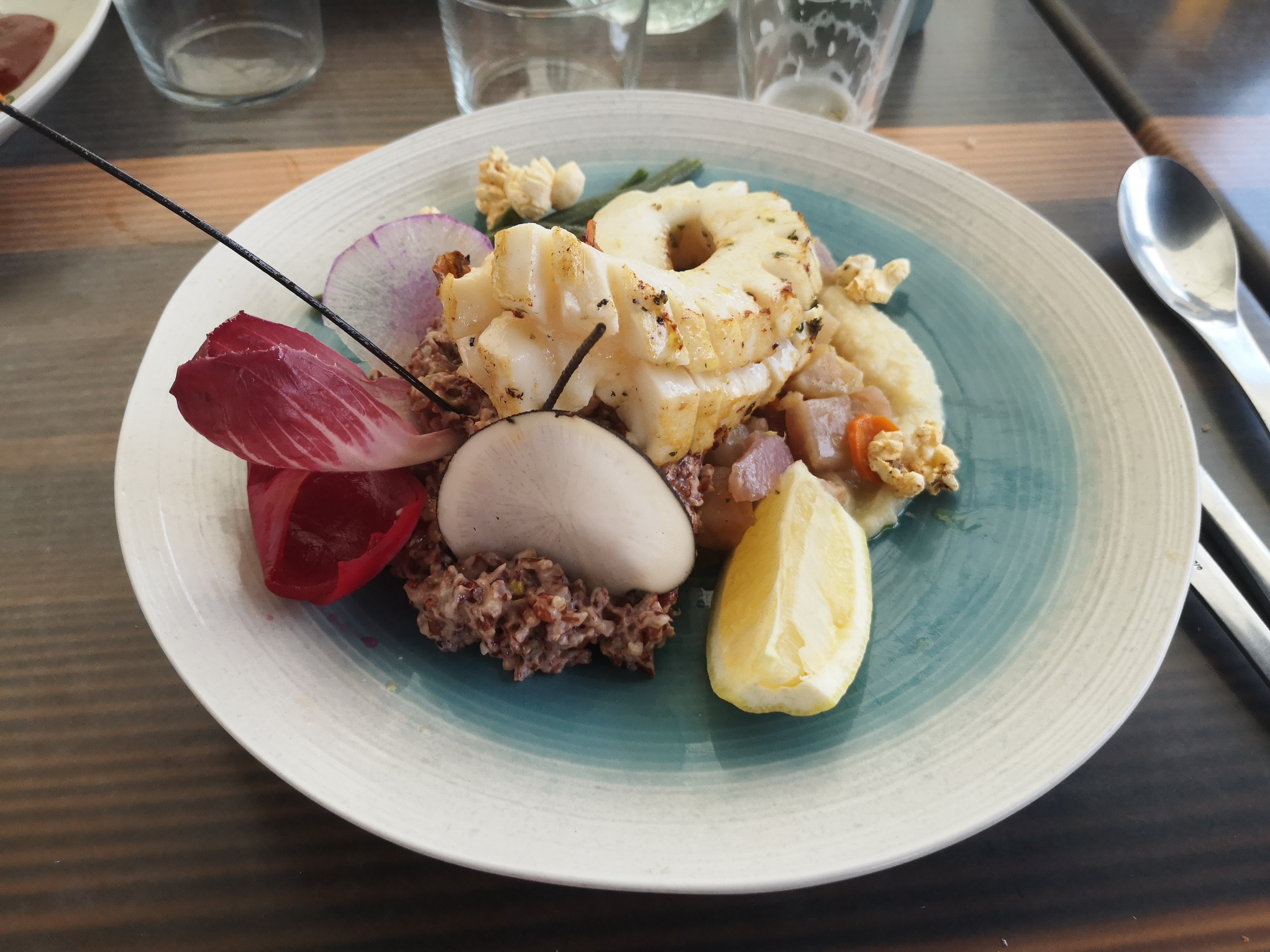Un repas vraiment excellent ! Seiche magnifiquement cuite, tous les accompagnements sont cuisinés et délicieux, dans l'assiette rien est là juste pour faire joli, tout était vraiment délicieux 😊