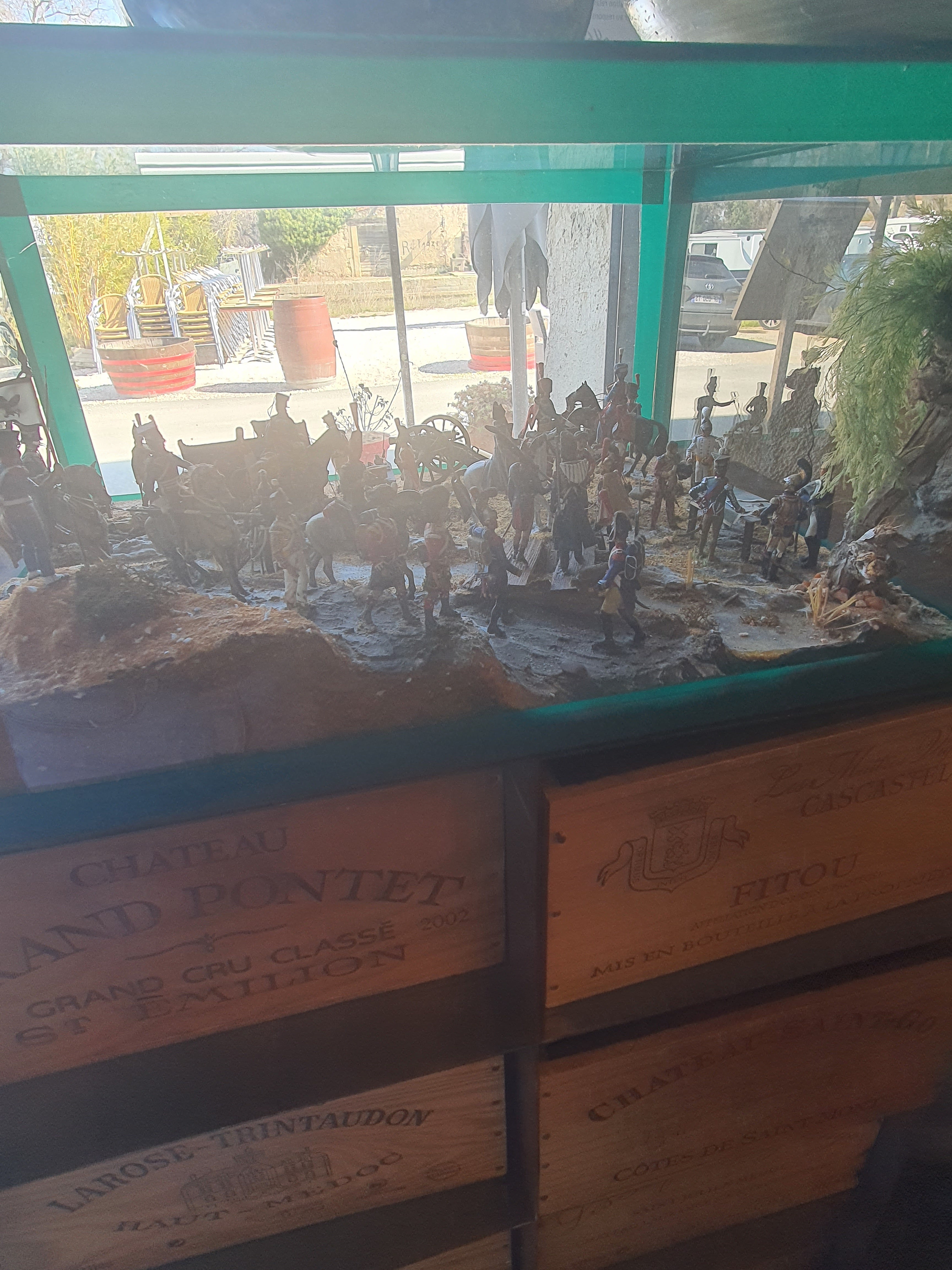 Repas génial ici lors de notre première soirée de navigation sur le Canal du Midi..Superbe librairie à côté