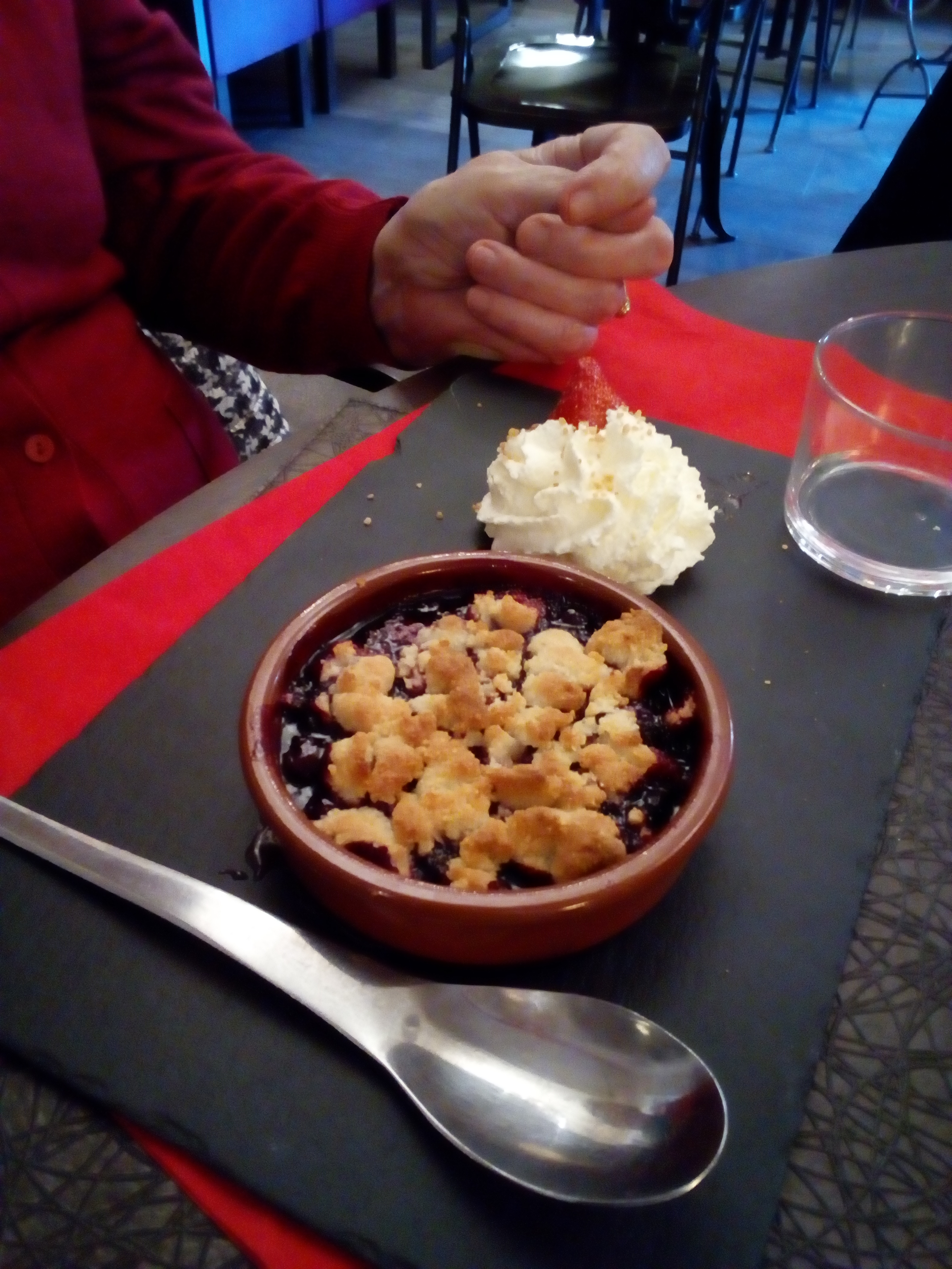 Rapport qualité prix moyen, les plats acceptables sauf le dessert, en guise de crumble abricot : 4 demi abricots baignant ds un jus crémeux sans crumble, le tout couvert de chantilly, décevant à 9€ le dessert.