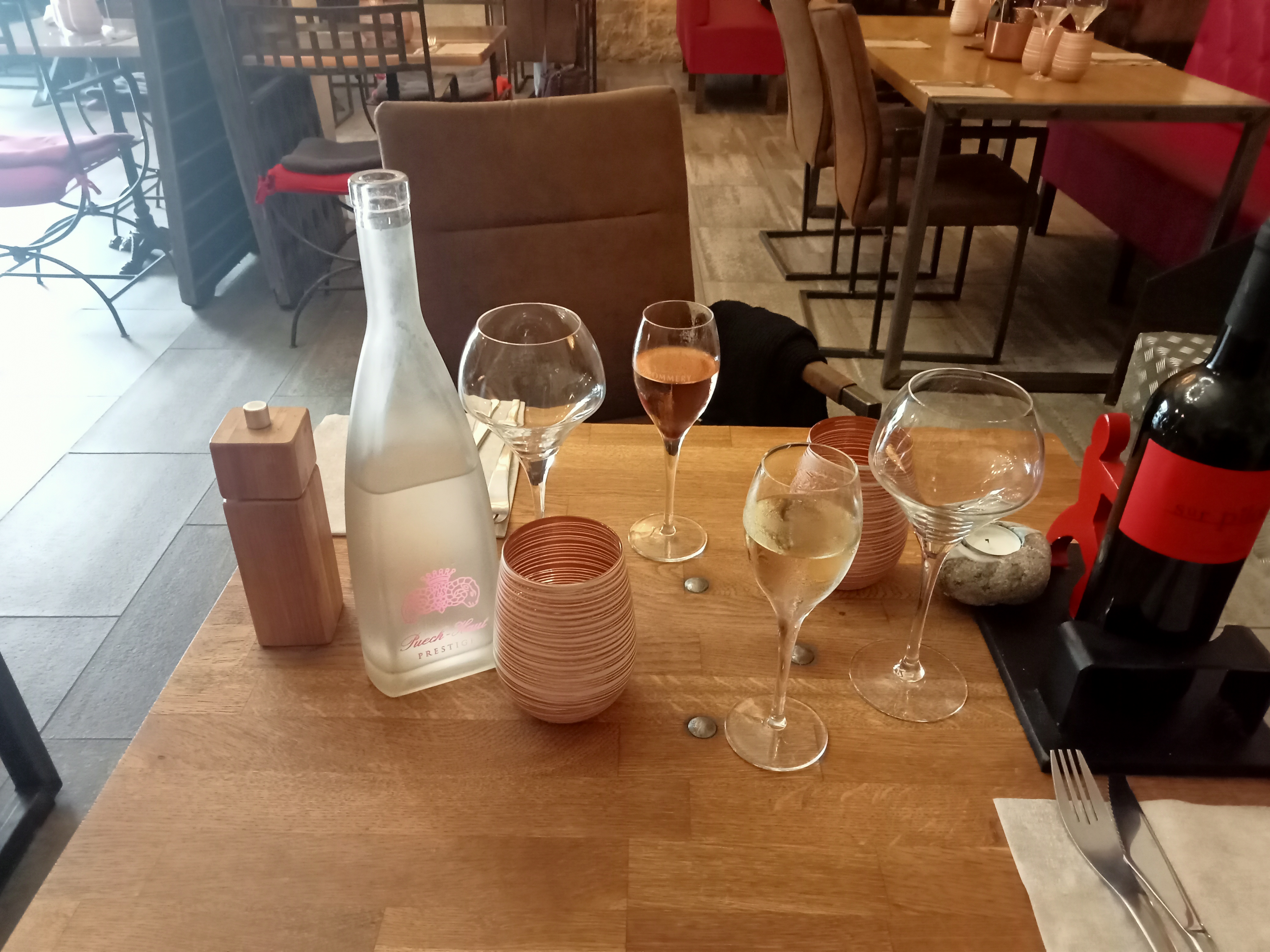 Très bonne table et serveuses très agréables et de bons conseils... ...Avions pris une très bonne bouteille de vin pour l apéro et le repas, dommage qu'il n'y ait pas de quoi grignoter,l'entrée a été servie très rapidement