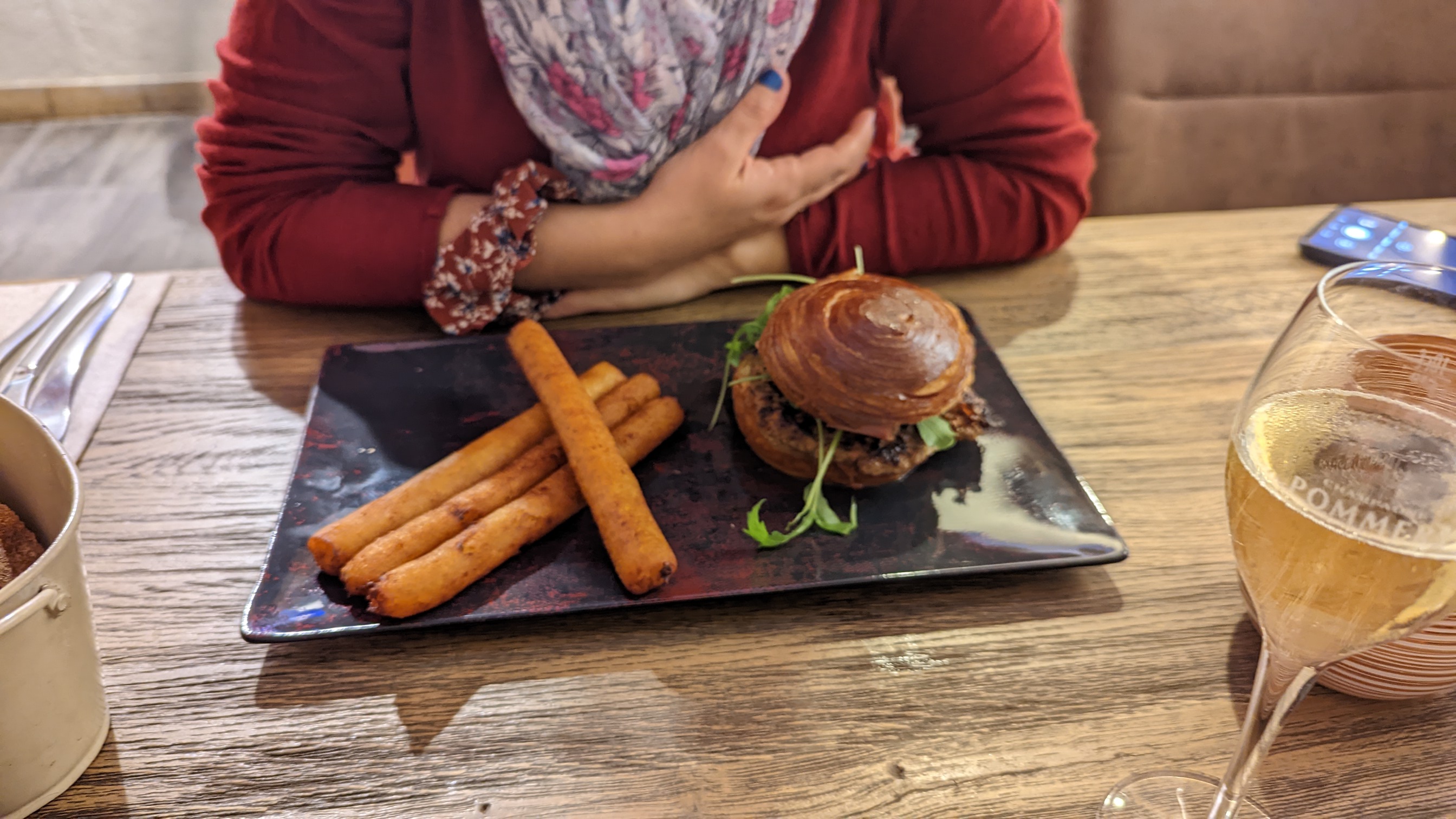 Superbe repas dans un endroit idéal au bord du Canal du Midi. Nous avons réservé une table, je le recommande probablement en haute saison, le restaurant était complet à 21 heures. Burger fumé à recommander. Le Foie Gras a commencé excellent. Excellent personnel et ambiance conviviale. Je suis revenu quelques jours plus tard et j'ai eu la sélection d'entrées, y compris un pied de porc !