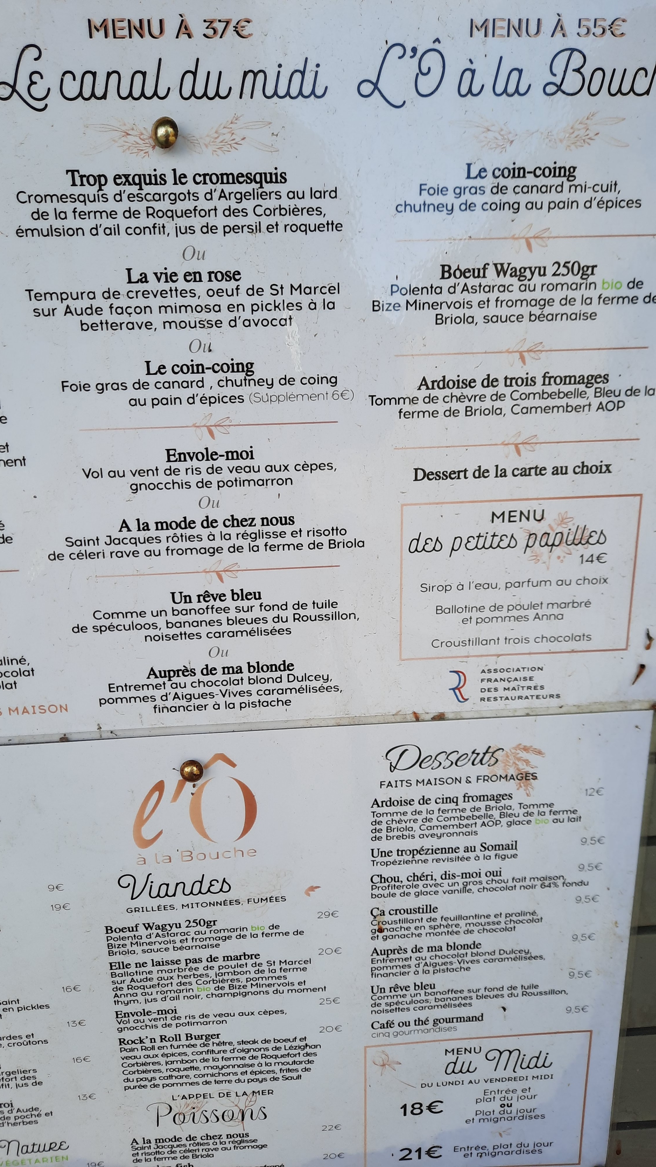 Le Somail est un petit village très charmant à cheval sur le canal du Midi. Le restaurant l'O à la bouche permet de prendre le temps de profiter de ce Havre de paix avec une carte et des menus qui sortent de l'ordinaire avec des saveurs qui emoustillent les papilles. À découvrir ! 😊