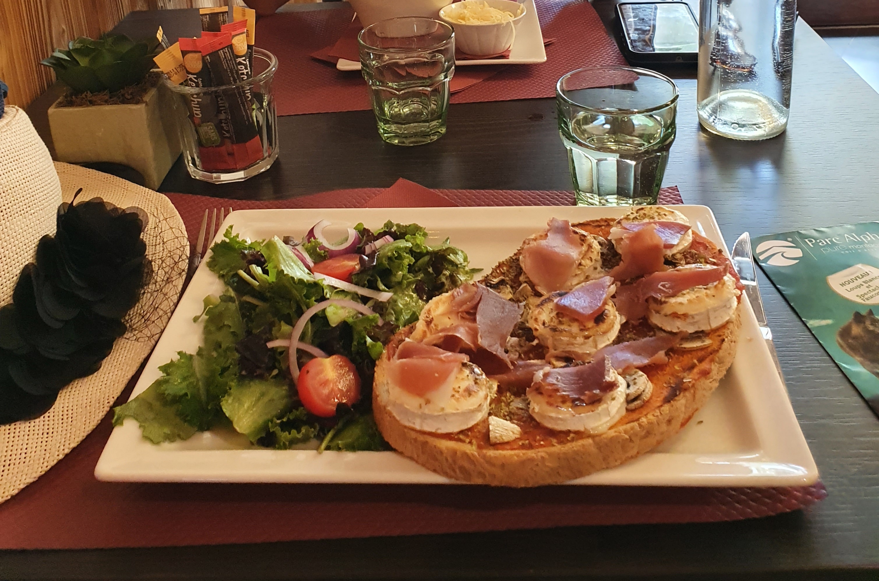 Super accueil, serveuse et serveur adorables, nous avons pris un menu du début à la fin un régal nous vous conseillons de vous y arrêter après la visite du parc Alpha