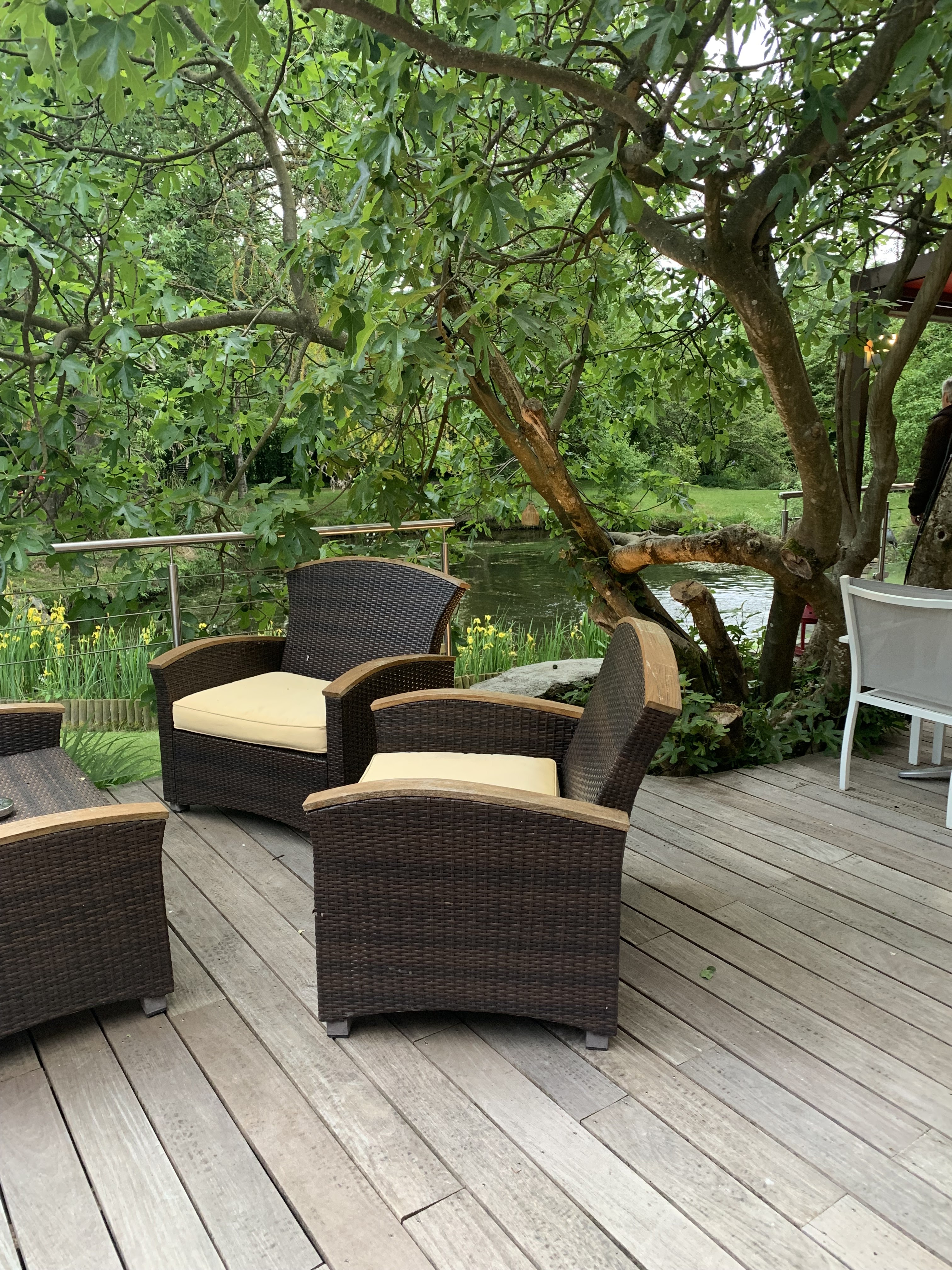 Cadre superbe dîner sur ou terrasse avec un petit étang qui apporte une touche de fraîcheur, repas excellent très bon rapport qualité prix