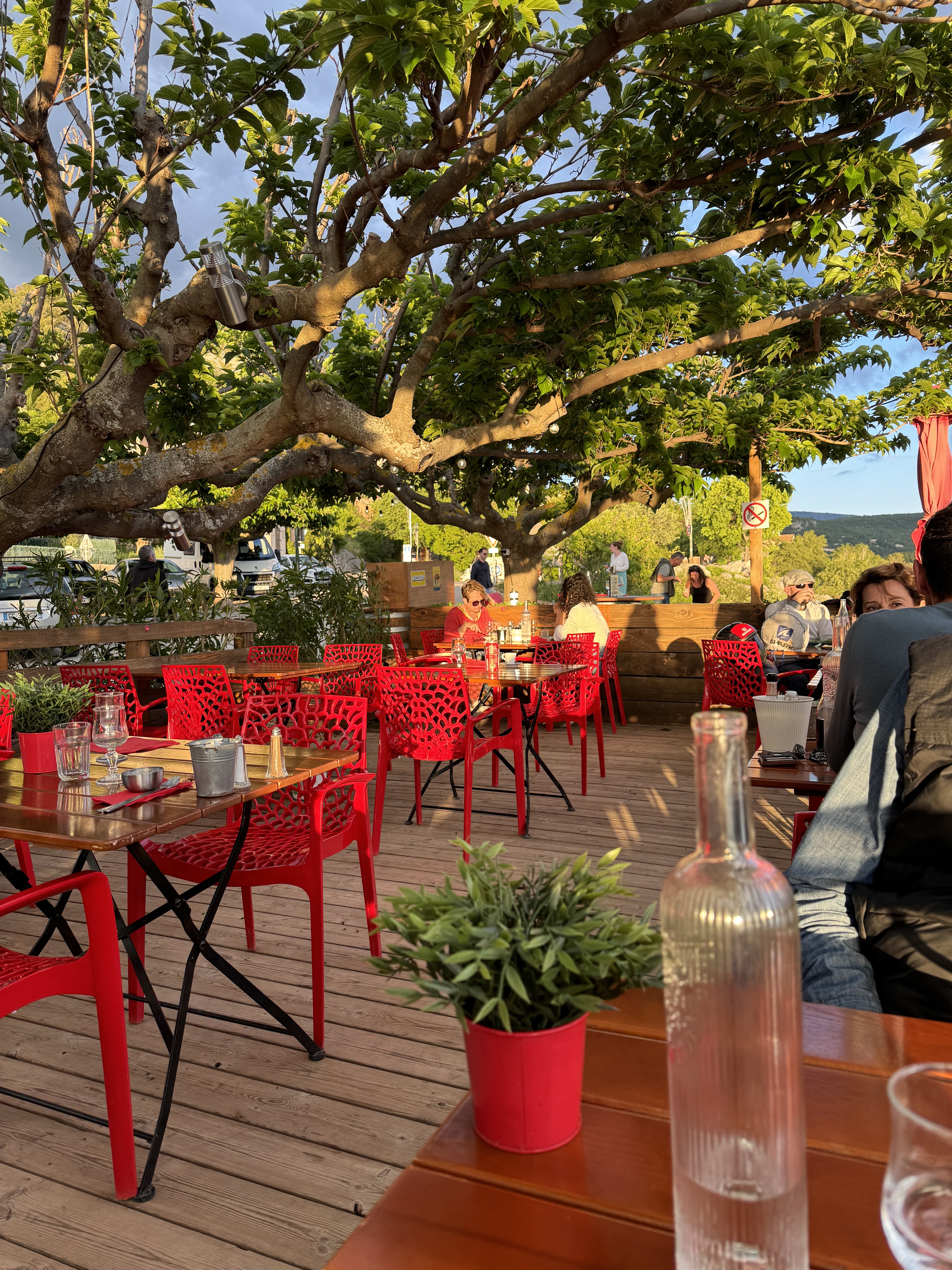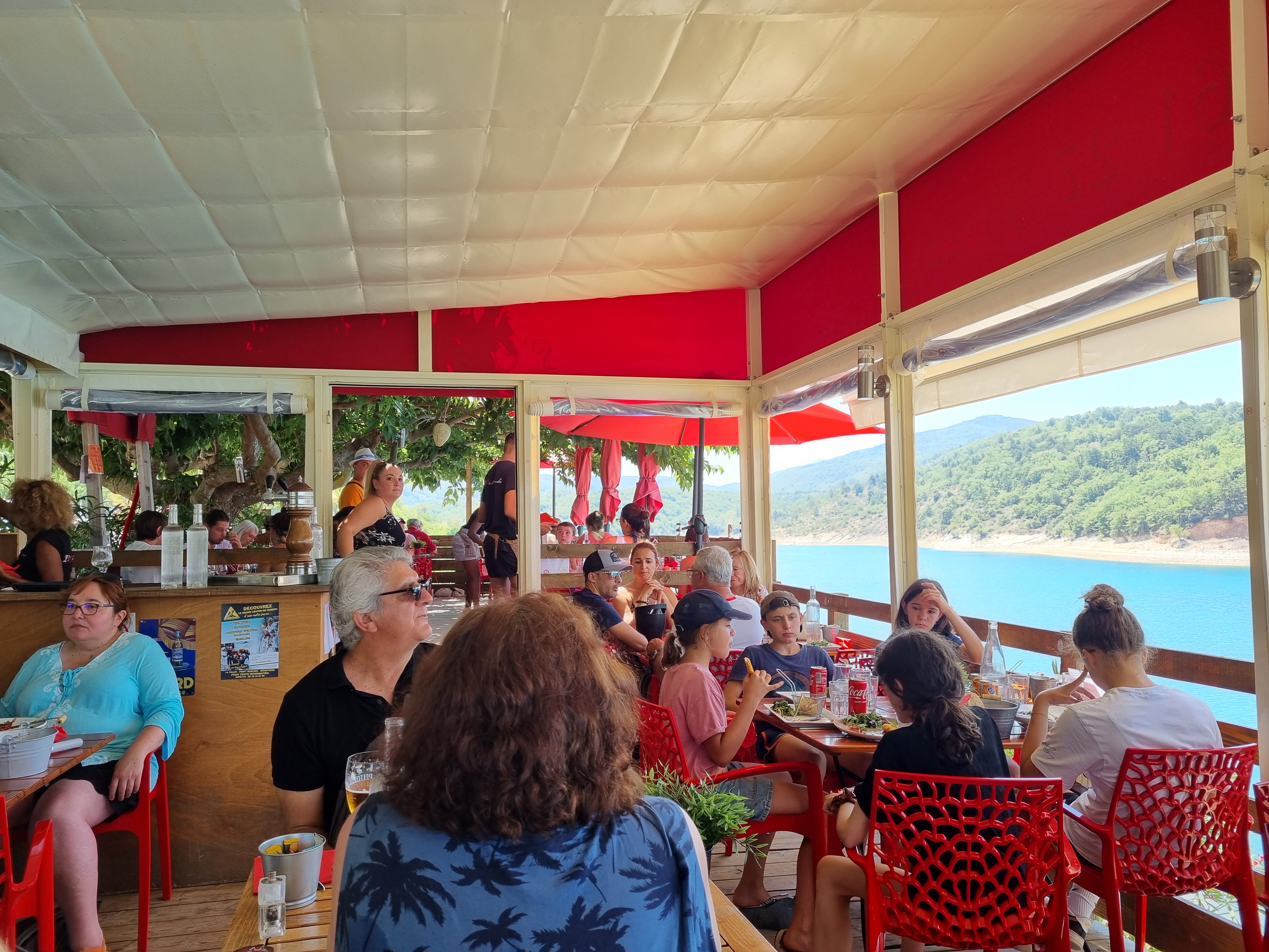 Certainement 'the place to be ' de bauduen avec une vue imprenable sur le lac, mon avis peut être biaisé de par le fait que c'est la fin de saison et que la fatigue se fait ressentir pour le Staff...et l'approvisionnement de marchandises ( plus de vin blanc,plus d'agneau etc..)je pensais qu'un p'tit digestif nous serait offert du fait que l'on s'accordait à cette fin de saison... mais en vain...cela n'empêche que je félicite les cuisiniers pour la préparation des hamburgers et le jeune homme à lunettes pour son accueil... à faire mais l'indulgence est de mise à cette période.
