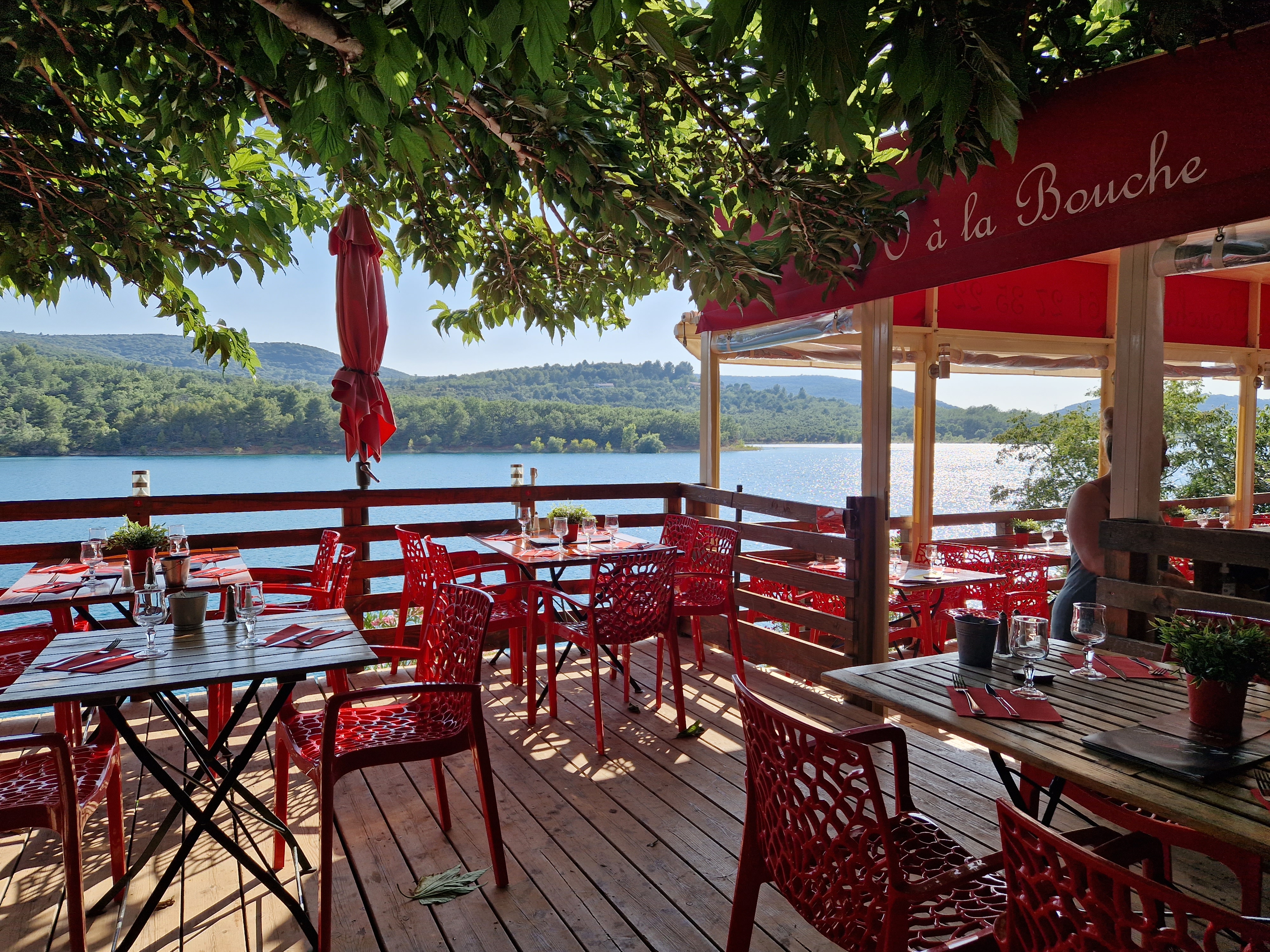 Nous sommes venus manger dans ce restaurant en août et nous avons passé un agréable moment. Le cadre est magnifique, avec de la chance, vous vous retrouverez, comme nous, juste au bord du lac de sainte croix. La terrasse est très grande. Nous avons bien mangé.