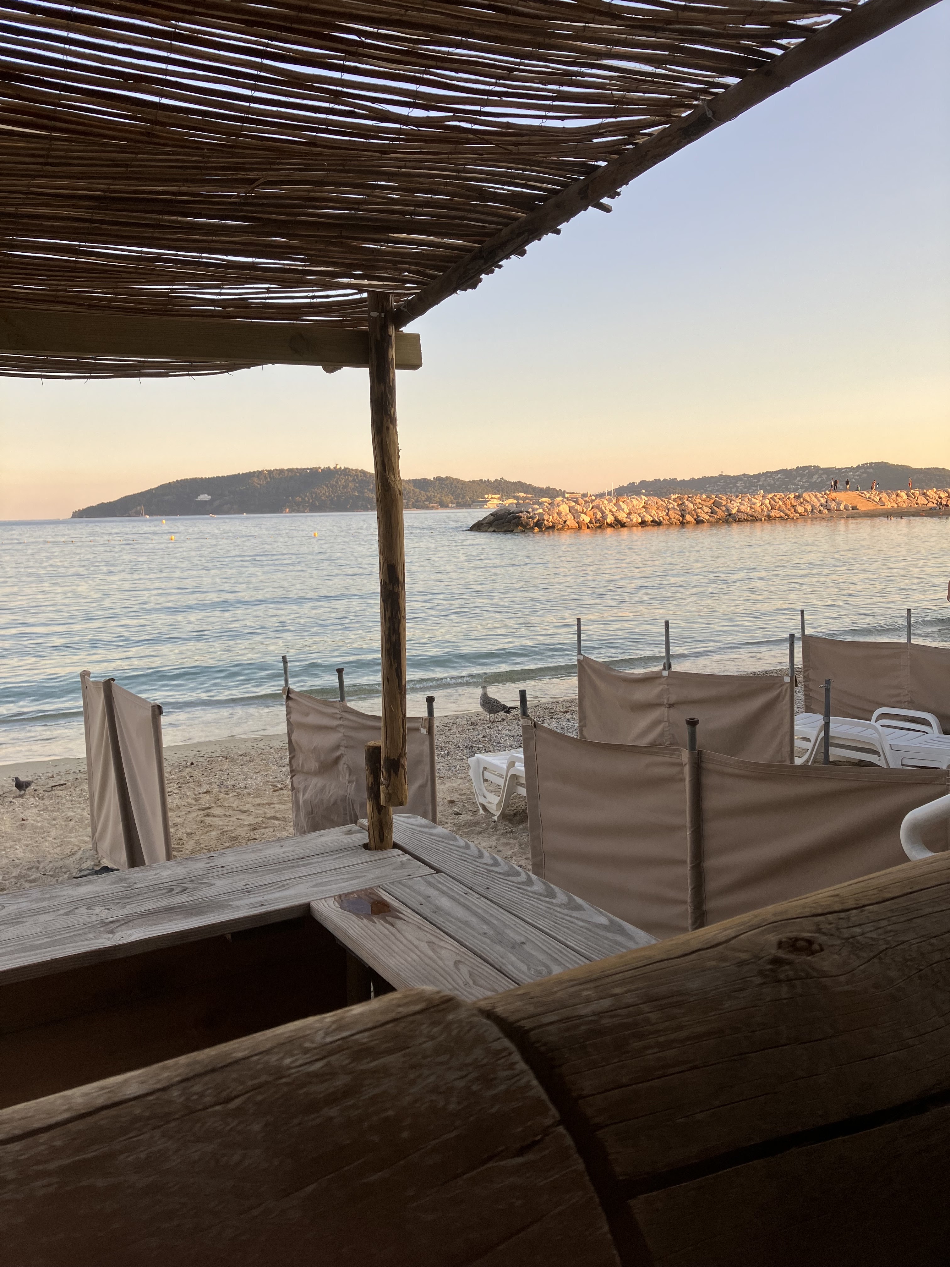 Deuxième fois que nous y allons et toujours aussi satisfaits . Le saumon petits légumes coco et yuzu est plein de saveurs. Les plats ne sont pas « copieux » mais suffisants pour ma part . Les plats sont bien présentés et le cadre très sympathique. Les desserts sont également Bons et copieux . Le café gourmands est généreux et les desserts servis sortent de l’ordinaire . Le pain est servi en petite quantité très certainement pour éviter le gaspillage et c’est très bien . Il suffit d’en redemander si besoin . Toulonnais , nous apprécions l’originalité de ce restaurant de plage peut être un peu plus guindé mais proposant des plats de qualité . Attention toutefois pensez à prendre un spray anti moustique 🦟 😅😁