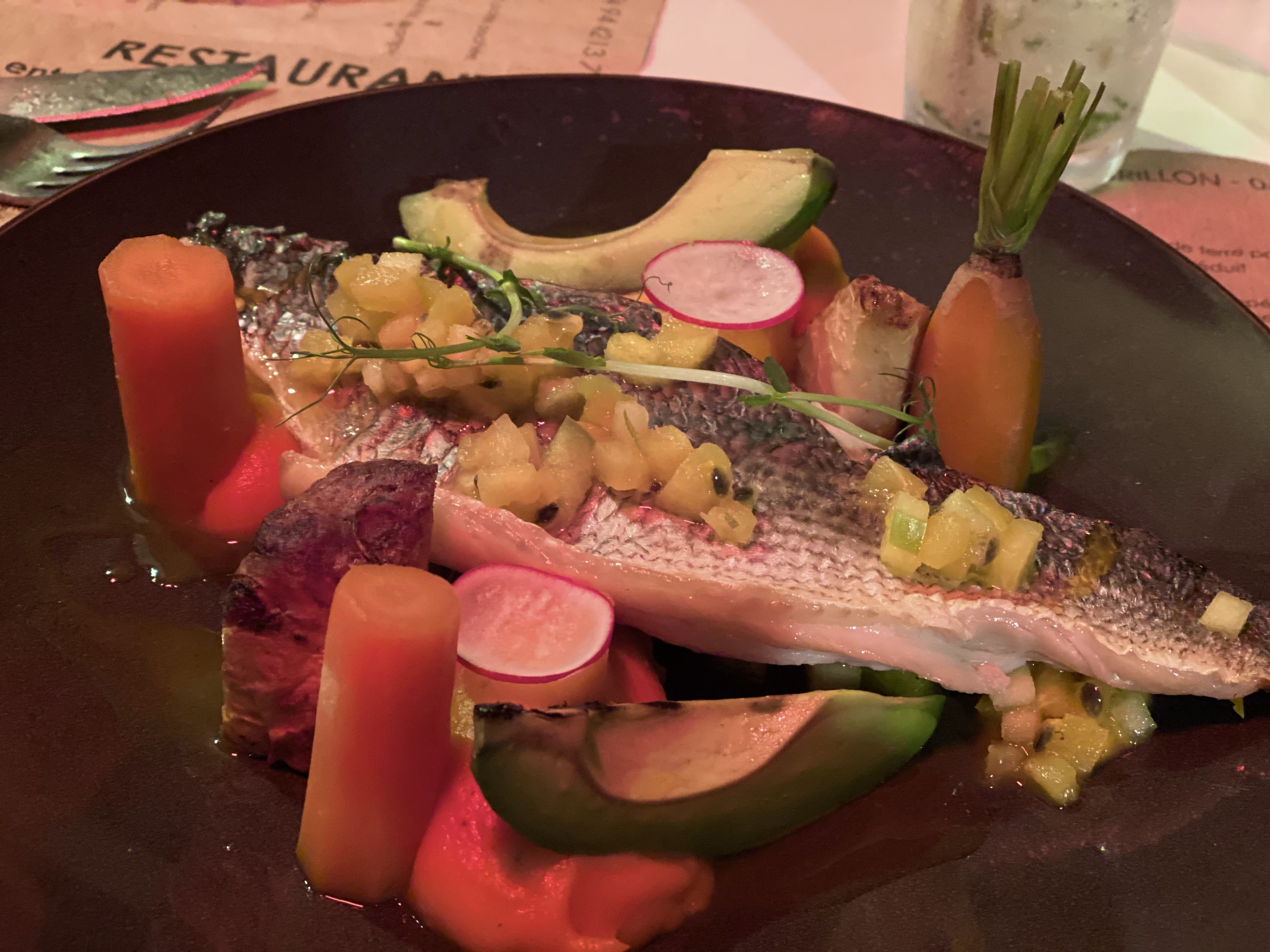 Un accueil très agréable, des serveurs aux petits soins avec nous (proposition d'un plaid car il y avait un peu de vent...). Une petite carte avec cinq propositions de poisson et cinq propositions de viandes, pareil pour les desserts. Des goûts et des saveurs différentes qui nous donne envie de tous les goûter. Une très bonne expérience gustative. En boisson nous avons pris des mojitos ainsi qu'une bouteille de 50cl d'un vin bio, très bon :) Un moment très agréable, je le recommande vivement.