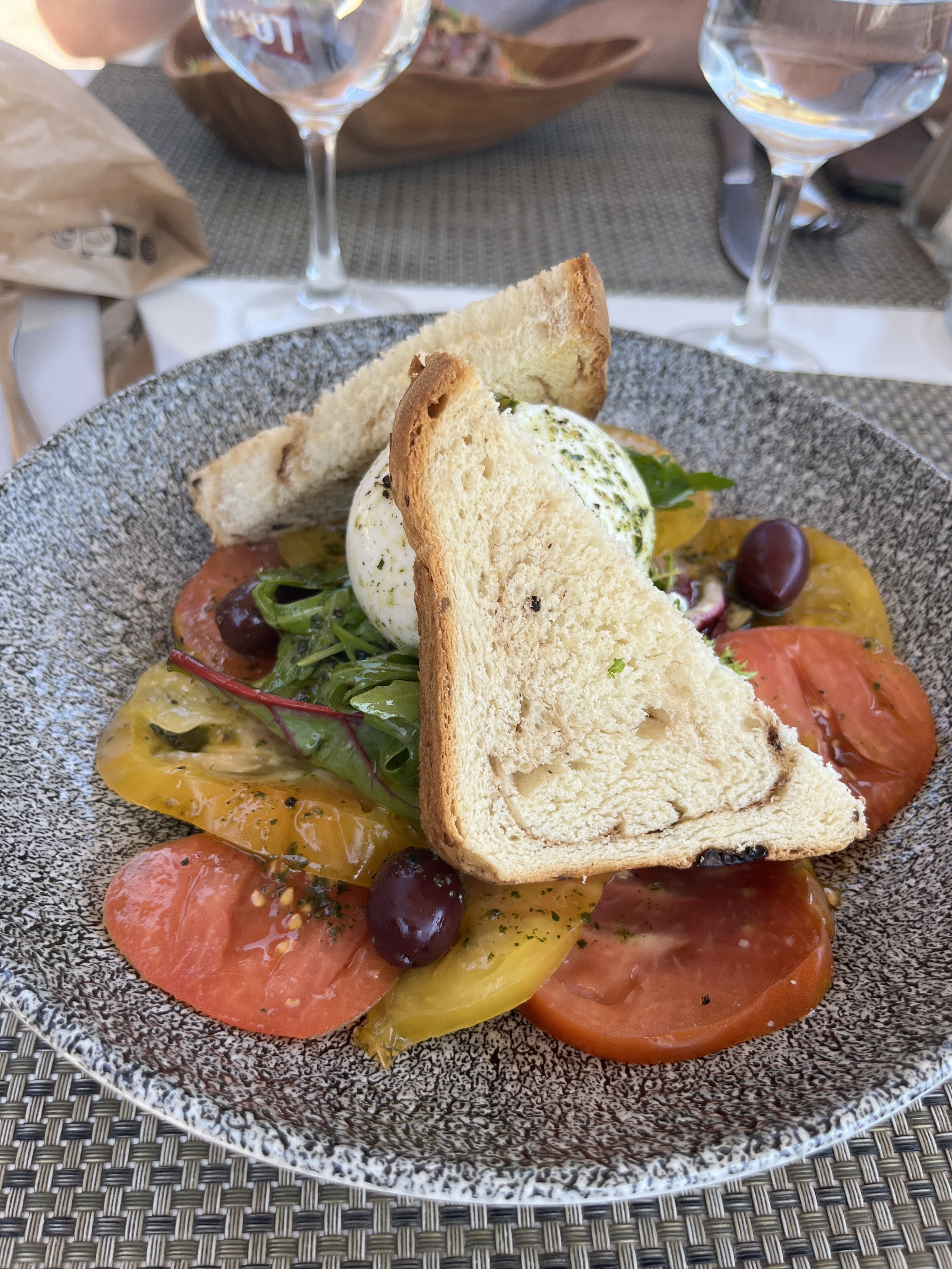 Le cadre est splendide mais l’accueil l’est un peu moins. Un serveur visiblement pas en forme (de ses propres mots) mais surtout une salade Burrata avec un Burrata d’à peine 100g et des tomates bien trop juteuses et de facto peu charnues. Cela serait passé si elle n’avait pas couté 19€ alors qu’on peut manger des grosses Burrata AOP pour moins de 13h dans des villes bien plus touristiques. C’est dommage.