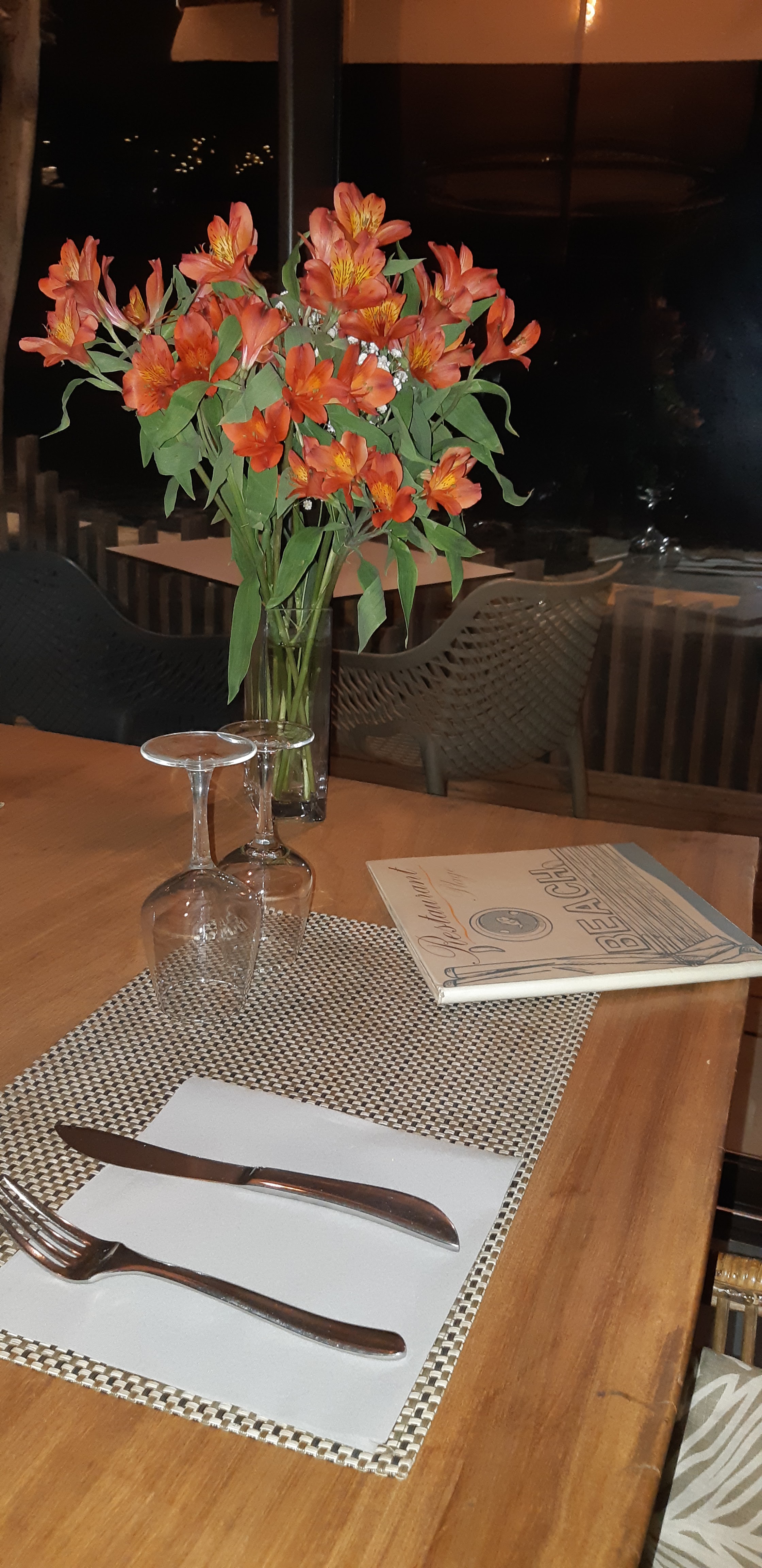 Super ! Les produits sont frais, et goûtus. On sent que le cuisinier fait attention aux produits qu'il sélectionne. La décoration est vraiment très jolie, l'ambiance est reposante. En soirée, le ciel est noir, les vagues meurent sur la plage qui est à 10 mètres.. Quelle vue, quel repas. Très bon moment.
