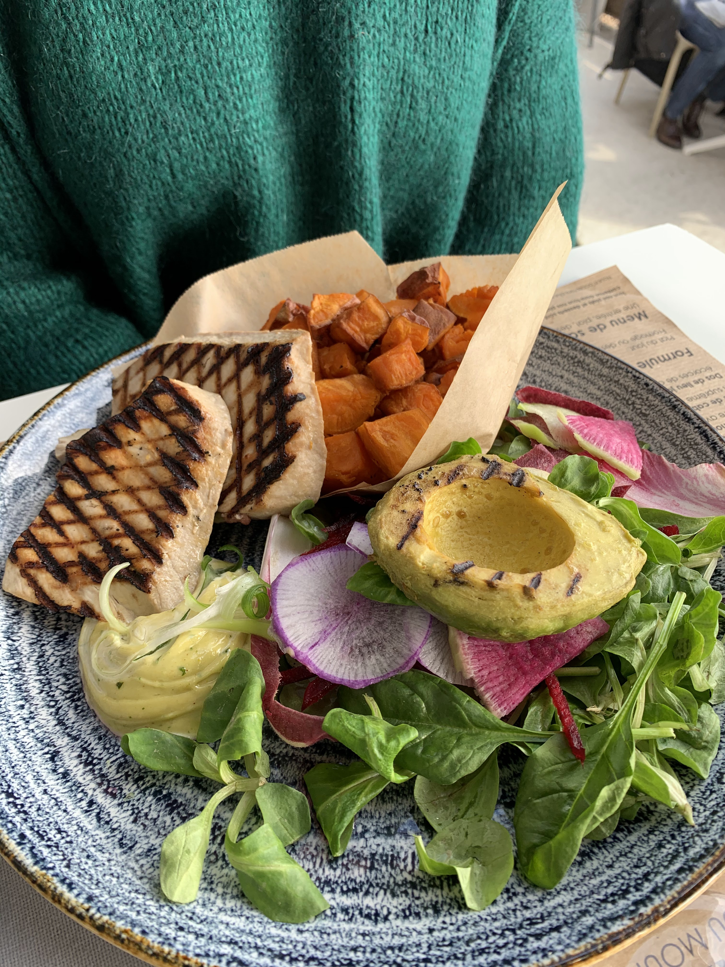 Deco et service impeccable, par contre la sauce thai du poulet curry c’était plutôt sans goût et avec beaucoup d’eau !! Une sauce plus épaisse crémer aurait pu être plus appréciable !! Côté mozza burata c’était plutôt canon, avec ses toasts maison au olive leger, c’était top. Tout ne peux pas être parfait 👍