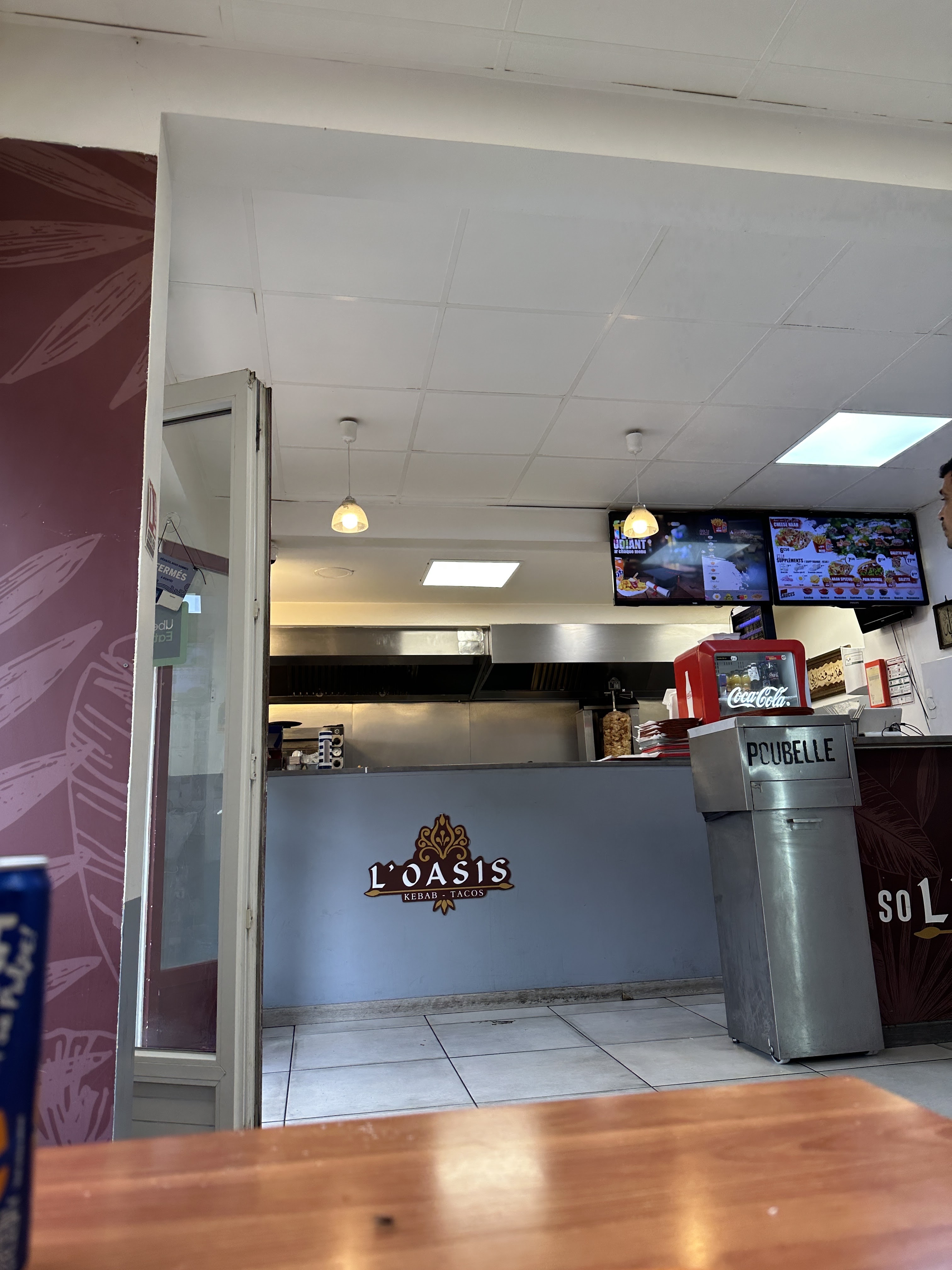 Je viens de me régaler avec un taccas viande kebab salades, tomates, sauce blanche . La sandwicherie est propre, le personnel accueillant et à l'écoute de nos choix pour le sandwich . Merci a L'OASIS LOURDES ♥️👍