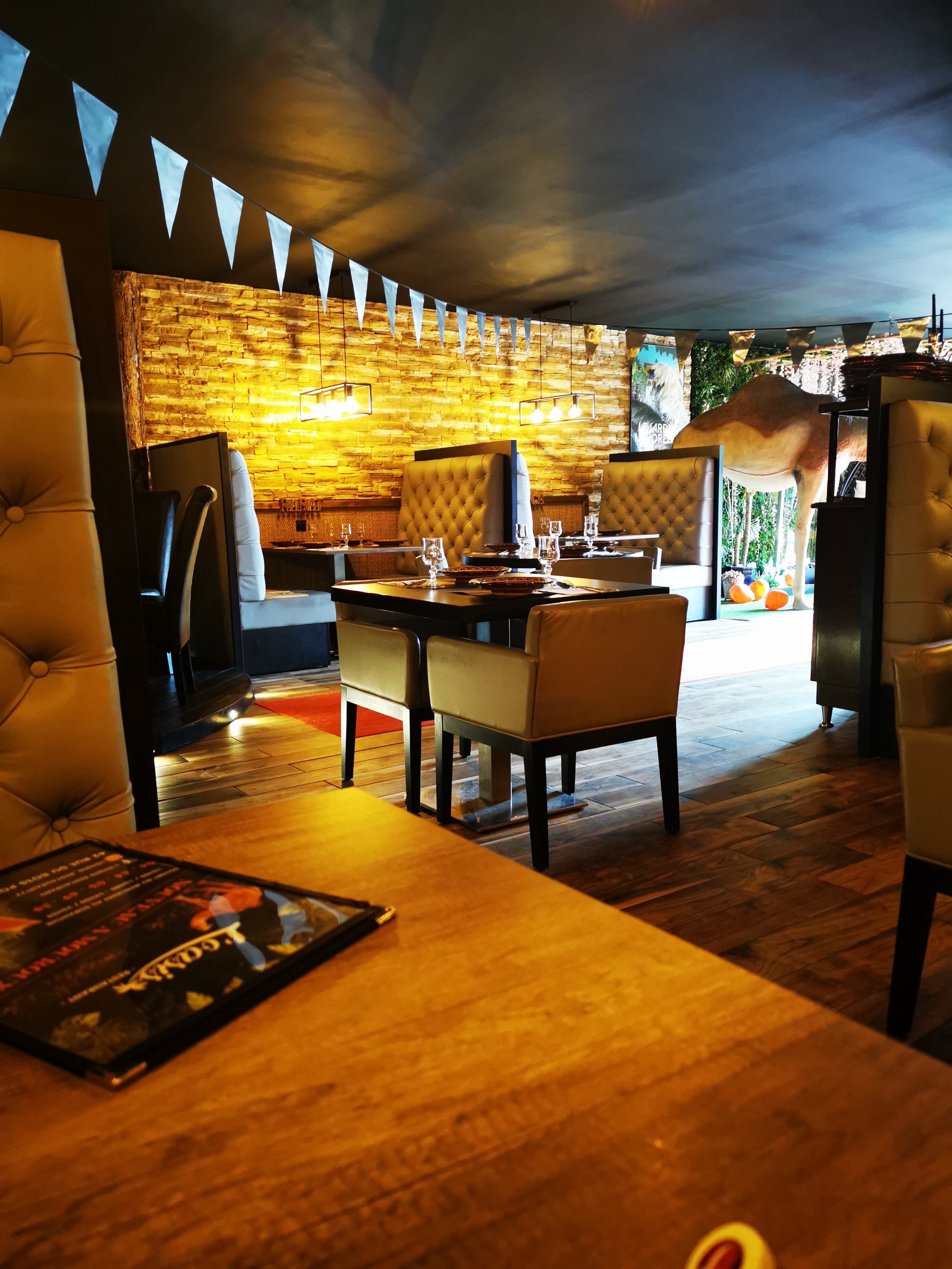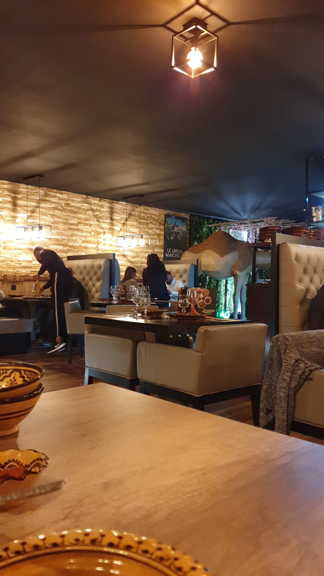 Je mets 8 étoiles sur 5 !!! Un cadre vraiment joli, travaillé, cosy et intimiste avec un dromadaire magnifique à l entree et alors le repas, wow j ai adooooore!!! Nous avons pris le couscous royal, que je n ai pas pu finir bien sur ! Cela m'a réconcilie avec les merguez. Les propriétaires sont accueillants, deux jeunes qui ont l air tout à fait adorables. Venez les yeux fermés, enfin non bien ouverts parce que le décor est superbe !